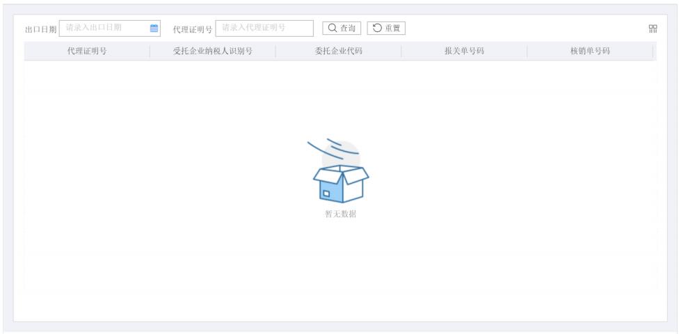 輸入“出口日期”或者“代理證明號”等查詢條件,點擊“查詢”按鈕,可查詢相關(guān)代理證明信息。