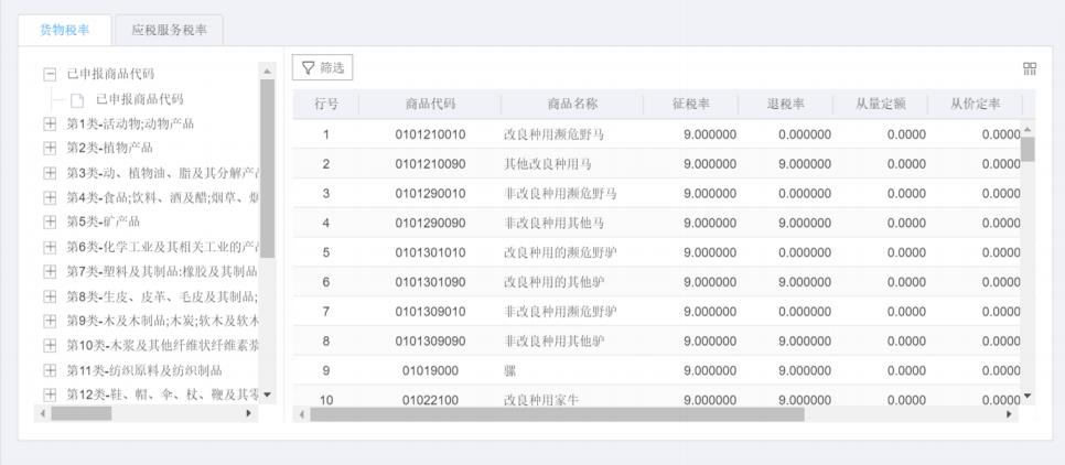點擊“貨物稅率”可以實現(xiàn)查詢貨物商品信息。如圖: