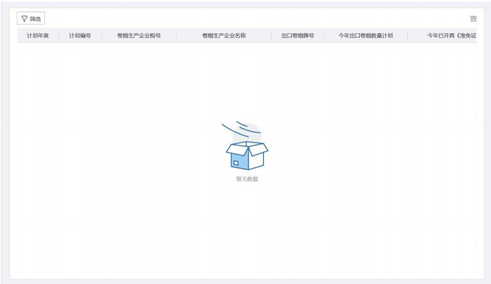 點擊“篩選”按鈕,輸入查詢條件,可查詢相關(guān)免稅出口卷煙計劃情況。