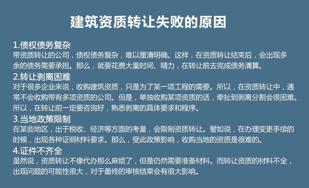 建筑施工企業二級資質證書所經營的范圍各不相同,國家建設主管部門要根據企業的工程技術人員數質量、工程機械裝備、歷年施工的工程數質量、注冊資金、流動資金等情況劃定主營和兼營范圍,這個范圍就是能干什么,非常清楚明確,翻開看看就一目了然。對于很多企業來說,收購建筑資質,只是為了某一項工程的需要。所以,在資質轉讓中,通常不會收購帶有多項資質的公司。但是,單獨收購某項資質的話,牽扯到剝離分割會很困難。所以,在轉讓前一定要咨詢好,熟悉剝離的具體要求和程序。建筑工程施工總承包資質分為特級、一級、二級、三級。建筑工程是指各類結構形式的民用建筑工程、工業建筑工程、構筑物工程以及相配套的道路、通信、管網管線等設施工程。工程內容包括地基與基礎、主體結構、建筑屋面、裝修裝飾、建筑幕墻、附建人防工程以及給水排水及供暖、通風與空調、電氣、消防、防雷等。