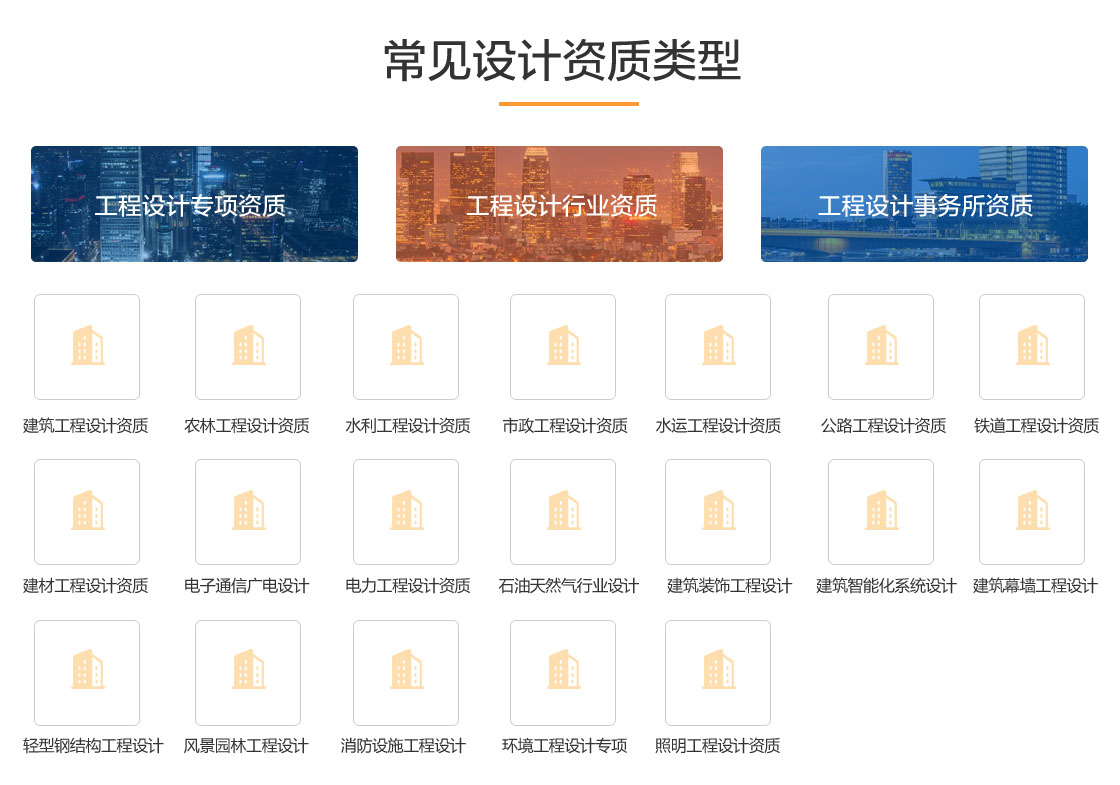 施工總承包資質 施工專業承包資質 施工勞務資質 施工勘察資質 施工監理資質 安全生產許可證 工程造價咨詢資質 安防工程資質 承裝電力設施許可證工程設計資質