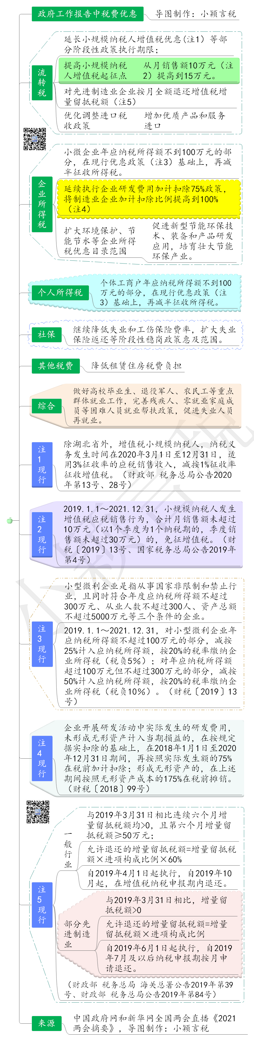 繼續執行制度性減稅政策,延長小規模納稅人增值稅優惠等部分階段性政策執行期限,實施新的結構性減稅舉措,對沖部分政策調整帶來的影響。將小規模納稅人增值稅起征點從月銷售額10萬元提高到15萬元。對小微企業和個體工商戶年應納稅所得額不到100萬元的部分,在現行優惠政策基礎上,再減半征收所得稅。