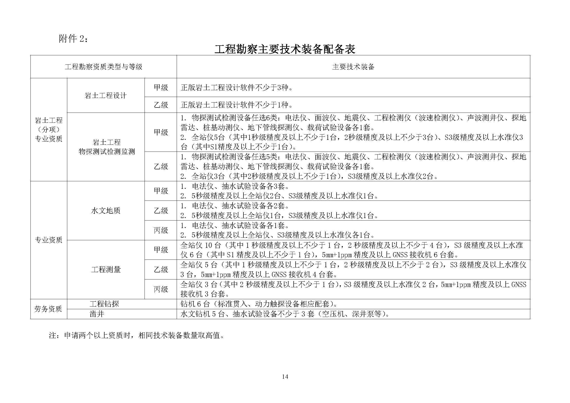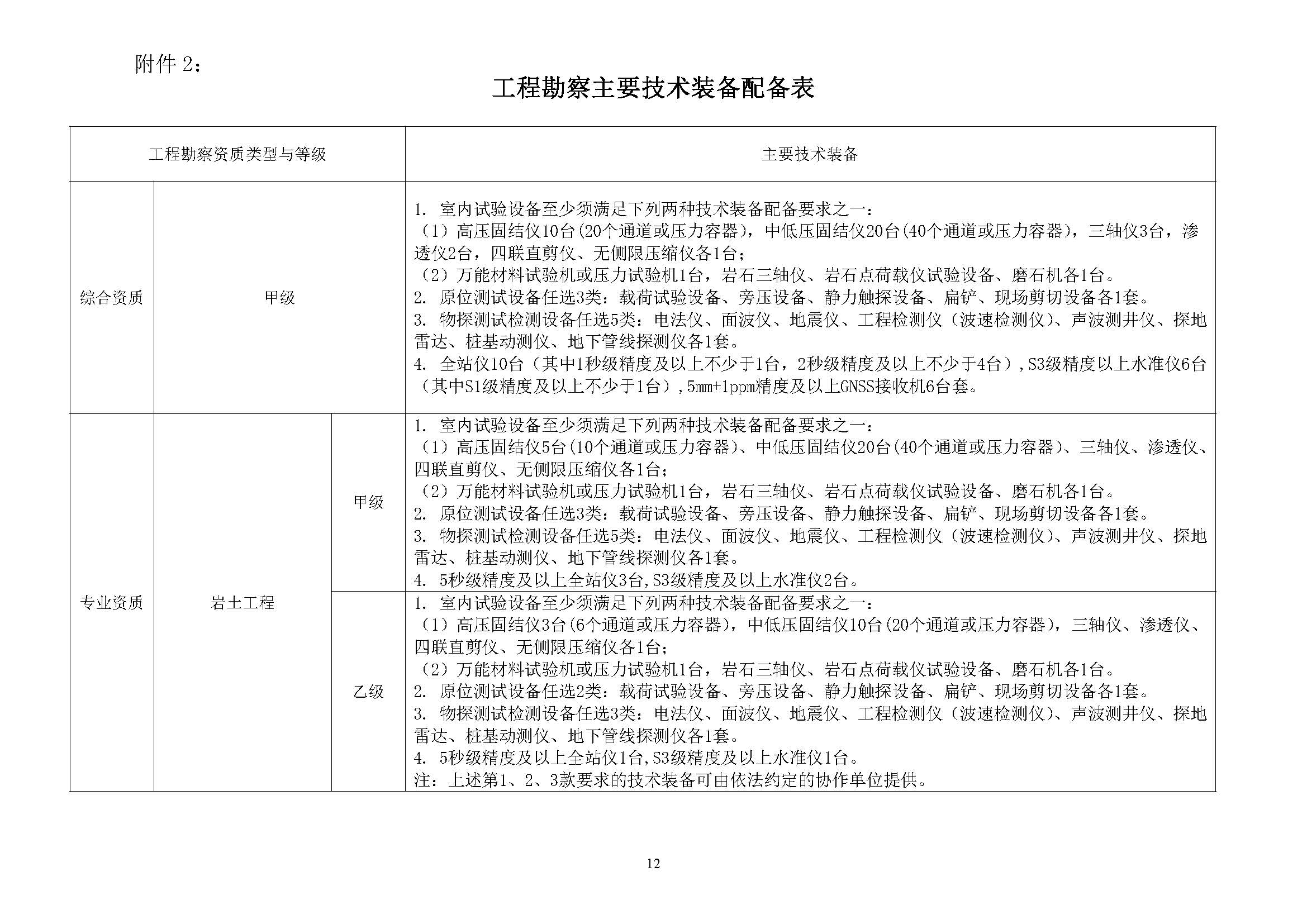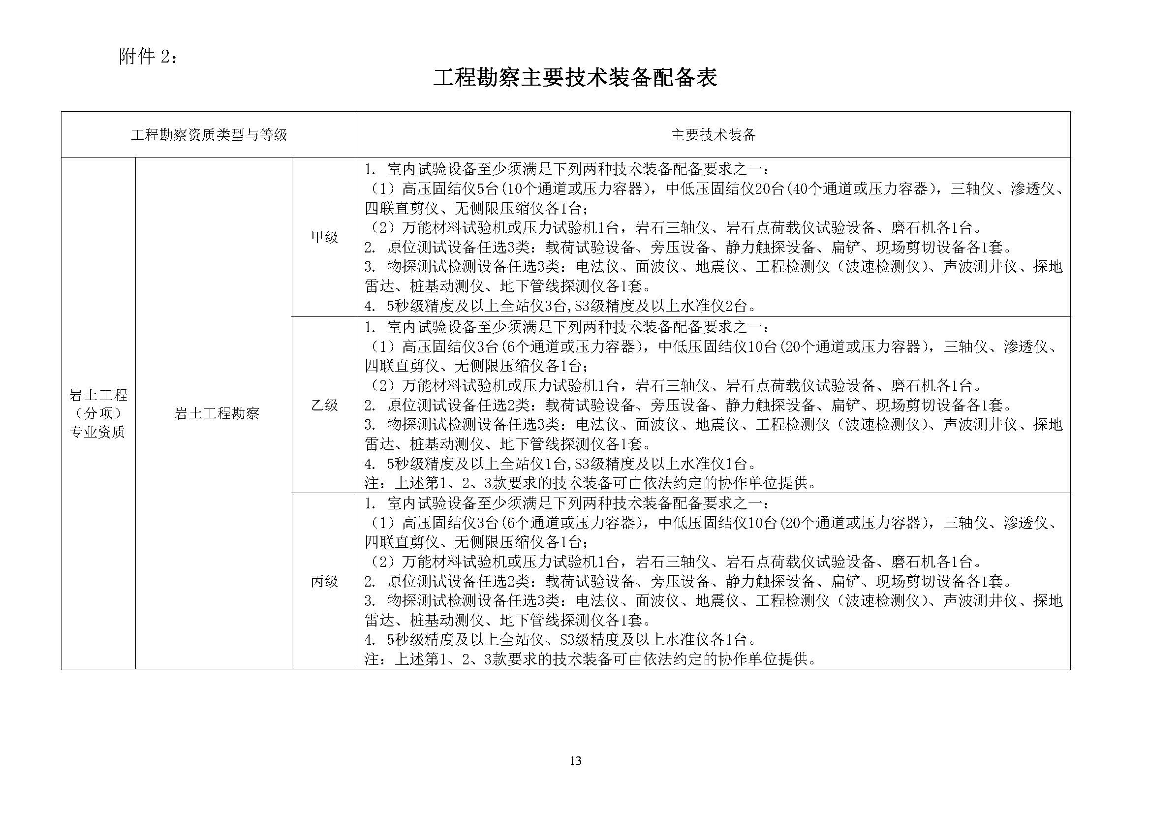 (1)有必要的技術裝備,滿足“工程勘察主要技術裝備配備表”規定的要求。