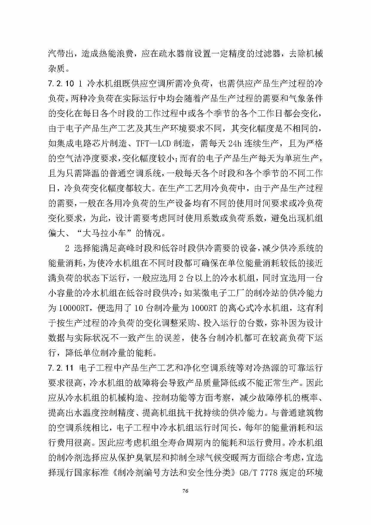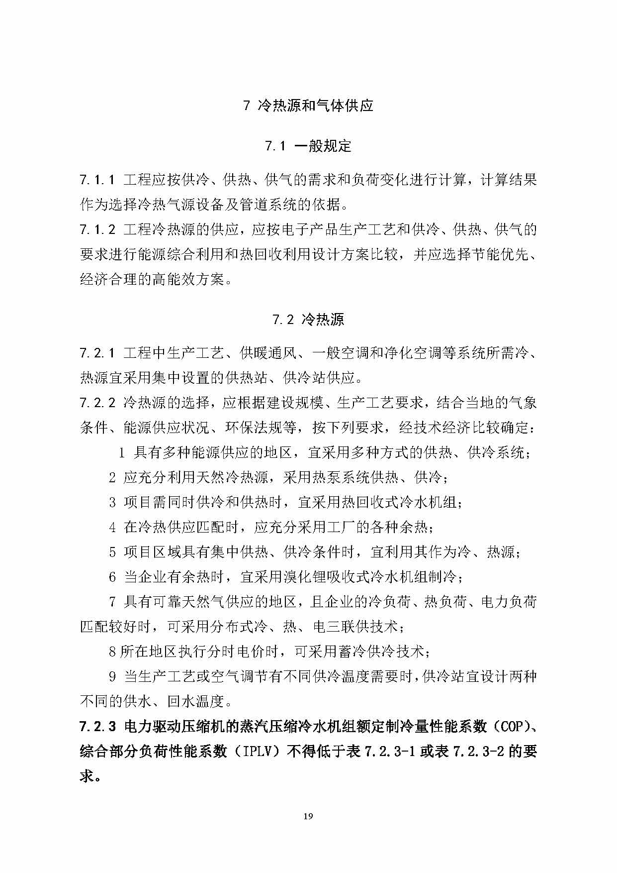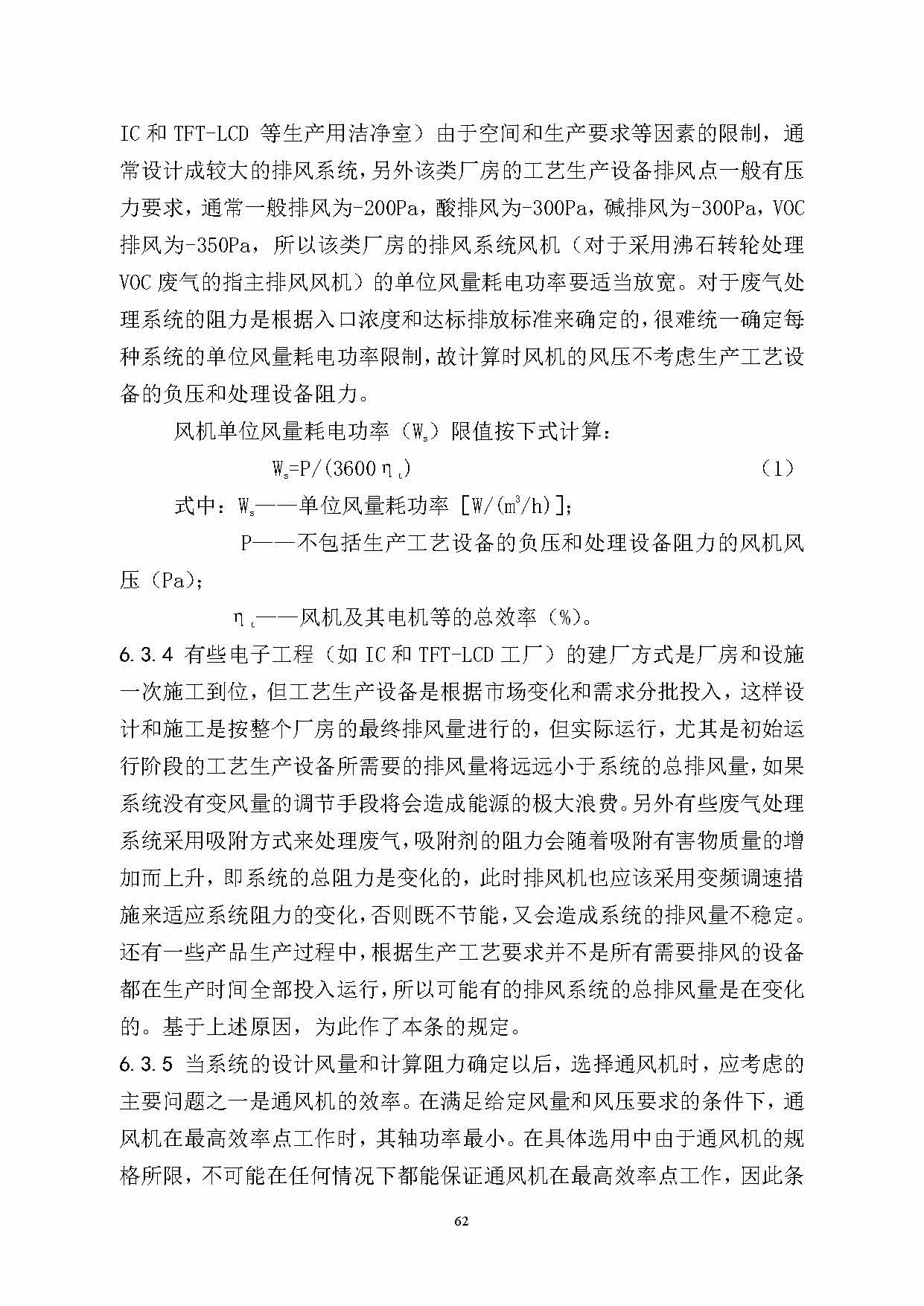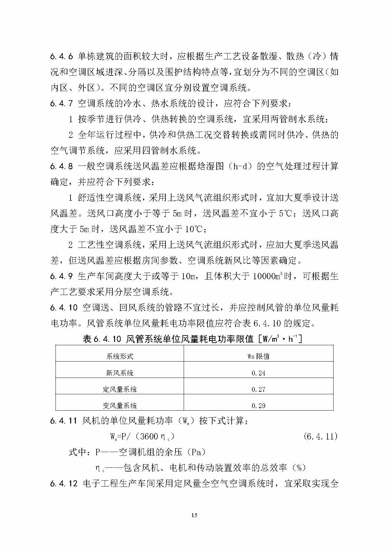 本標準修訂的主要內容有:①增加了電子工程主要生產廠房能耗限值;②重新編排第5章條目次序及其相關內容;③增加自然通風于建筑采光部分;④修改風管系統的單位風量耗電功率限值;⑤補充通風與廢氣處理系統的監測控制要求;⑥補充電力驅動壓縮機的蒸汽壓縮冷水機組額定制冷量性能系數(COP)、綜合部分負荷性能系數(IPLV)的要求;⑦增加了水冷變頻離心式和螺桿式冷水機組的額定制冷量性能系數的要求;⑧增加了水冷變頻離心式和水冷變頻螺桿式冷水機組的綜合部分負荷性能系數(IPLV)的要求;⑨增加了空調冷源綜合制冷性能系數(SCOP)限值的要求;⑩增加了選擇冷水機組的要求;?修改供冷系統的冷水管網設計要求;?修改水循環利用及回收利用的要求;?修改設置無功功率補償裝置的要求;?修改選擇照明光源的要求;?增加第10章能源回收和可再生能源利用。