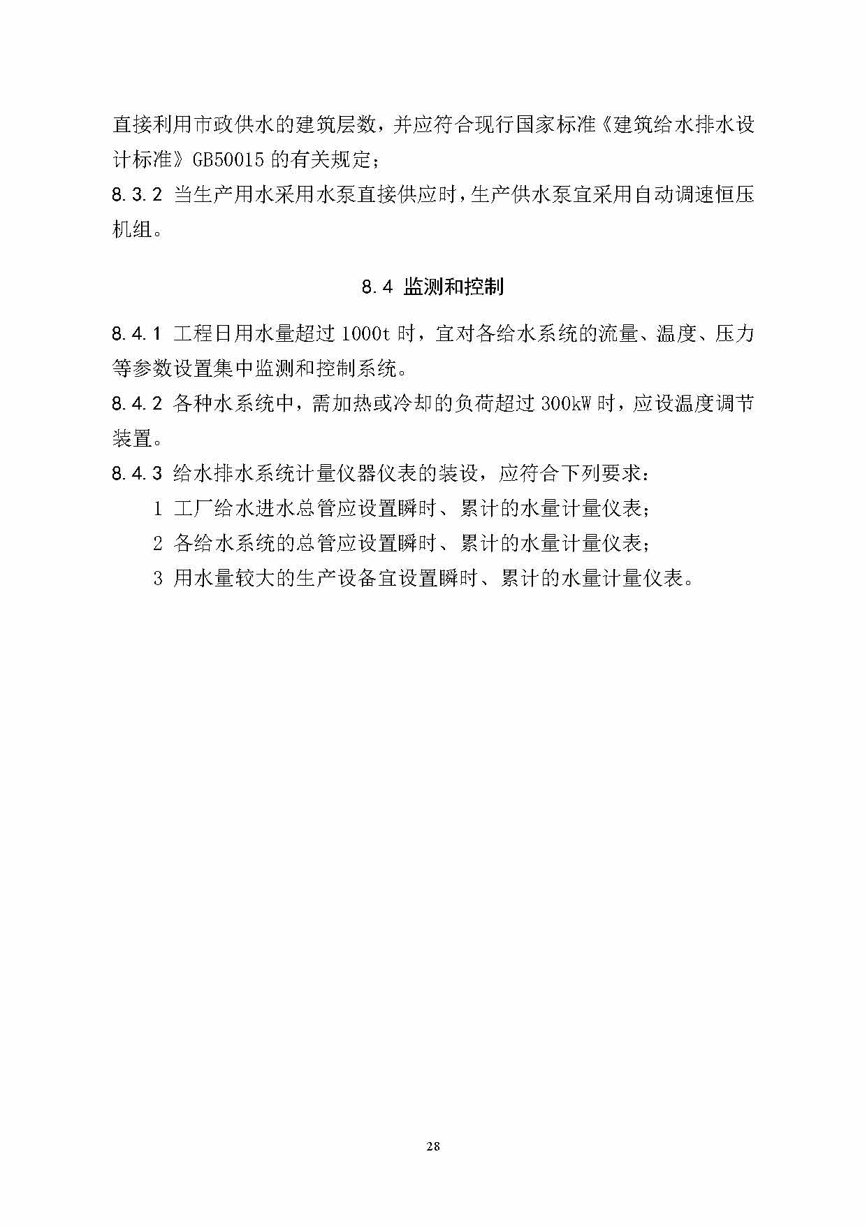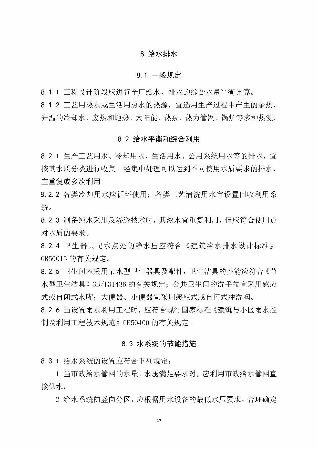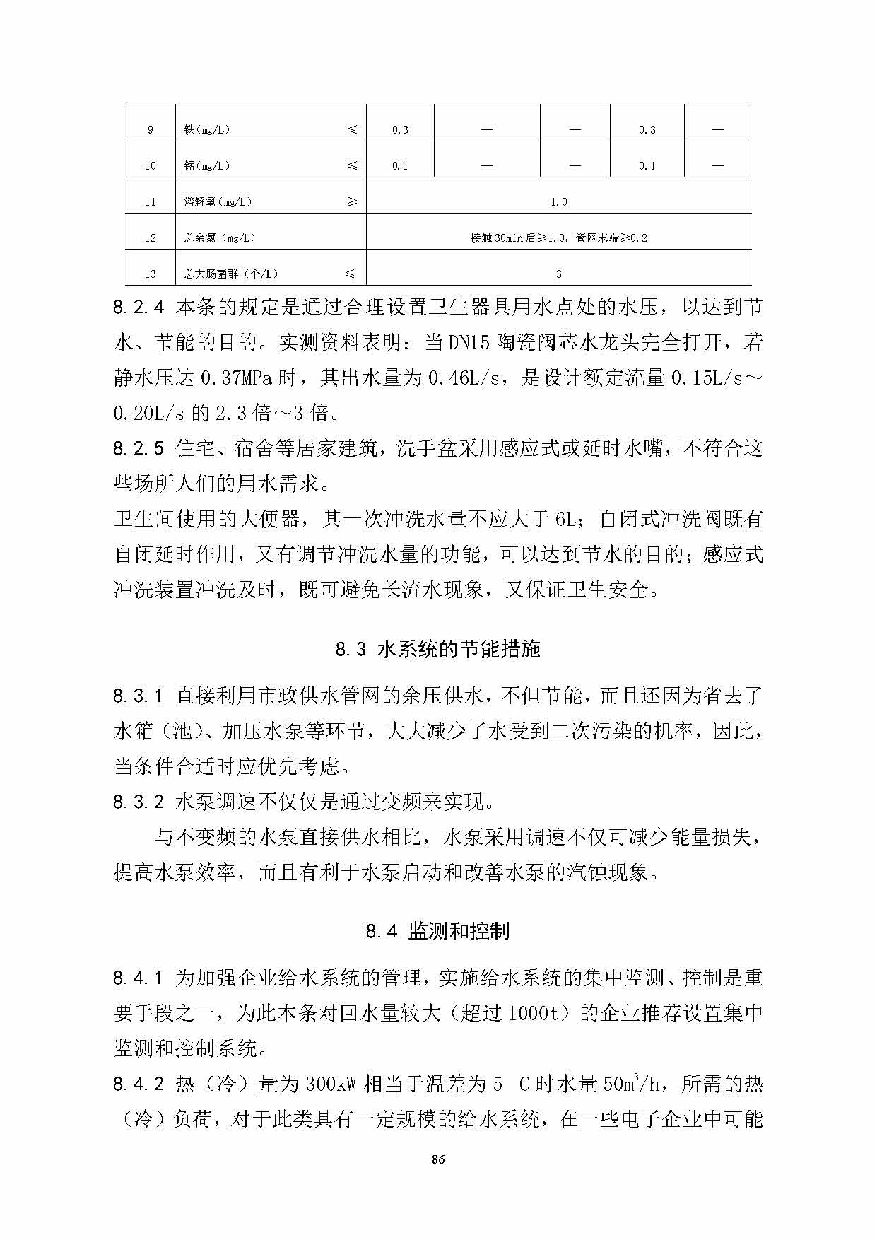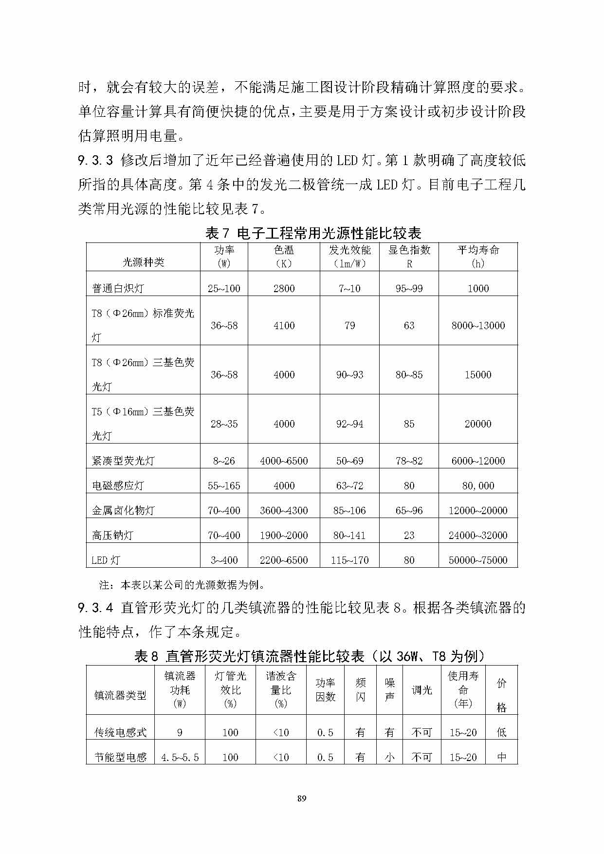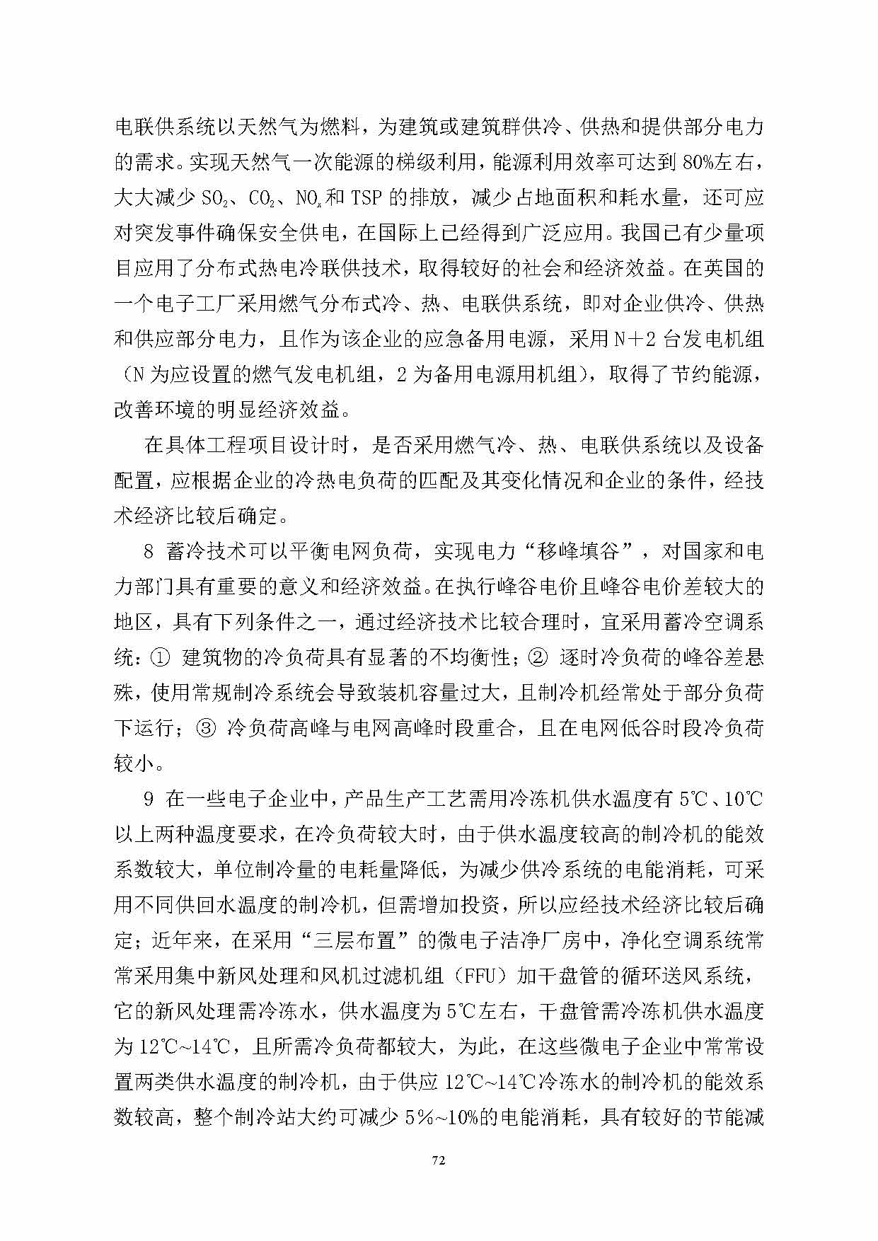 本標準修訂的主要內容有:①增加了電子工程主要生產廠房能耗限值;②重新編排第5章條目次序及其相關內容;③增加自然通風于建筑采光部分;④修改風管系統的單位風量耗電功率限值;⑤補充通風與廢氣處理系統的監測控制要求;⑥補充電力驅動壓縮機的蒸汽壓縮冷水機組額定制冷量性能系數(COP)、綜合部分負荷性能系數(IPLV)的要求;⑦增加了水冷變頻離心式和螺桿式冷水機組的額定制冷量性能系數的要求;⑧增加了水冷變頻離心式和水冷變頻螺桿式冷水機組的綜合部分負荷性能系數(IPLV)的要求;⑨增加了空調冷源綜合制冷性能系數(SCOP)限值的要求;⑩增加了選擇冷水機組的要求;?修改供冷系統的冷水管網設計要求;?修改水循環利用及回收利用的要求;?修改設置無功功率補償裝置的要求;?修改選擇照明光源的要求;?增加第10章能源回收和可再生能源利用。