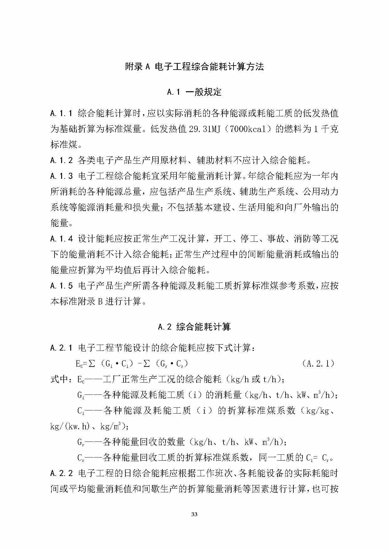 1.0.3按本標準進行的電子工程節能設計,在滿足電子產品質量的制造技術所需生產環境參數條件下,應積極采用國內外節能降耗先進技術和設備,并應使電子工程綜合能耗達到明顯降低。綜合能耗的計算方法應符合本標準附錄A。