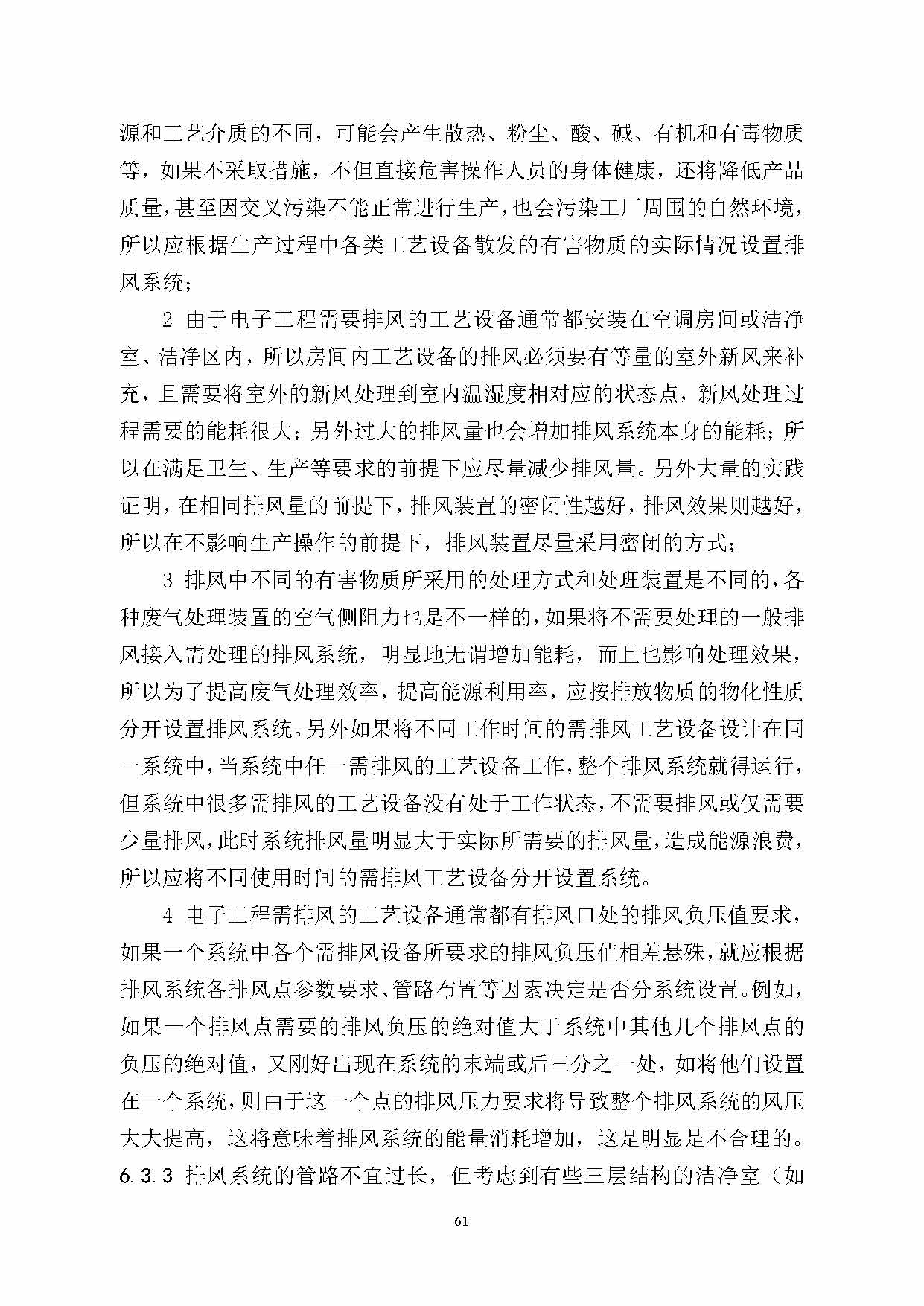 本標準共分10章和3個附錄。主要內容有:總則、術語、基本規定、工藝、建筑及建筑熱工、供暖通風與空氣凈化、冷熱源和氣體供應、給水排水、電氣、能量回收和可再生能源利用等。