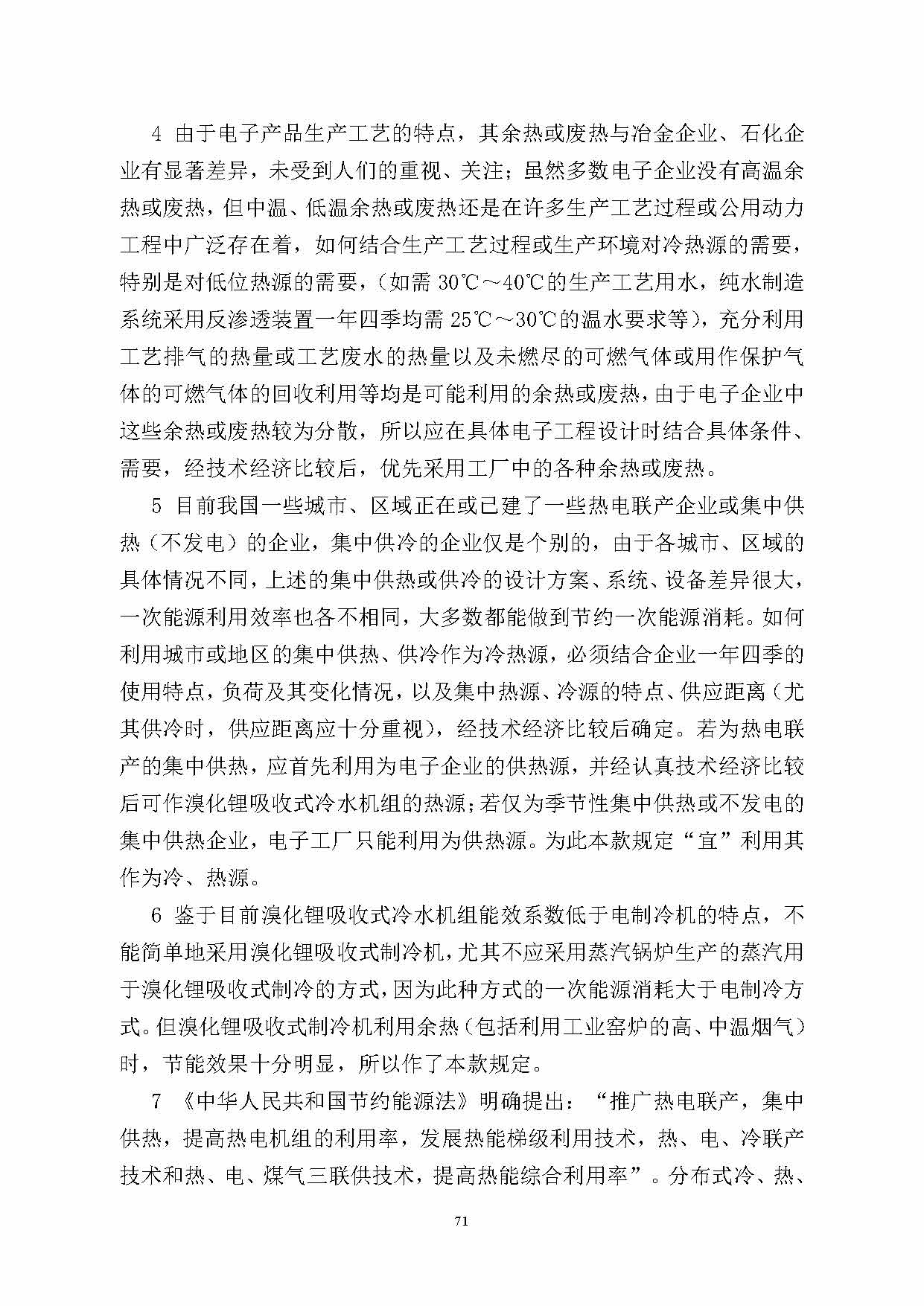 本標準在修訂過程中,編制組結合我國電子工程節能設計的現狀和電子行業可持續發展、節能降耗的要求,在對一些電子工程建造和運行的能量消耗、節能技術措施進行調查研究,收集整理有關專題報告的基礎上,廣泛征求了國內有關單位、專家和科研人員的意見,最后經審查定稿。