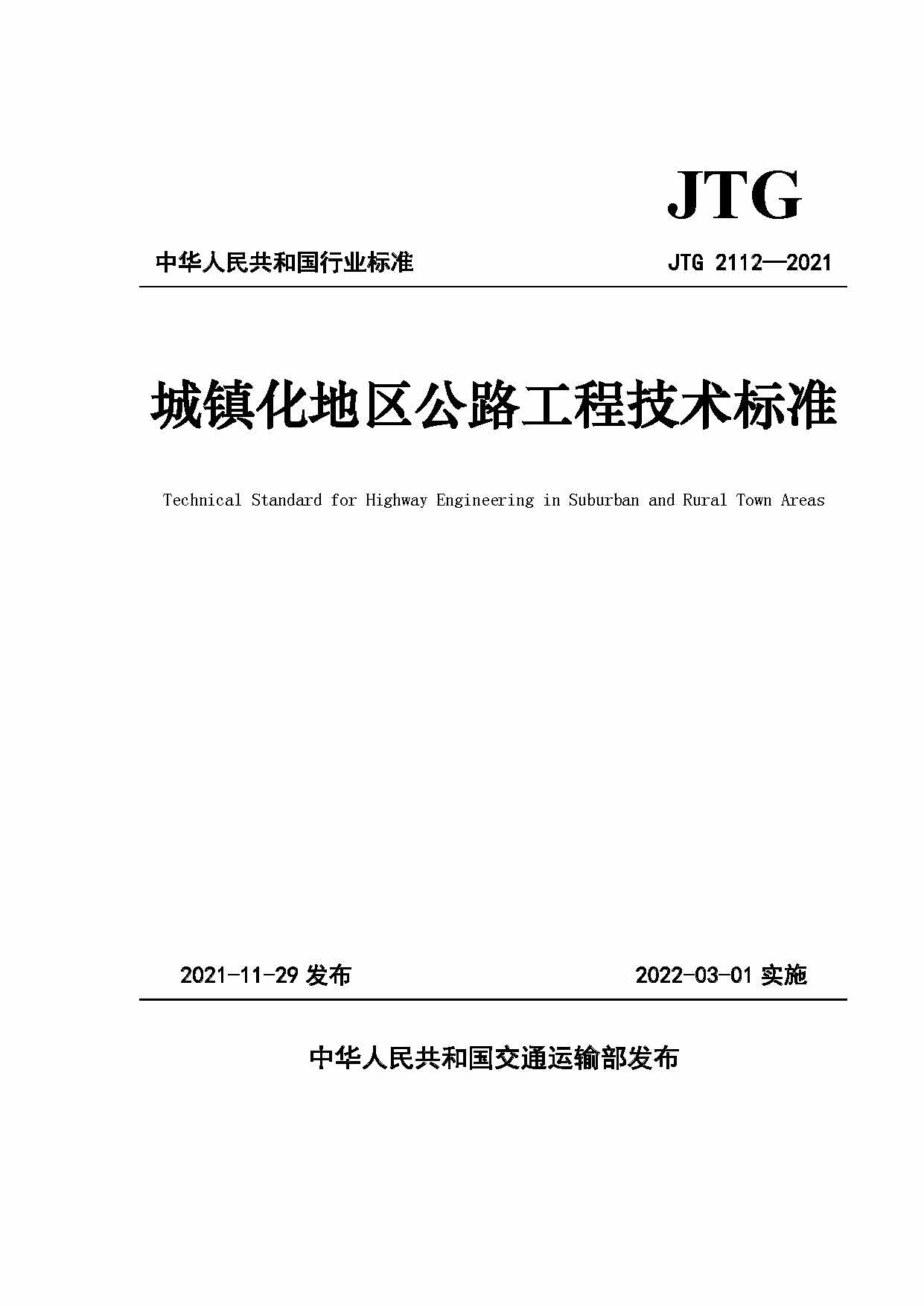 現發布《城鎮化地區公路工程技術標準》(JTG 2112—2021),作為公路工程行業標準,自2022年3月1日起施行。
