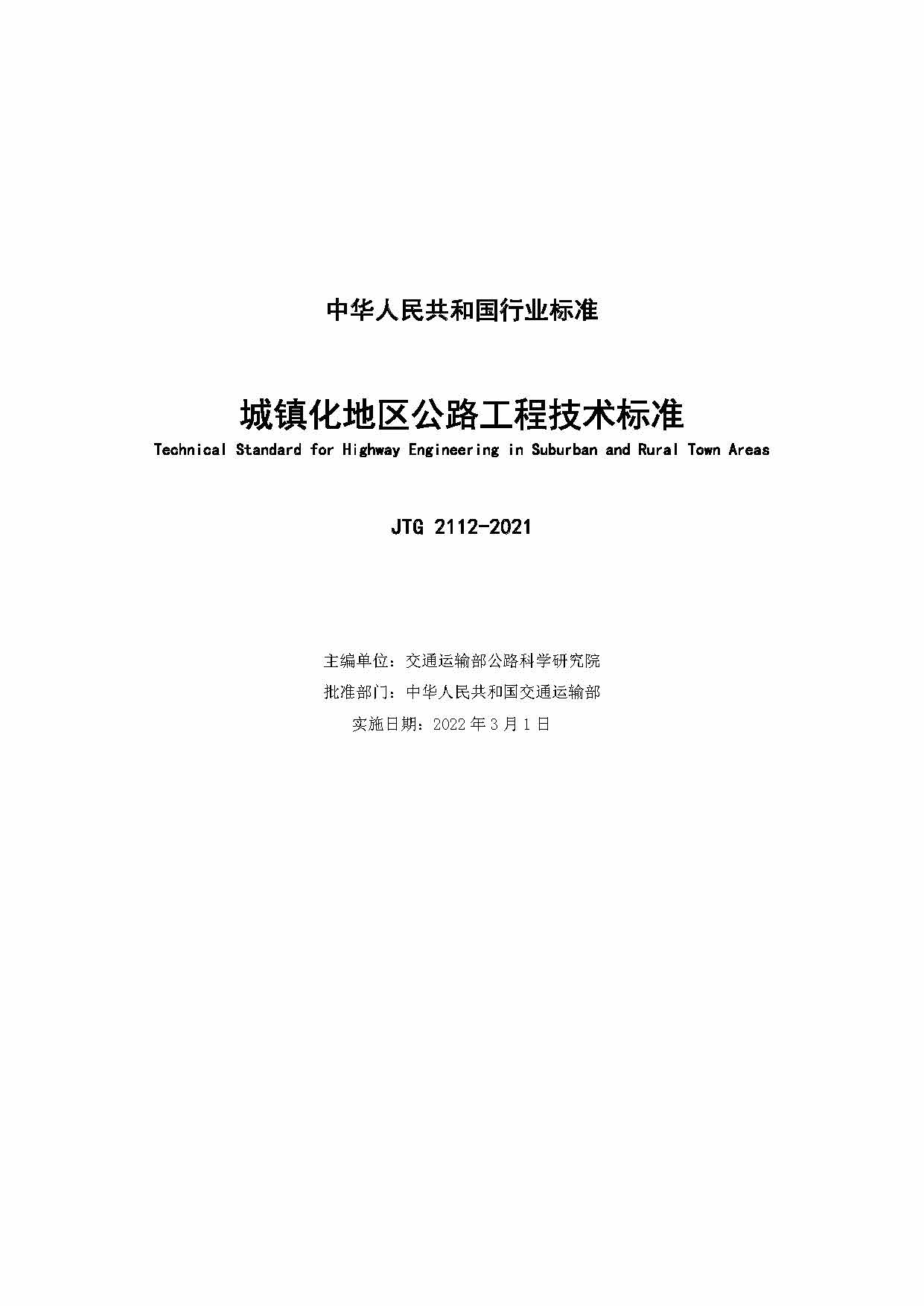 《城鎮化地區公路工程技術標準》(JTG 2112—2021)的管理權和解釋權歸交通運輸部,日常解釋和管理工作由主編單位交通運輸部公路科學研究院負責。