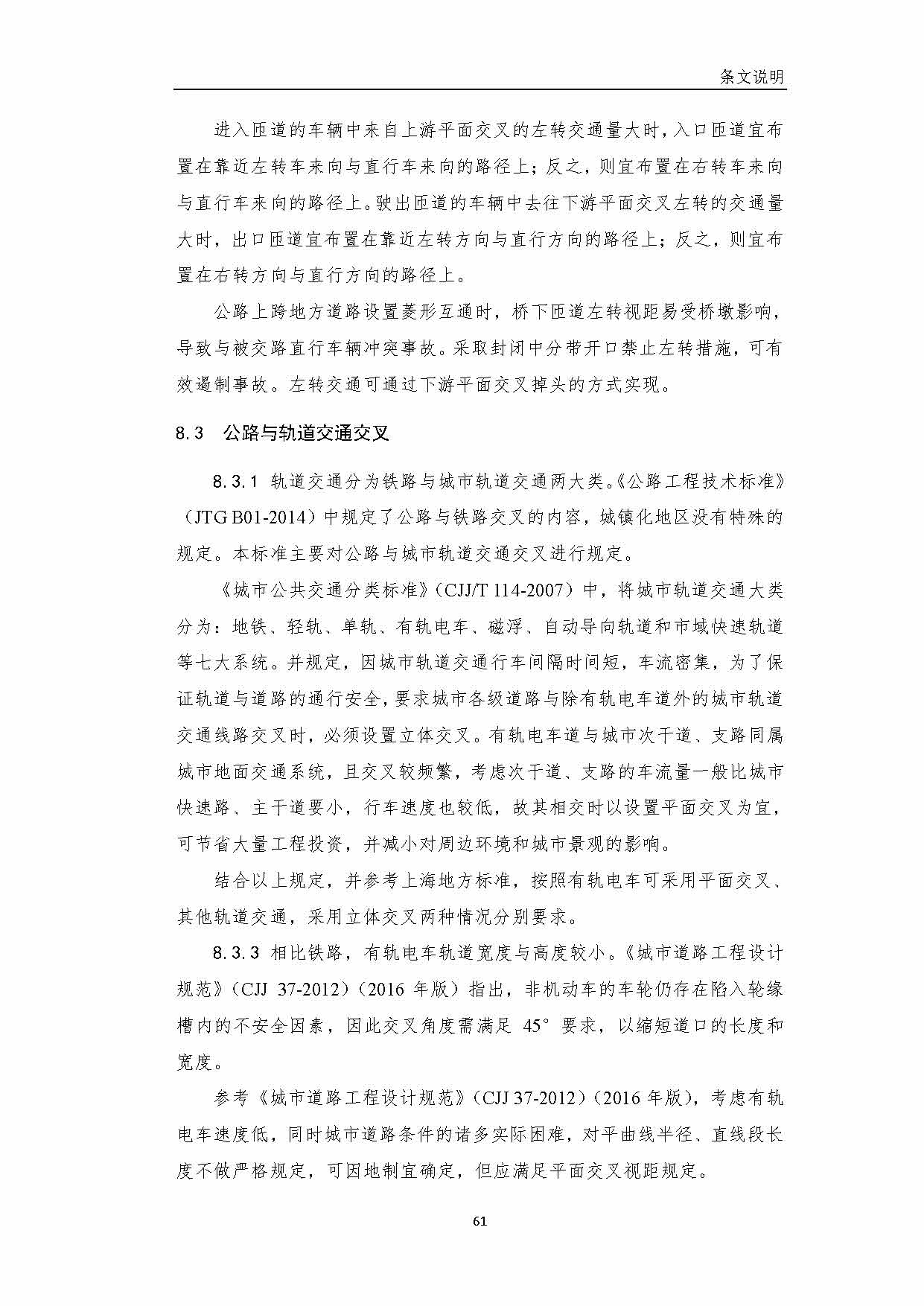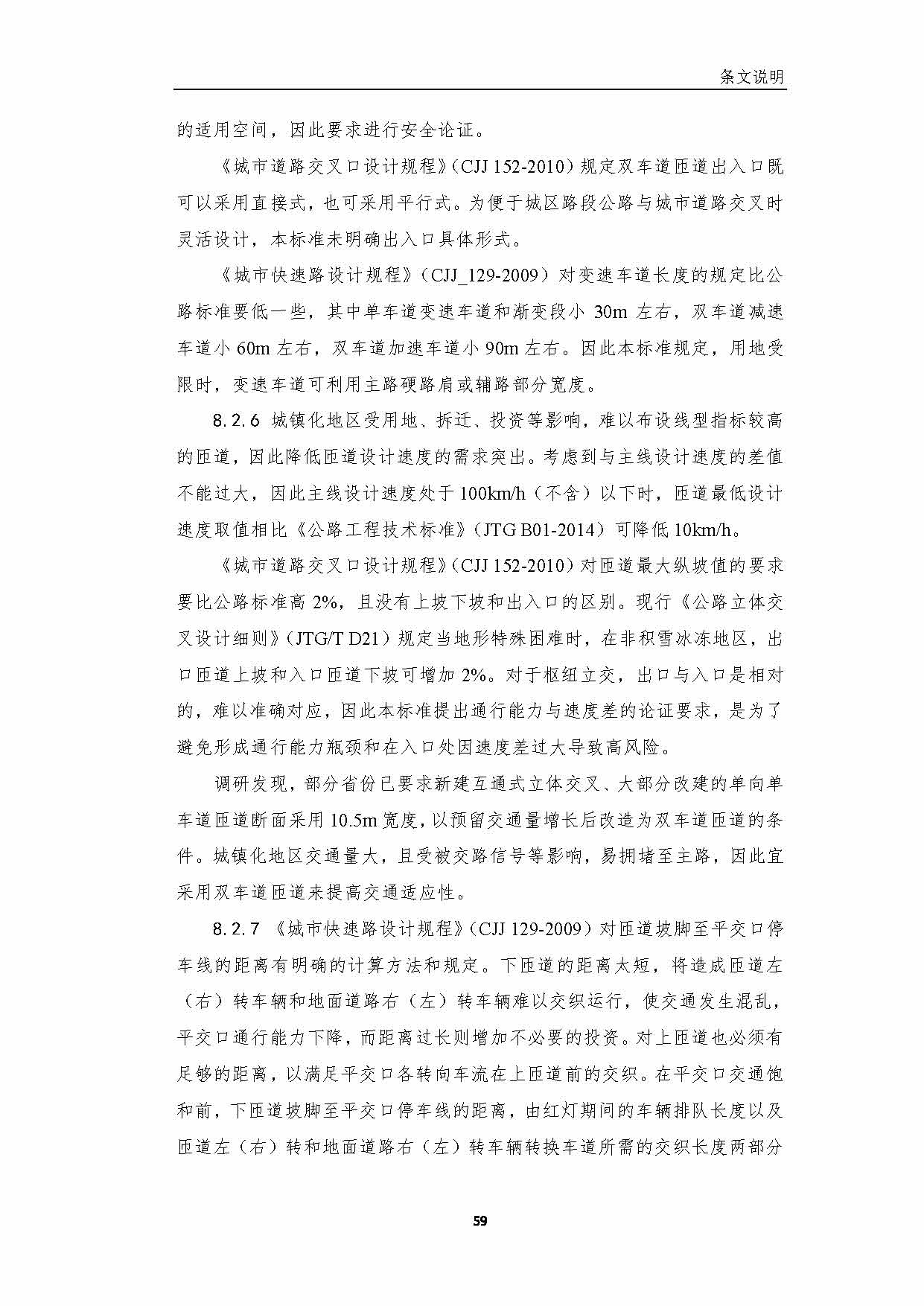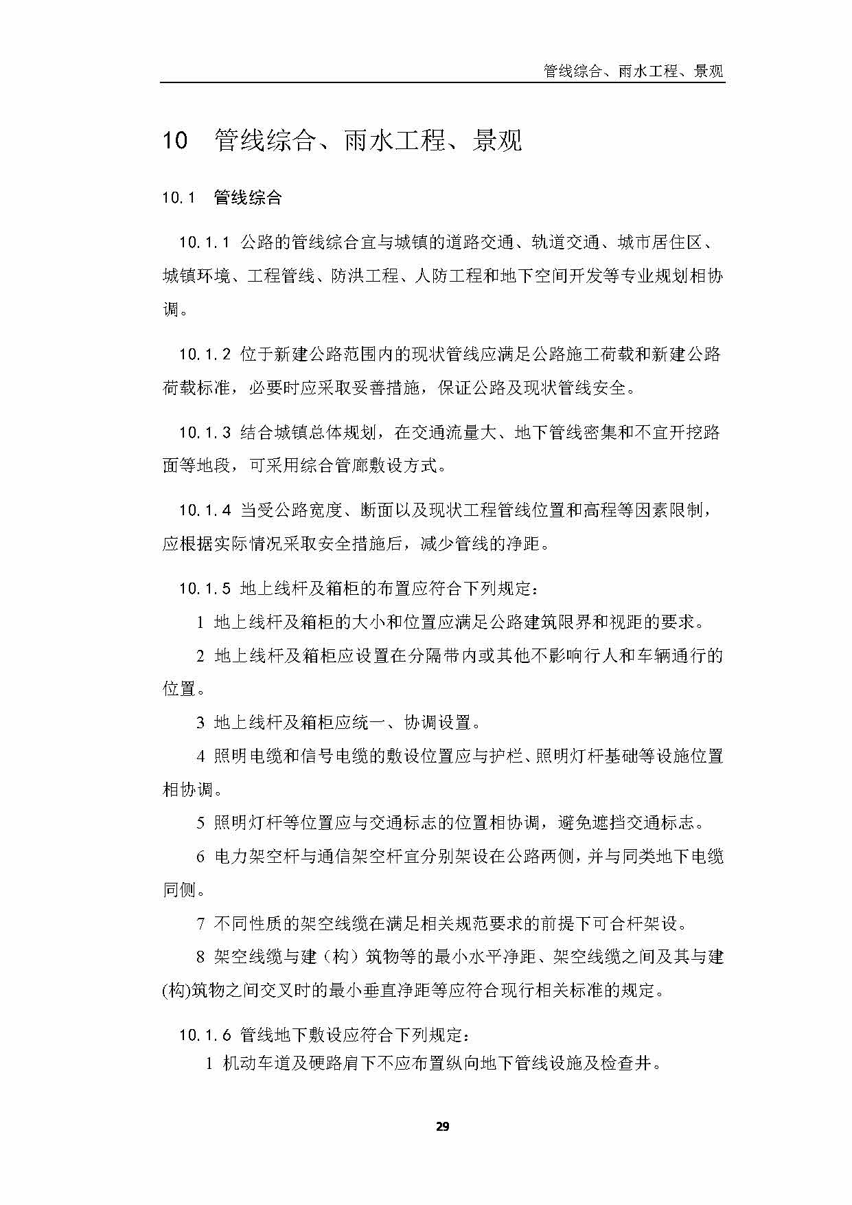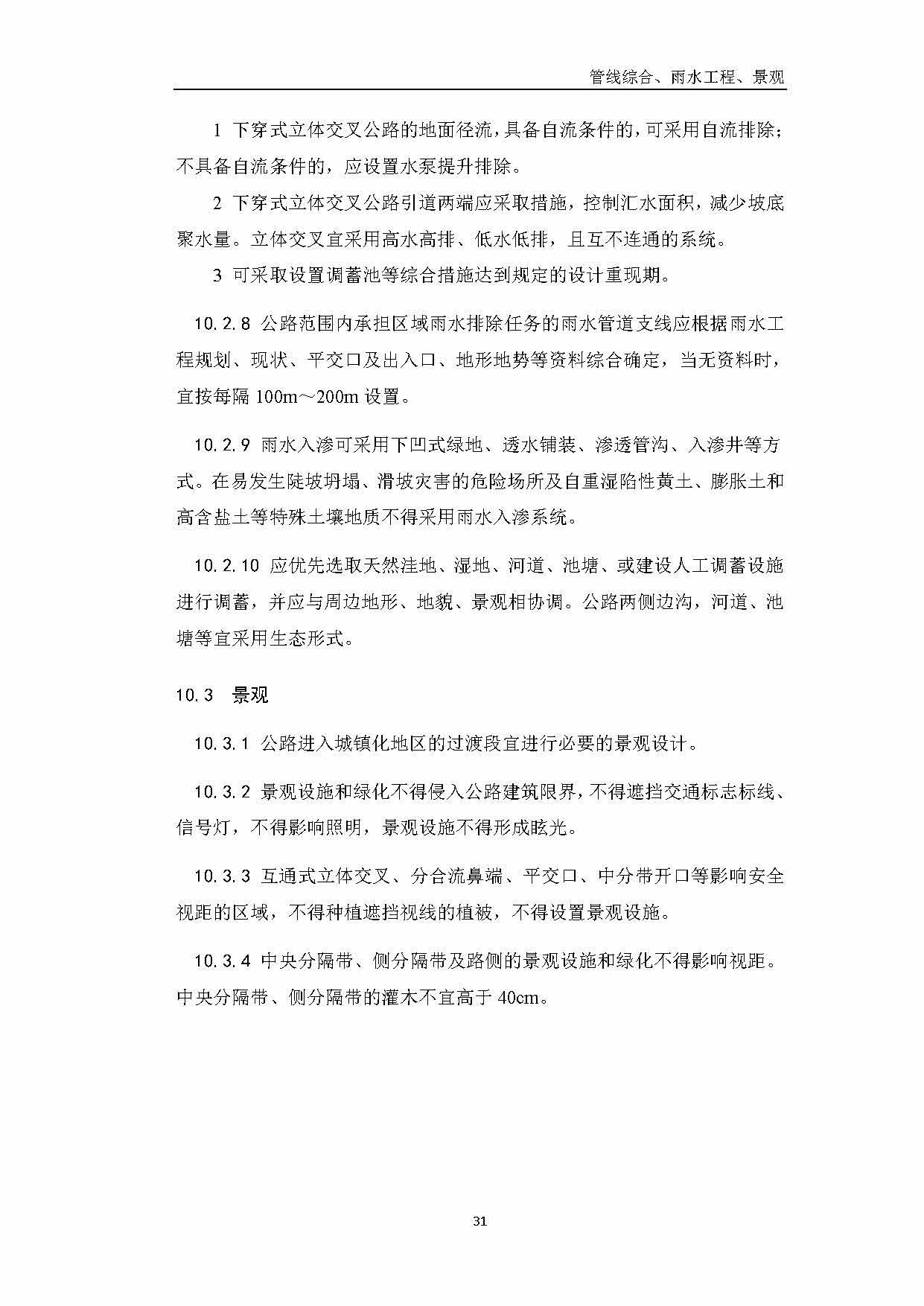 本標準正文 10 章,包括總則,術語,基本規定,路線,路基路面,橋涵,隧道,路線交叉,交通工程及沿線設施,管線綜合、雨水工程、景觀。本標準由唐琤琤、楊曼娟負責起草第 1、2 章,謝軍、史艷華負責起草第 3 章,郭忠印、宋燦燦負責起草第 4、5 章,李軍負責起草第 6 章,廖軍洪負責起草第 7 章,周建、盛明宏負責起草第 8 章,晁遂、唐琤琤、楊曼娟、矯成武、鮑飛負責起草第9 章,侯良潔、高陽負責起草第 10 章。