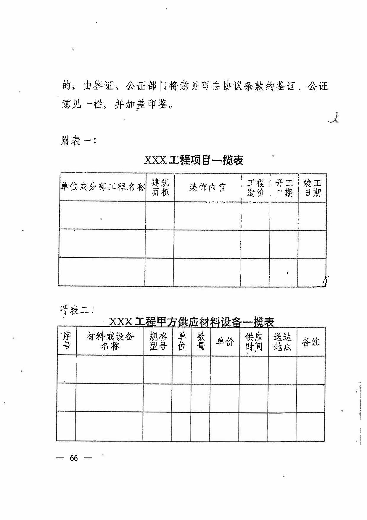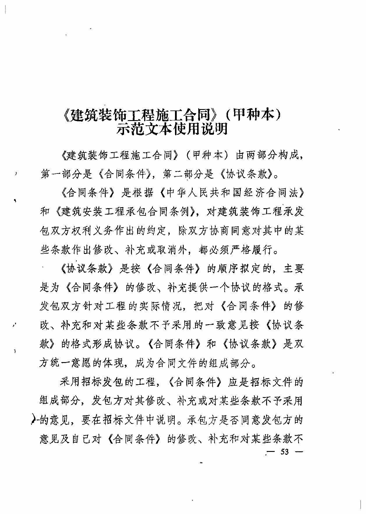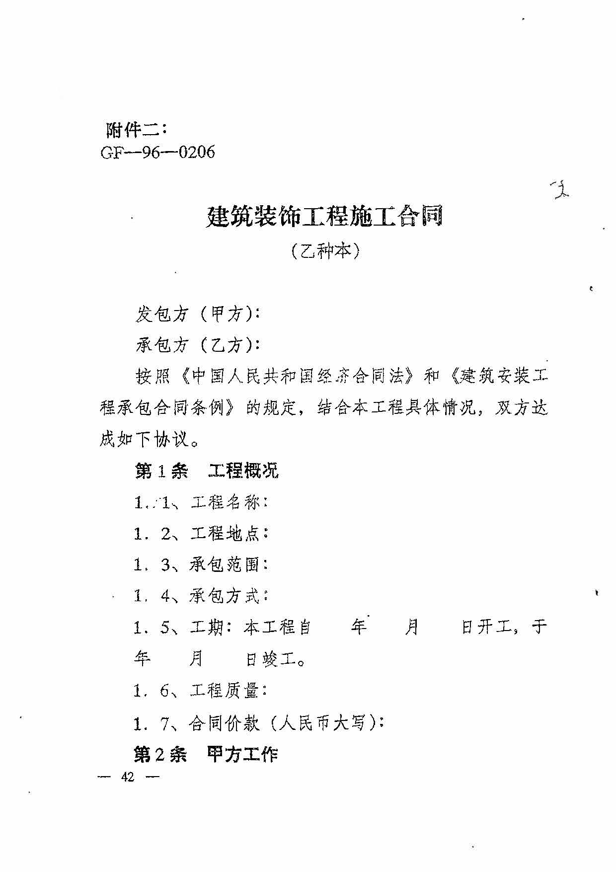 為了規范建筑裝飾工程市場行為,維護承發包雙方權益,現將建筑裝飾工程施工合同甲種本(GF-96-0205)和乙種本(GF-96-0206)兩個示范文本印發給你們。建筑裝飾工程施工合同甲種本適用于大、中型建筑裝飾工程,乙種本適用于小型建筑裝飾工程。大中小型工程的界定,建議以工程造價為界定依據,由各地區、各部門具體規定。