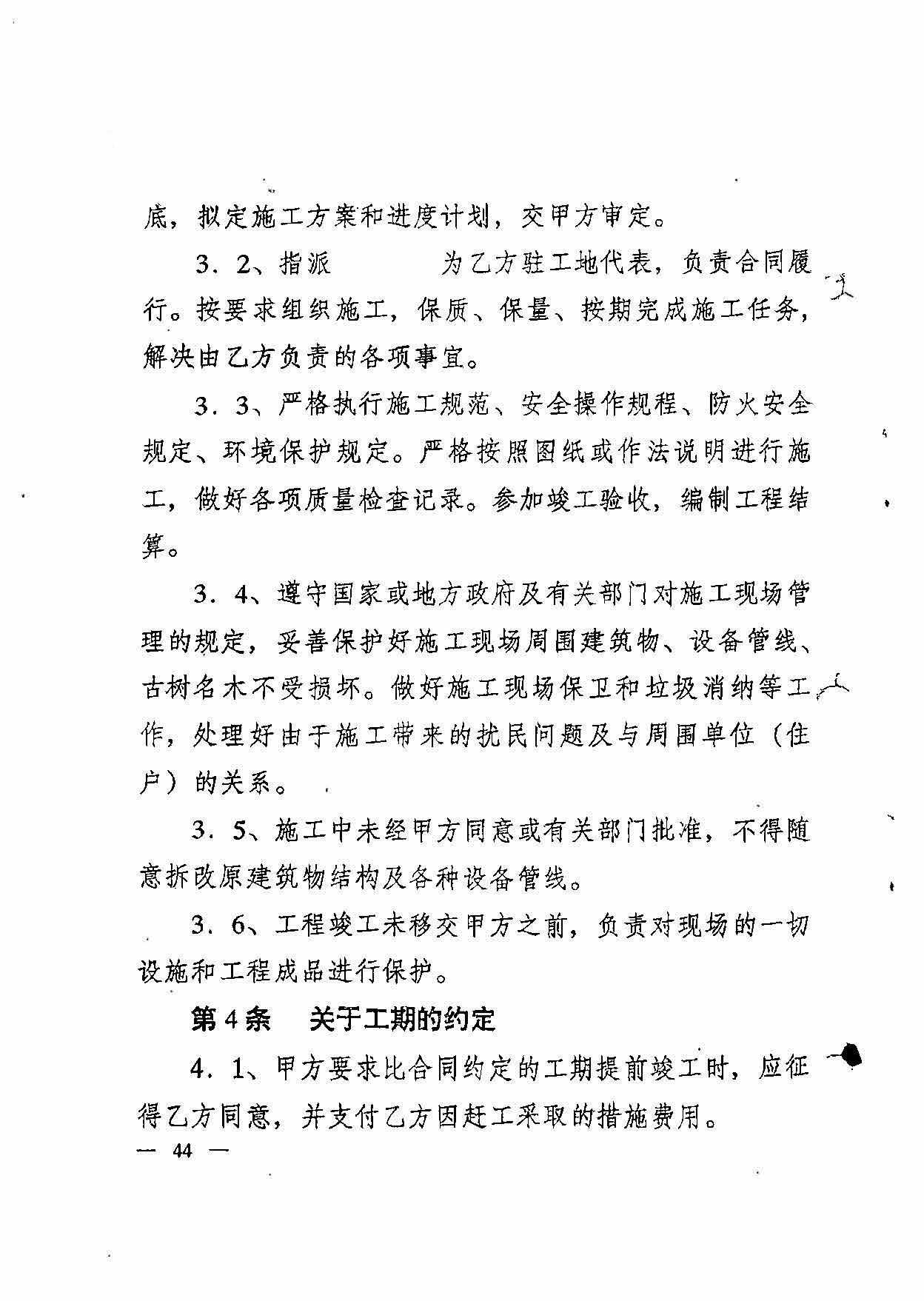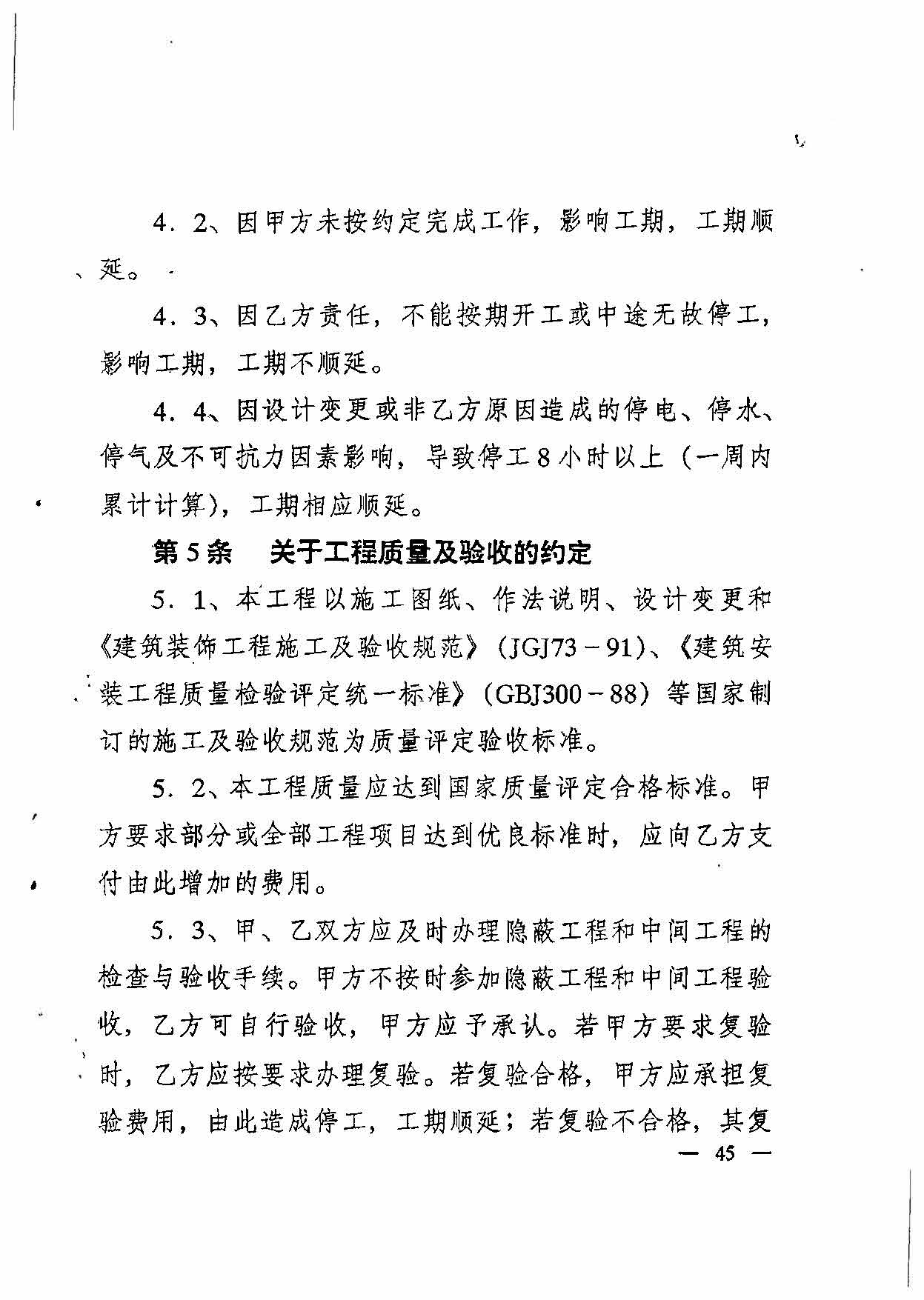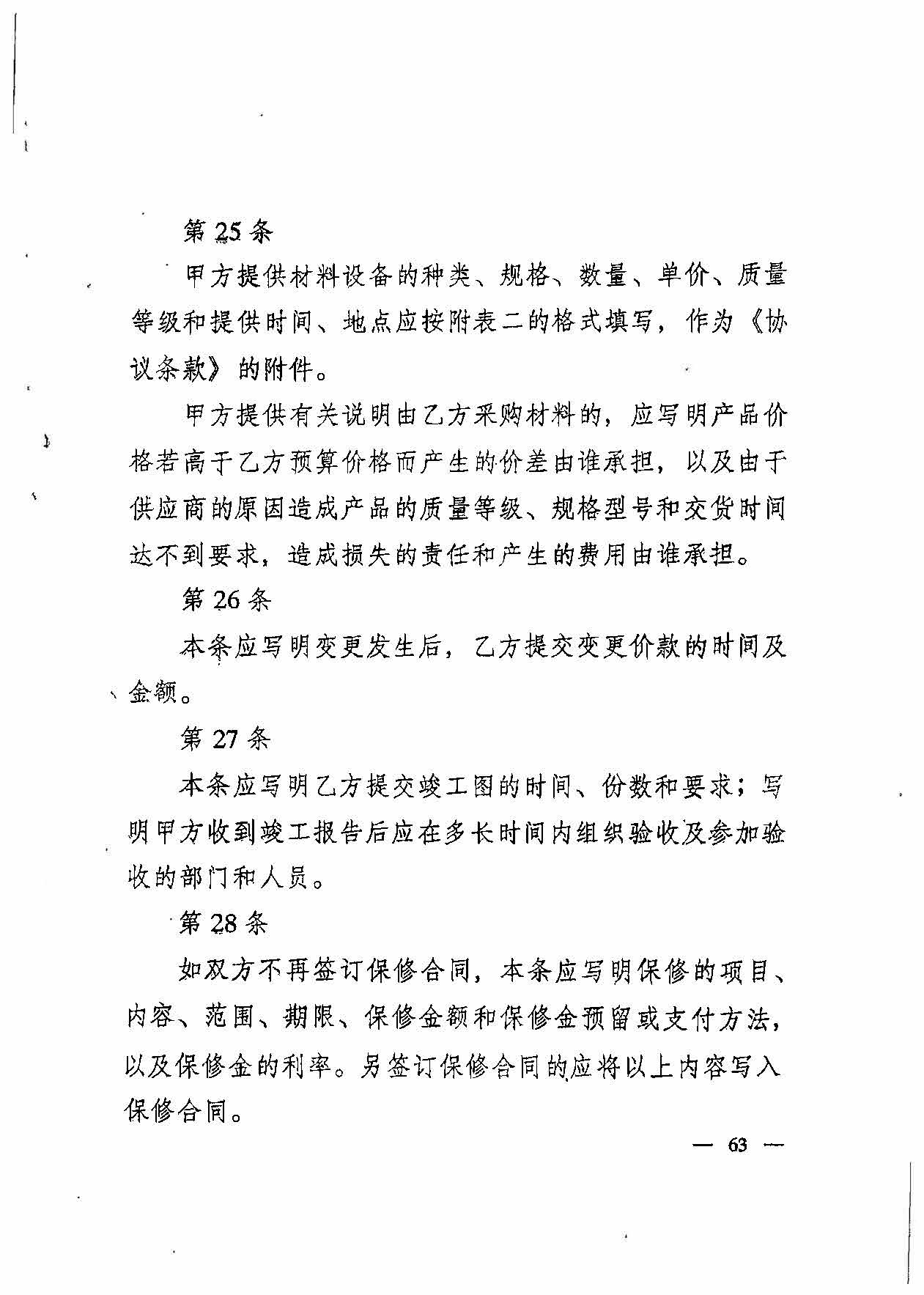 為了規范建筑裝飾工程市場行為,維護承發包雙方權益,現將建筑裝飾工程施工合同甲種本(GF-96-0205)和乙種本(GF-96-0206)兩個示范文本印發給你們。建筑裝飾工程施工合同甲種本適用于大、中型建筑裝飾工程,乙種本適用于小型建筑裝飾工程。大中小型工程的界定,建議以工程造價為界定依據,由各地區、各部門具體規定。