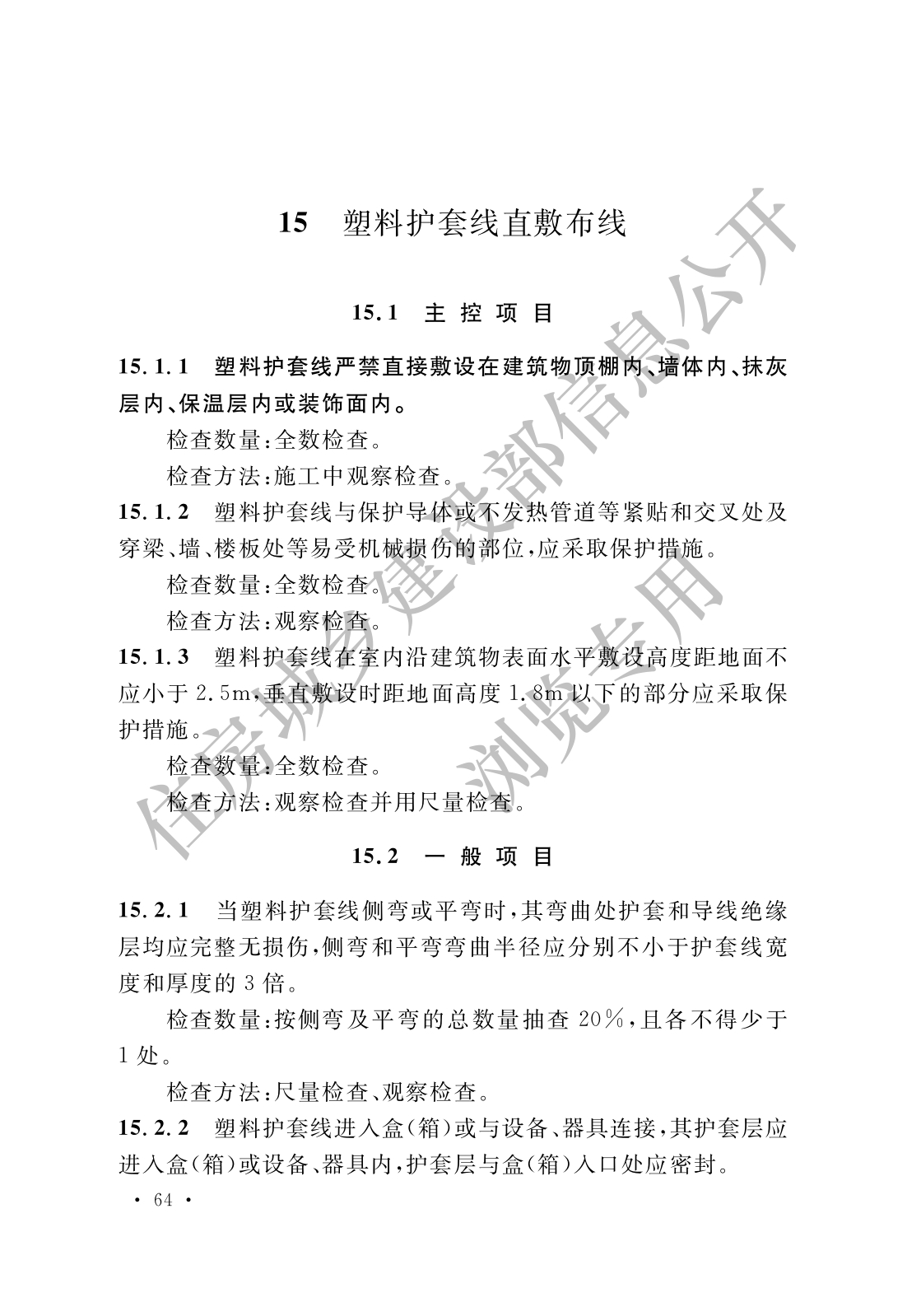 現批準《建筑電氣工程施工質量驗收規范》為國家標準,編號為GB50303-2015,自2016年8月1日起實施。其中,第3.1.5、3.1.7、6.1.1、10.1.1、11.1.1、12.1.2、13.1.1、13.1.5、14.1.1、15.1.1、18.1.1、18.1.5、19.1.1、19.1.6、20.1.3、23.1.1、24.1.3條為*性條文,必須嚴格執行。原國家標準《建筑電氣工程施工質量驗收規范》GB50303-2002同時廢止。
