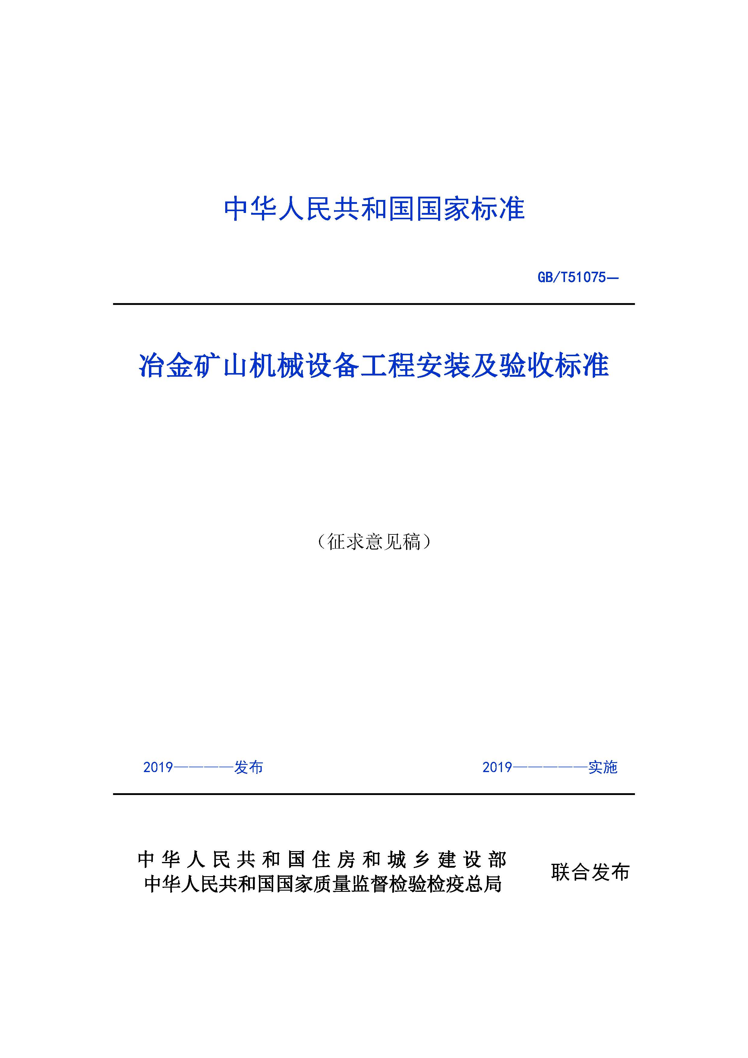 住房城鄉建設部辦公廳關于國家標準《冶金礦山機械設備工程安裝及驗收標準》公開征求意見的通知: