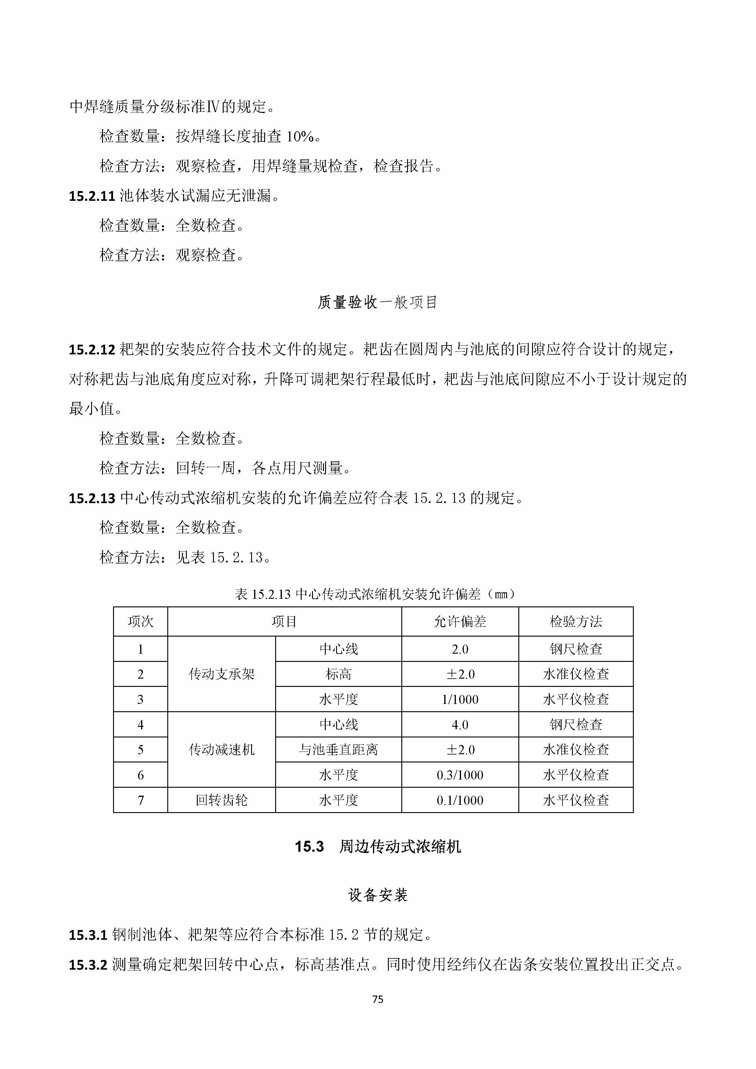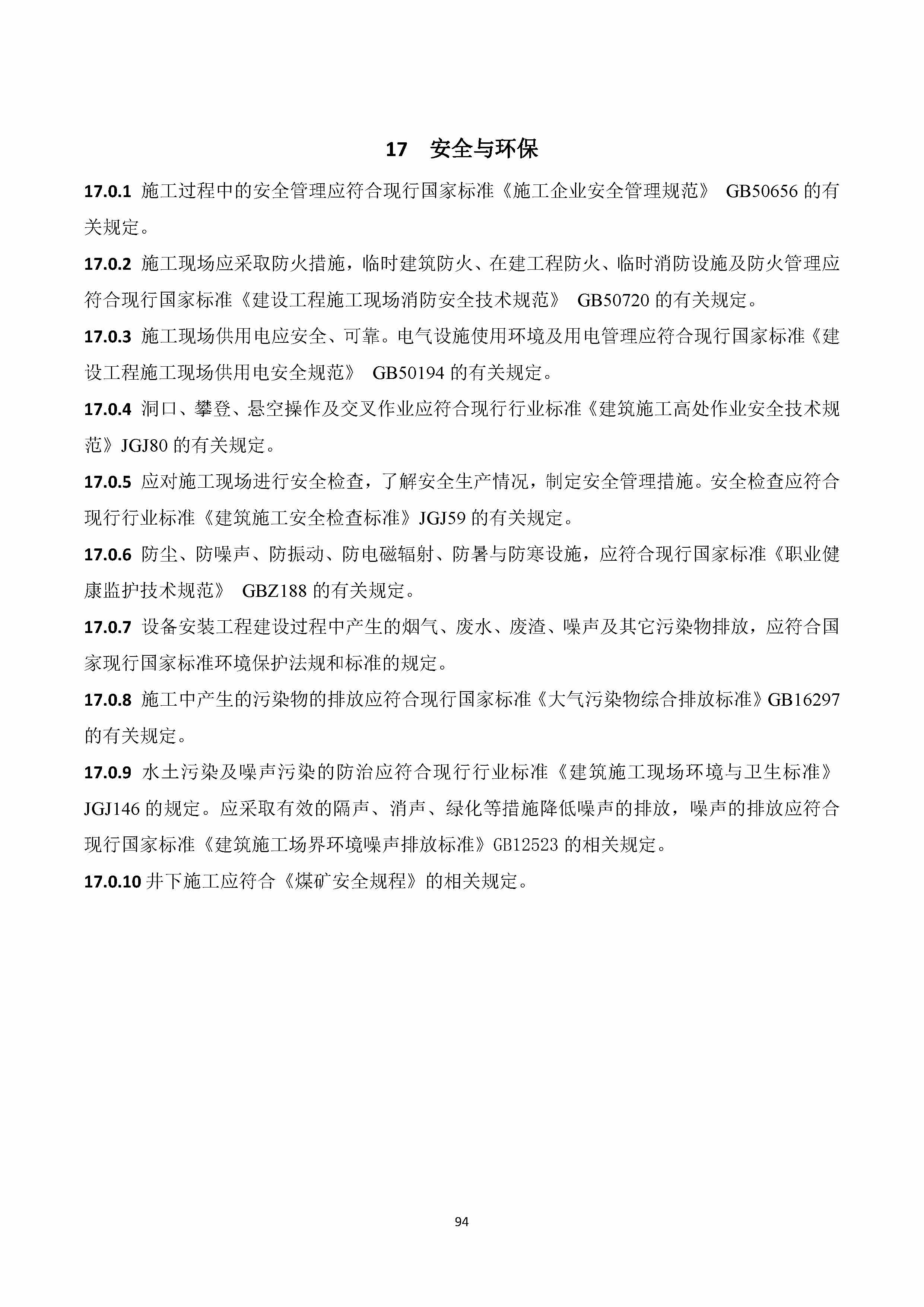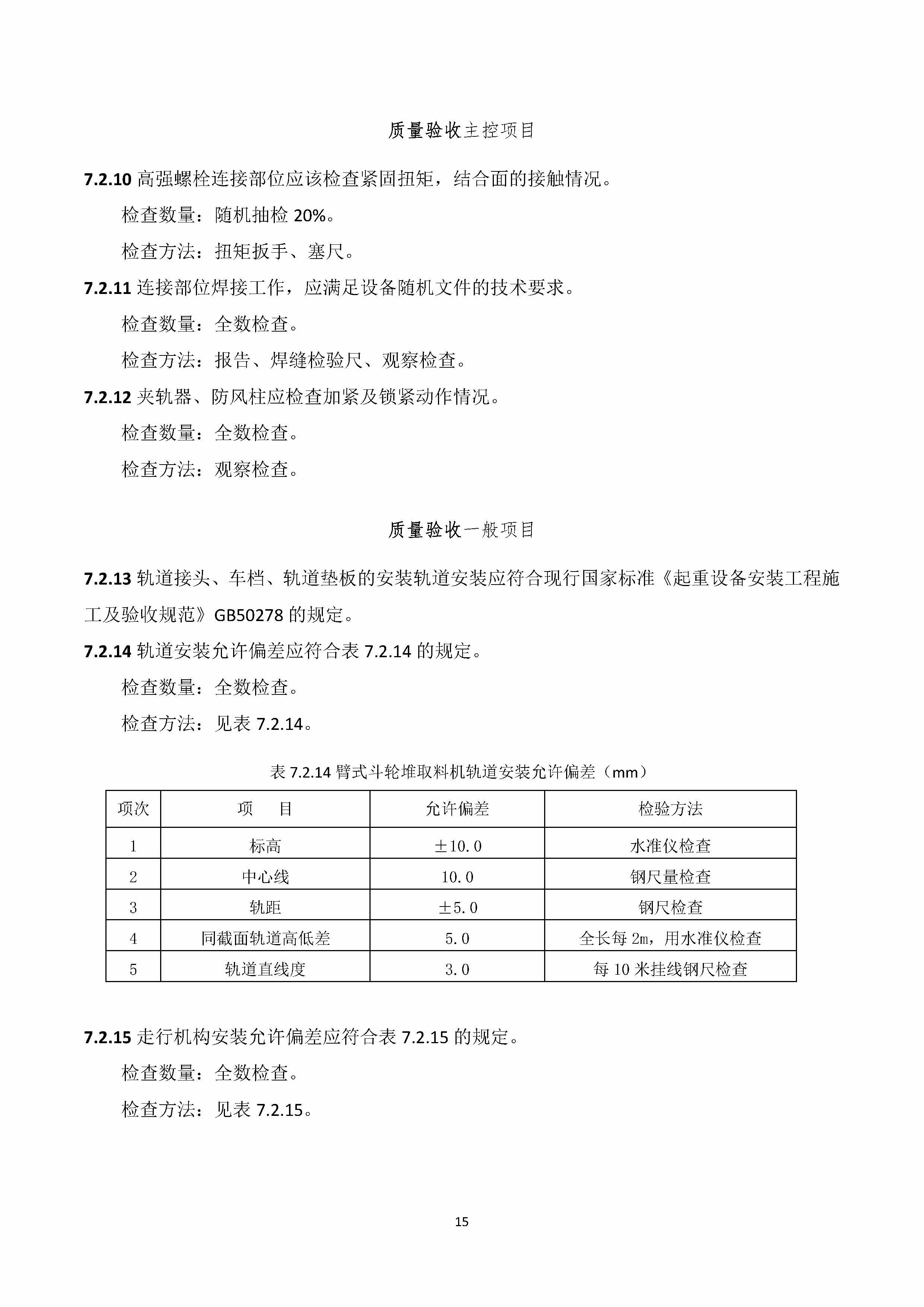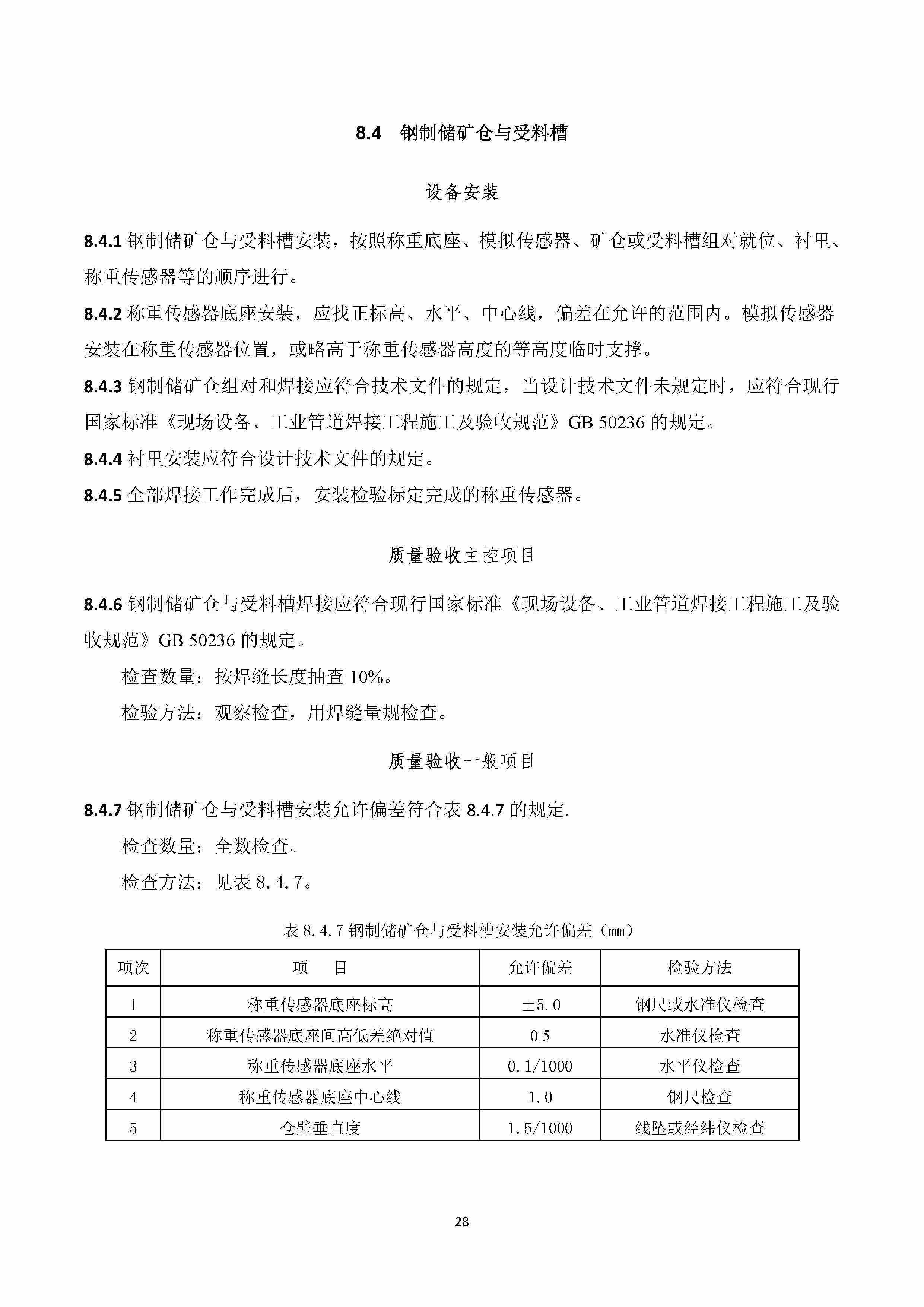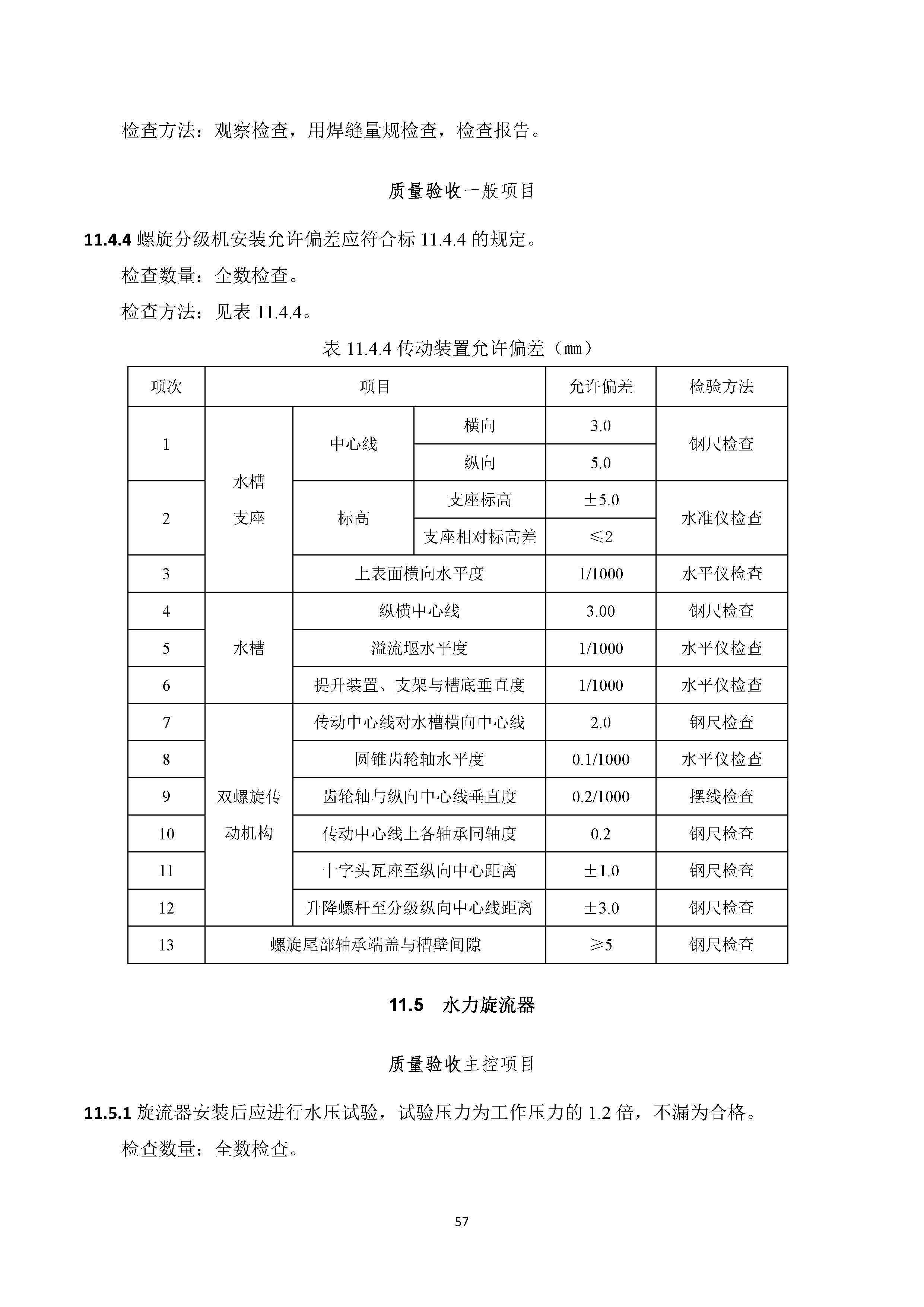 本規范共分17章,包括總則,術語,基本規定,設備基礎、地腳螺栓和墊板,設備和材料,堆、取、卸礦設備,連續長輸礦設備,儲礦倉及受料槽(斗),給礦設備,破碎及篩分設備,磨礦設備,分級設備,磁選設備,浮選設備,重選設備,脫水設備,安全環保。本規范中以黑體字標志的條文為*性條文,必須嚴格執行。
