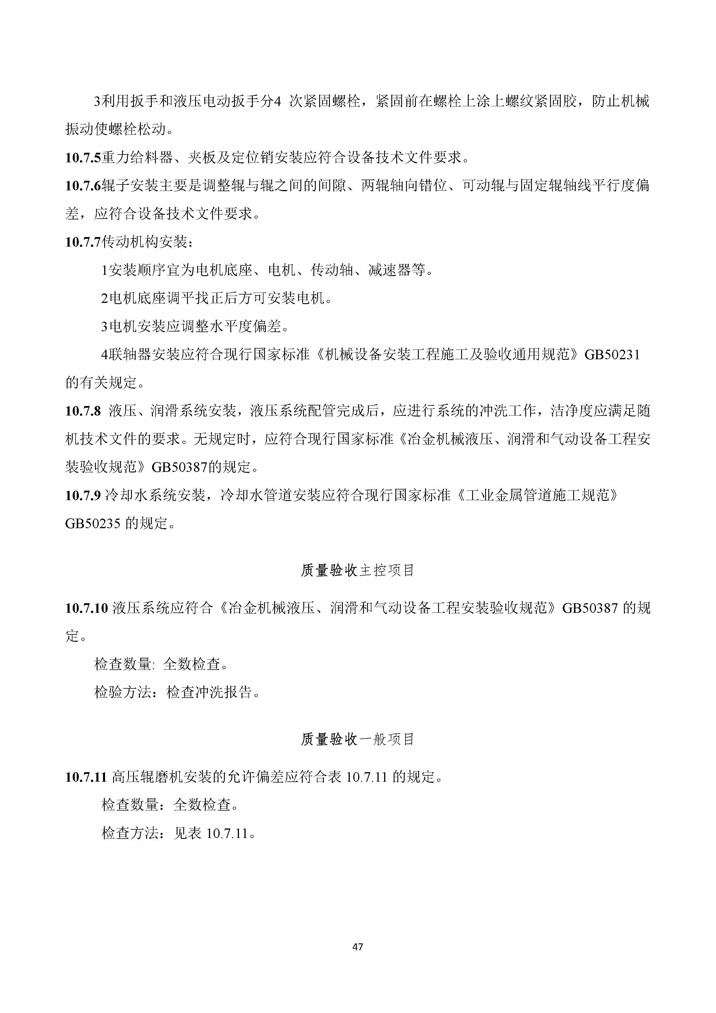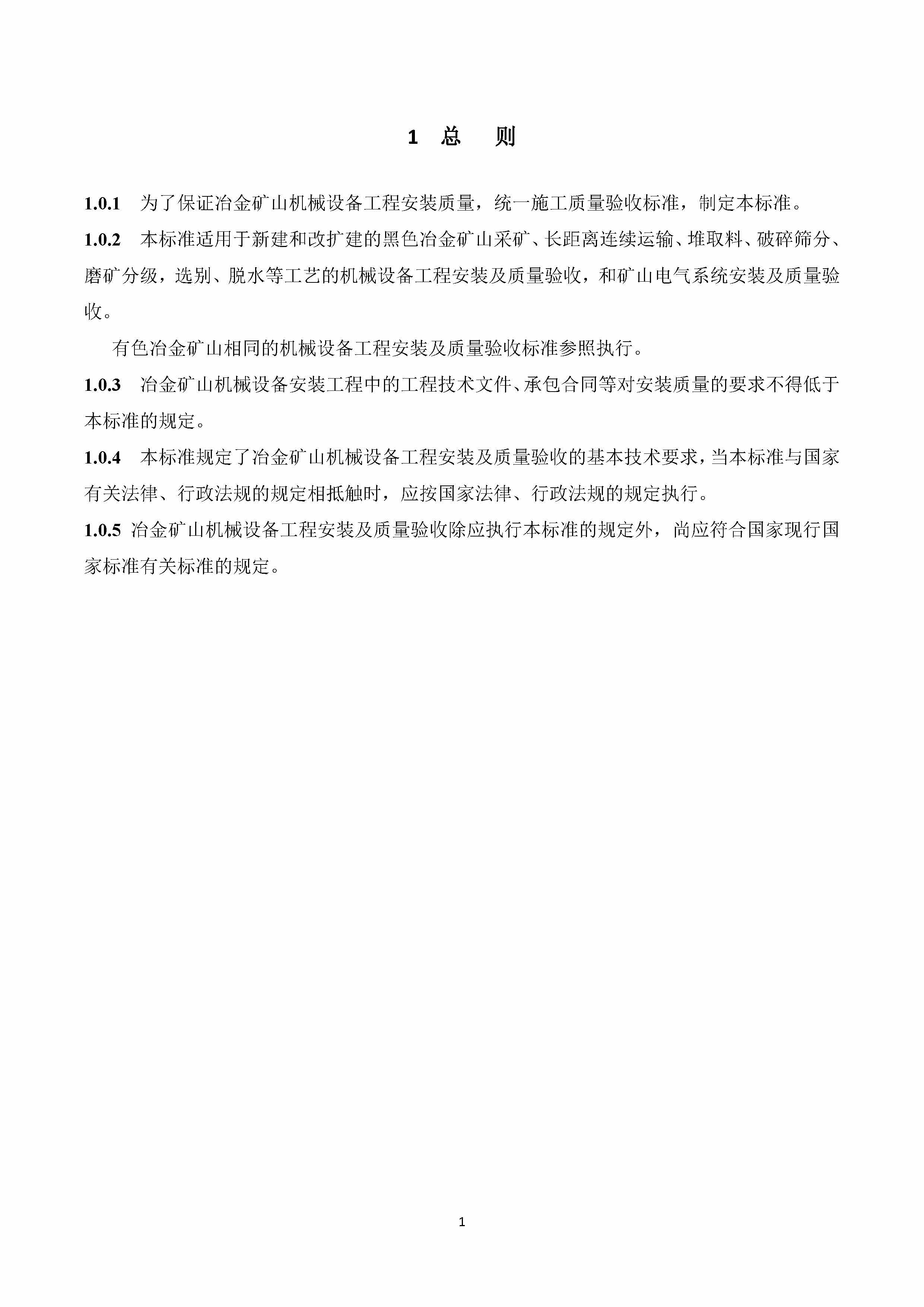 冶金礦山機械設備工程安裝及質量驗收除應執行本標準的規定外,尚應符合國家現行國家標準有關標準的規定。