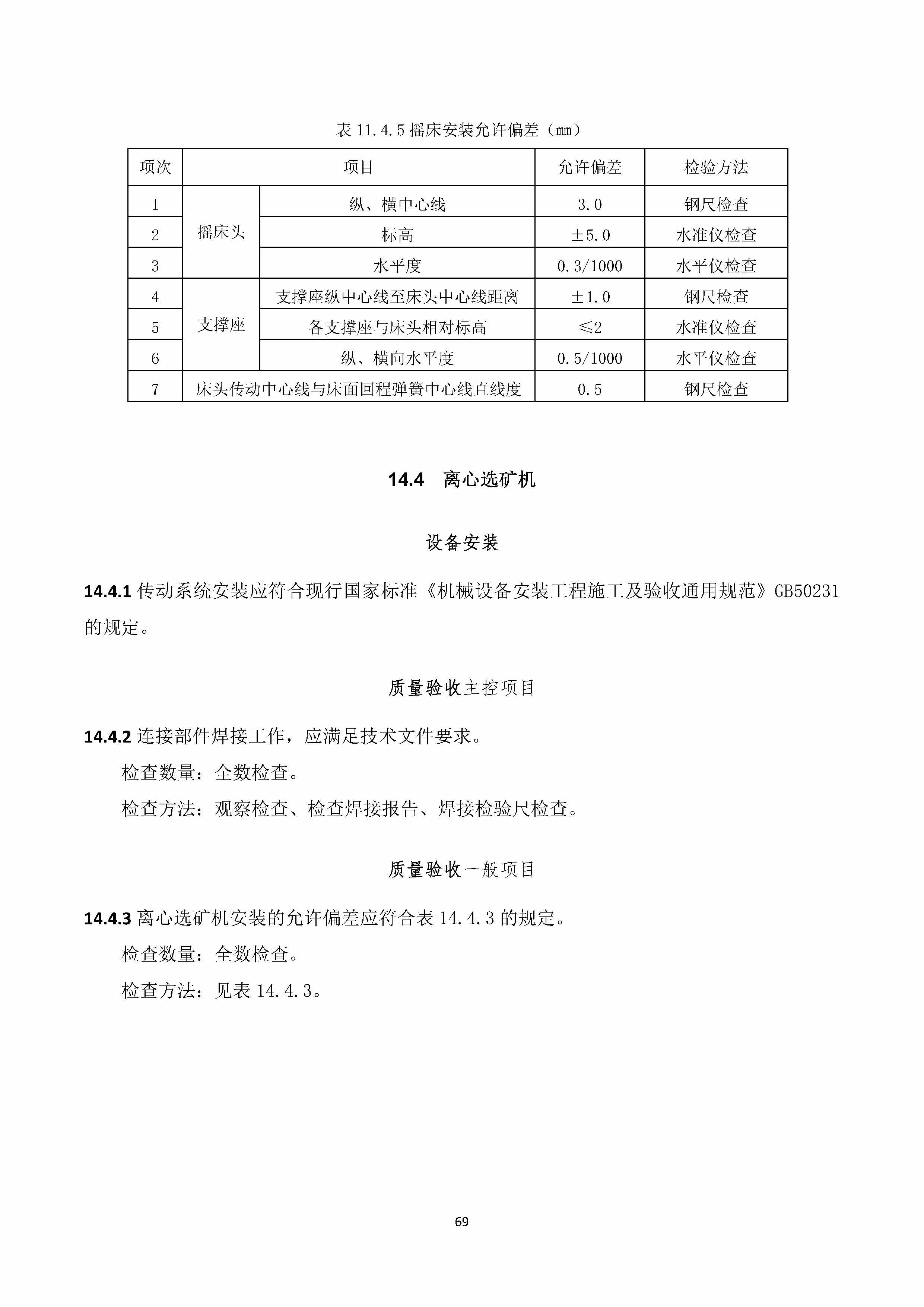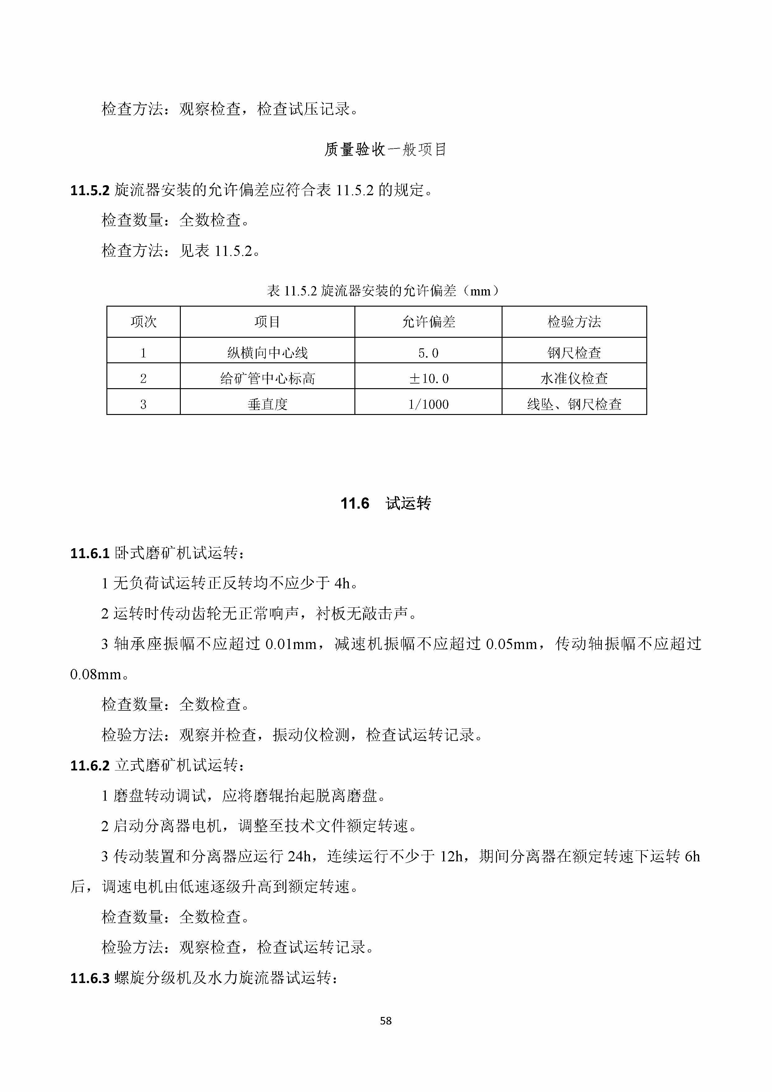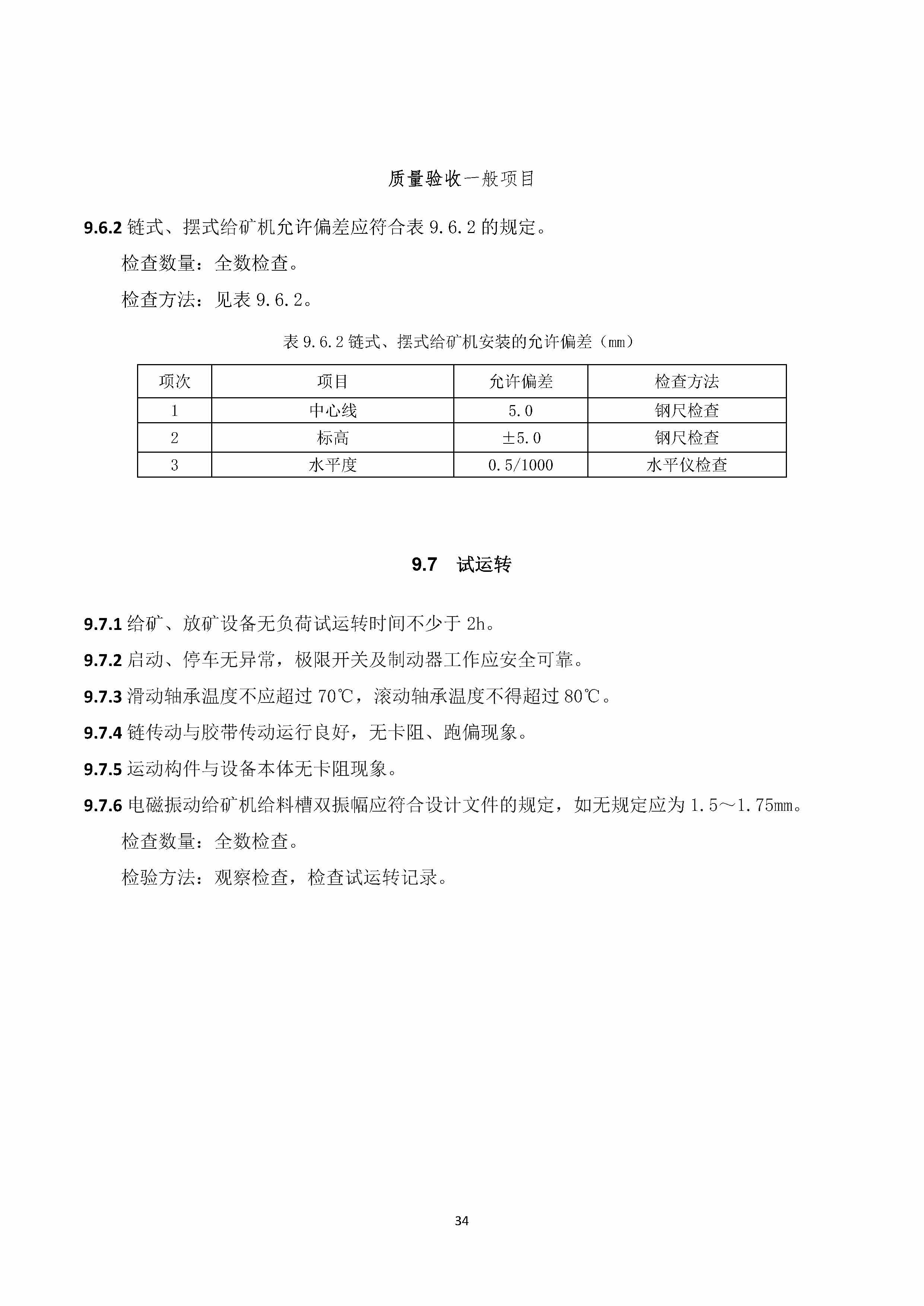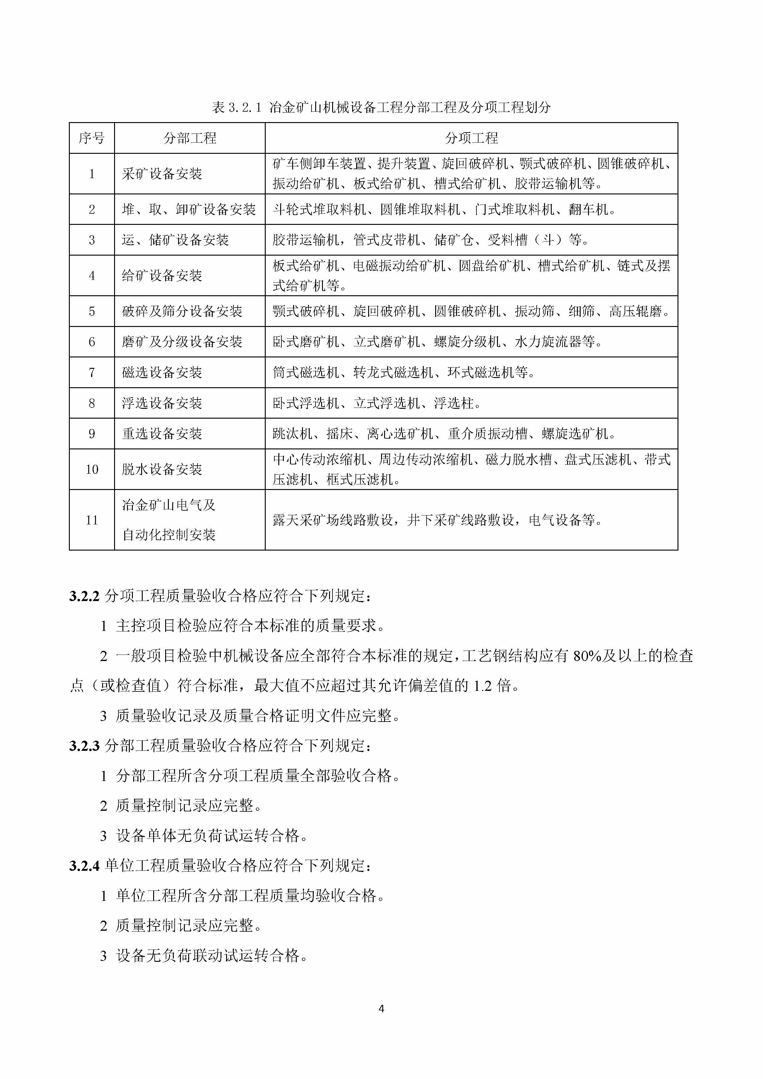 有色冶金礦山相同的機械設備工程安裝及質量驗收標準參照執行。