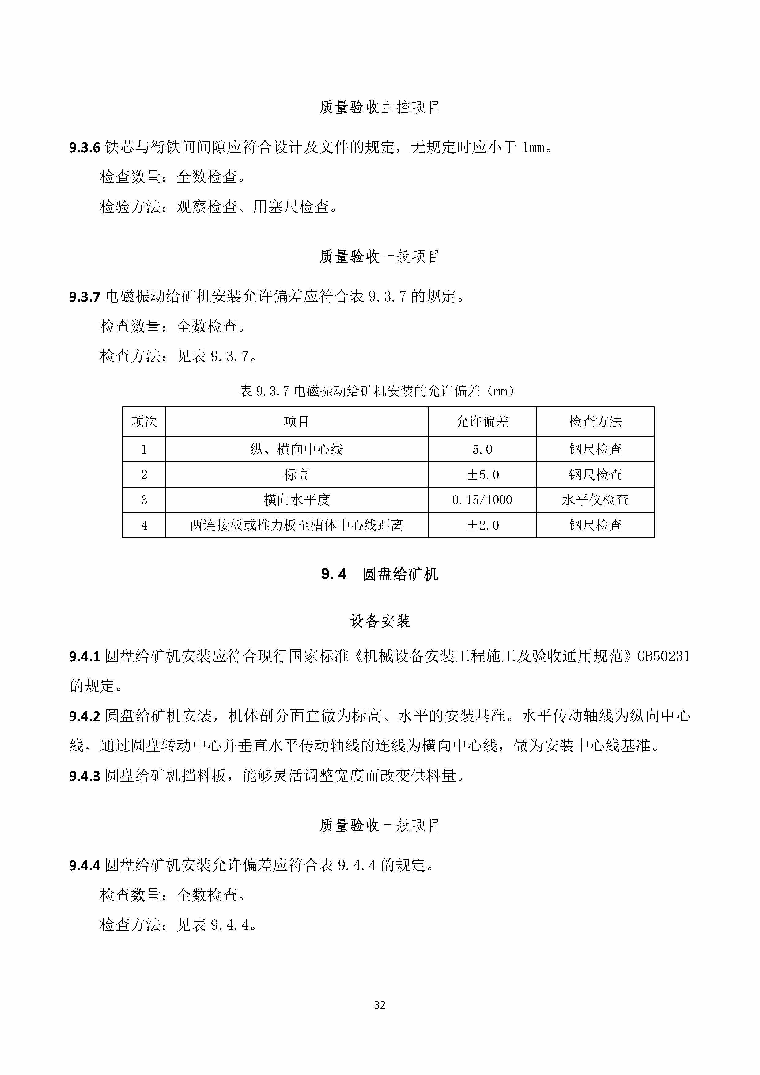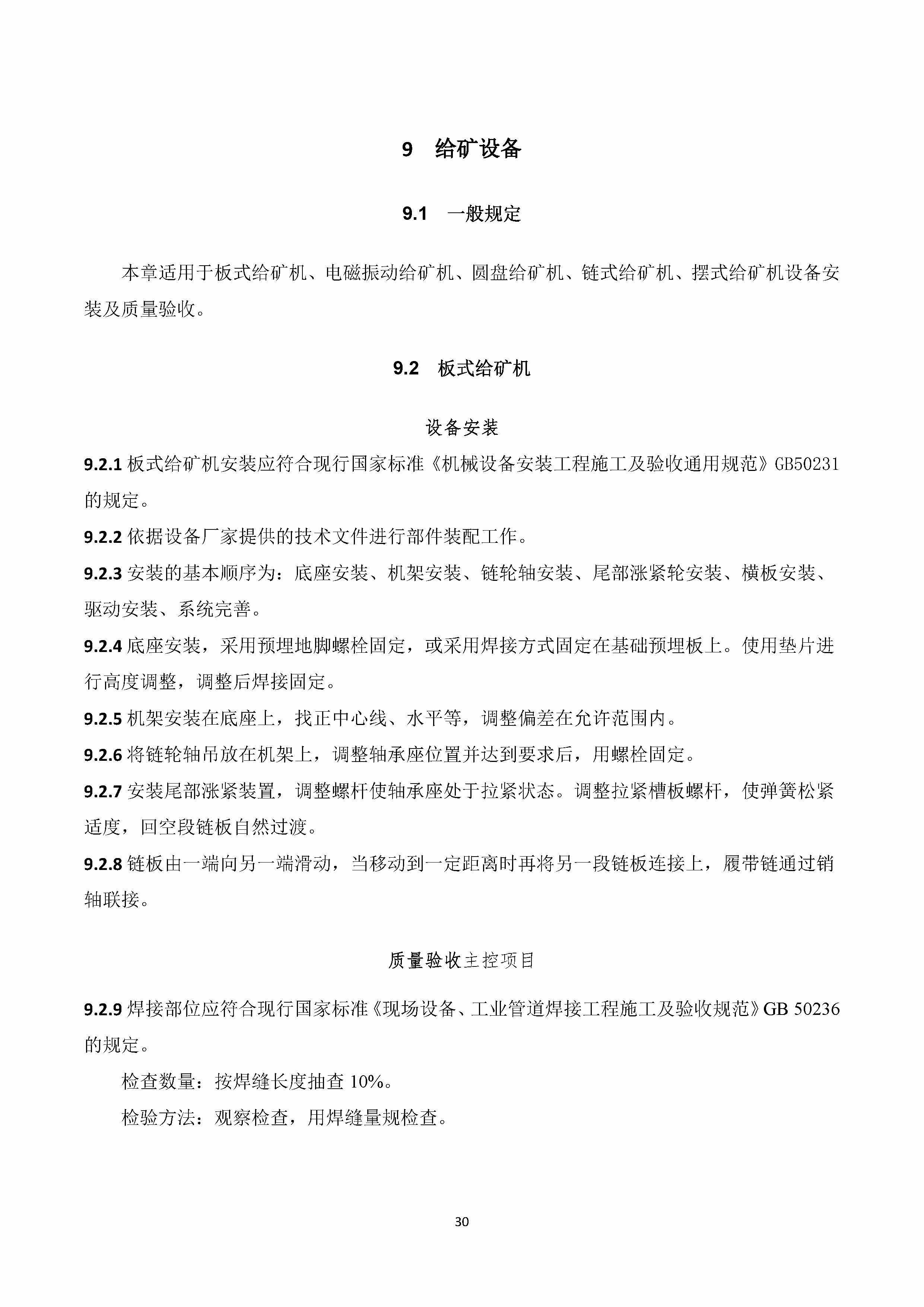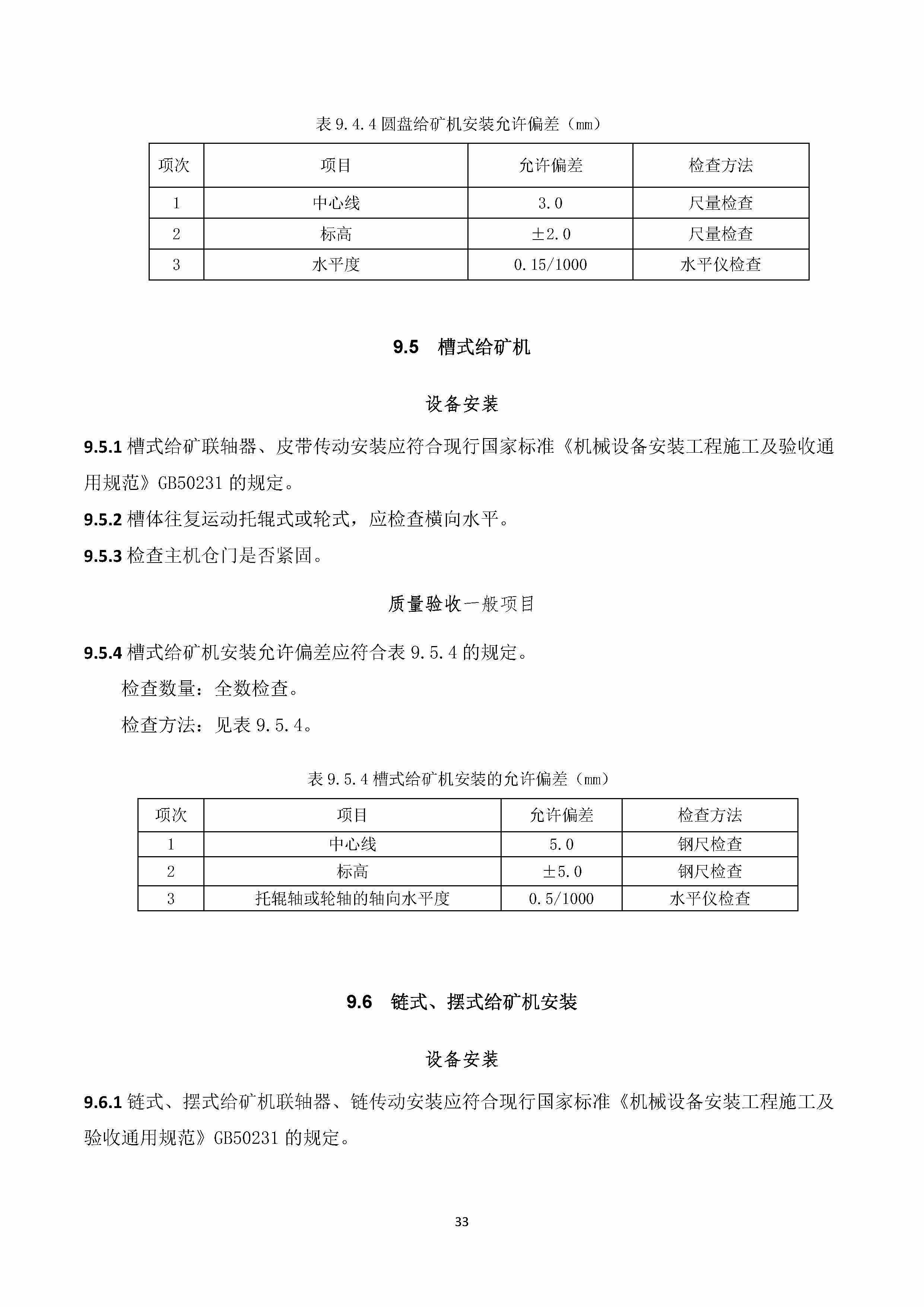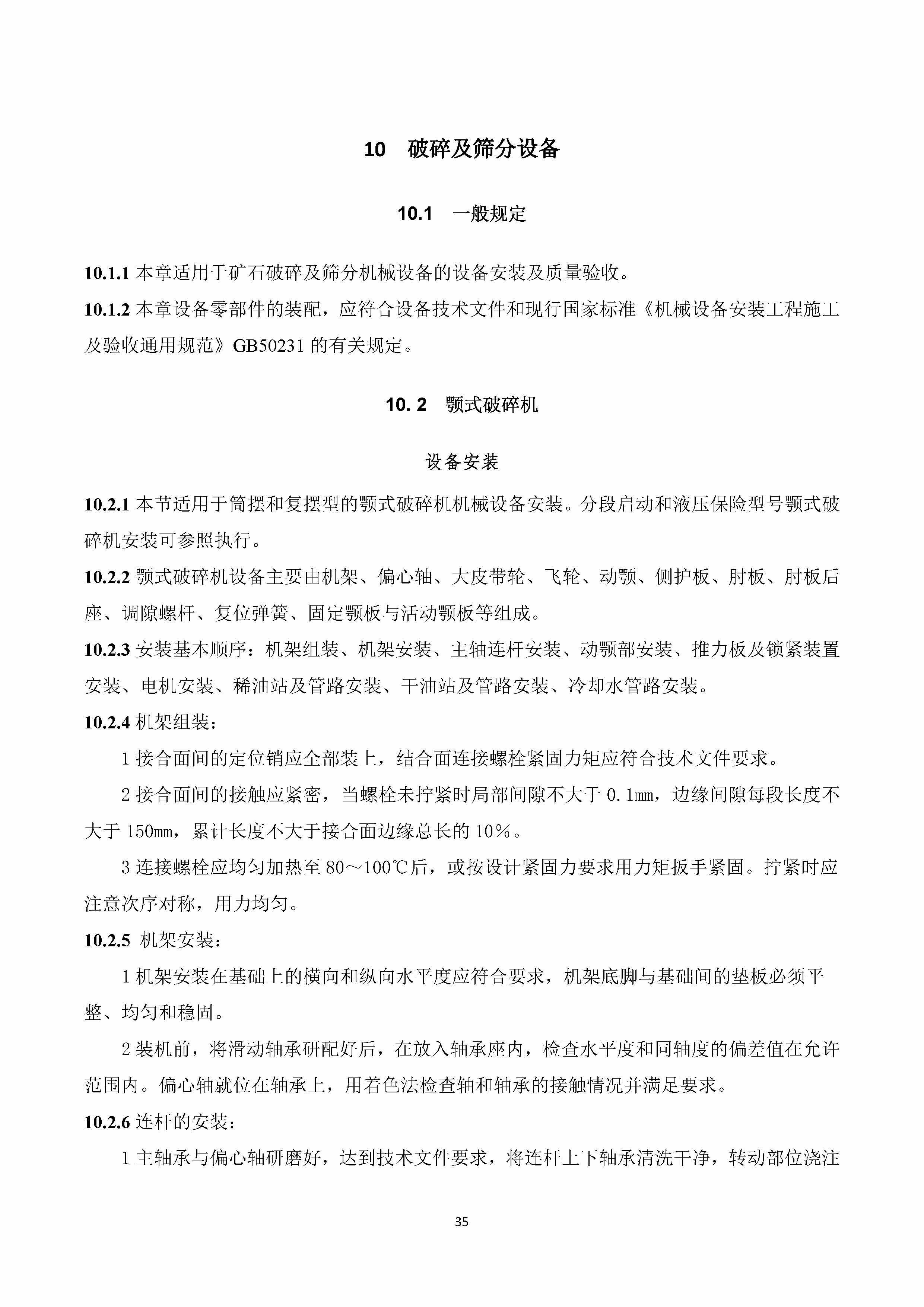 有色冶金礦山相同的機械設備工程安裝及質量驗收標準參照執行。