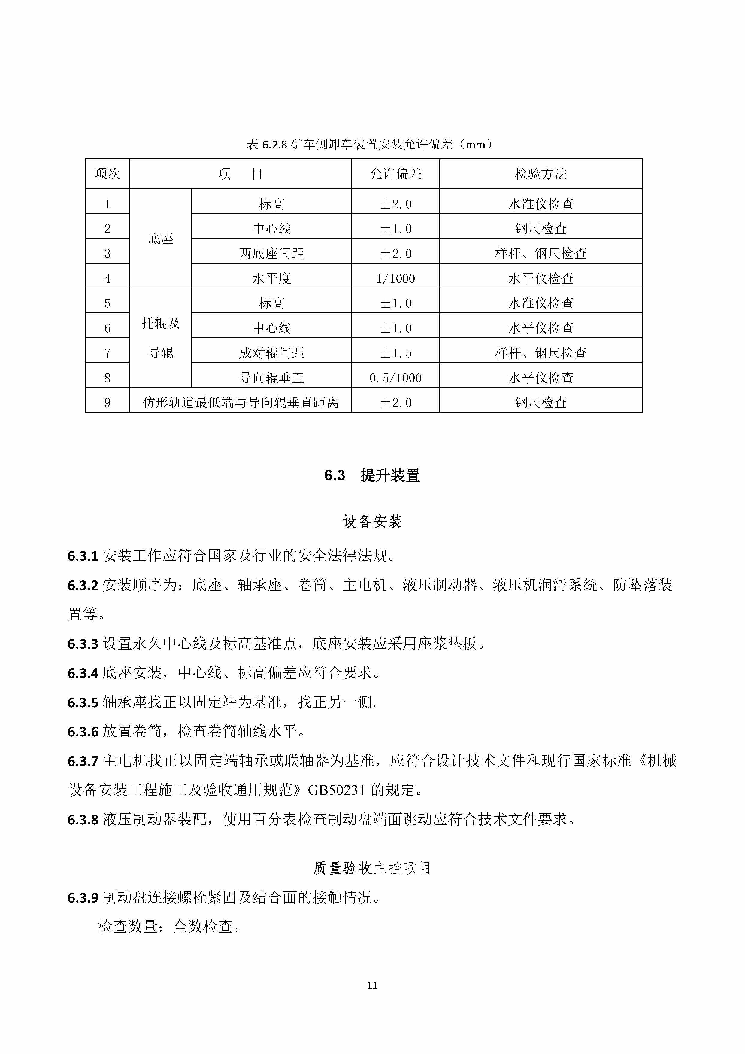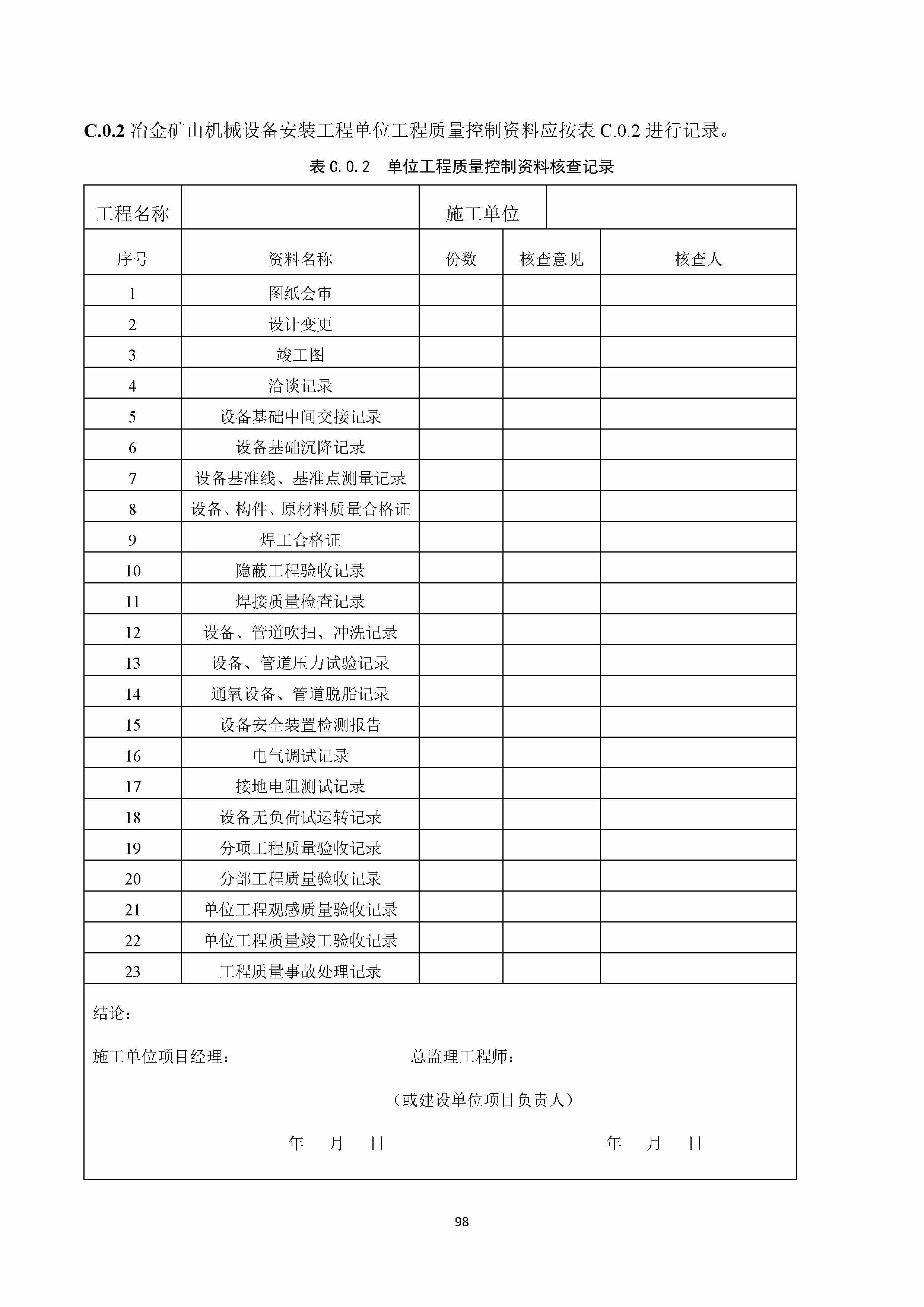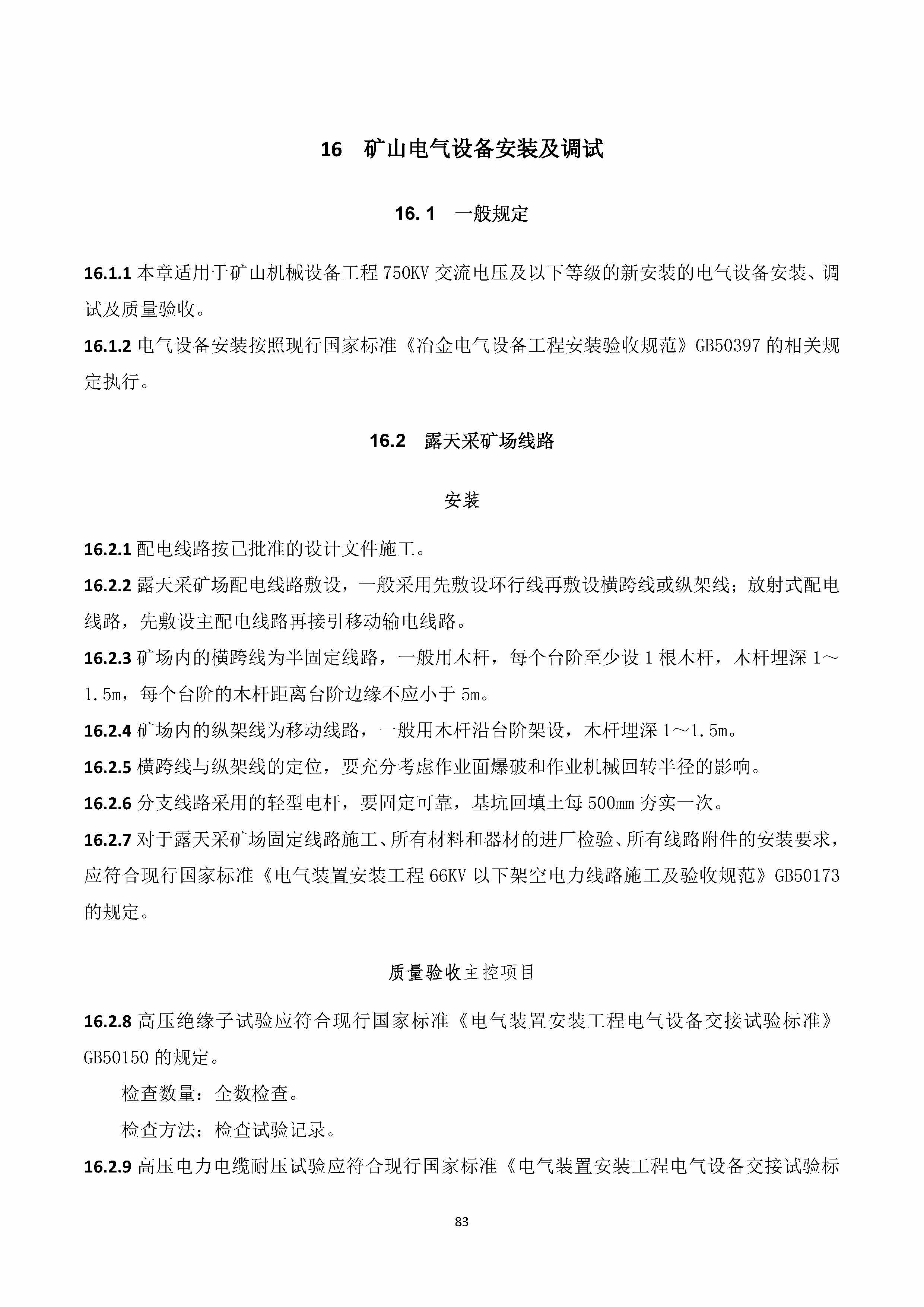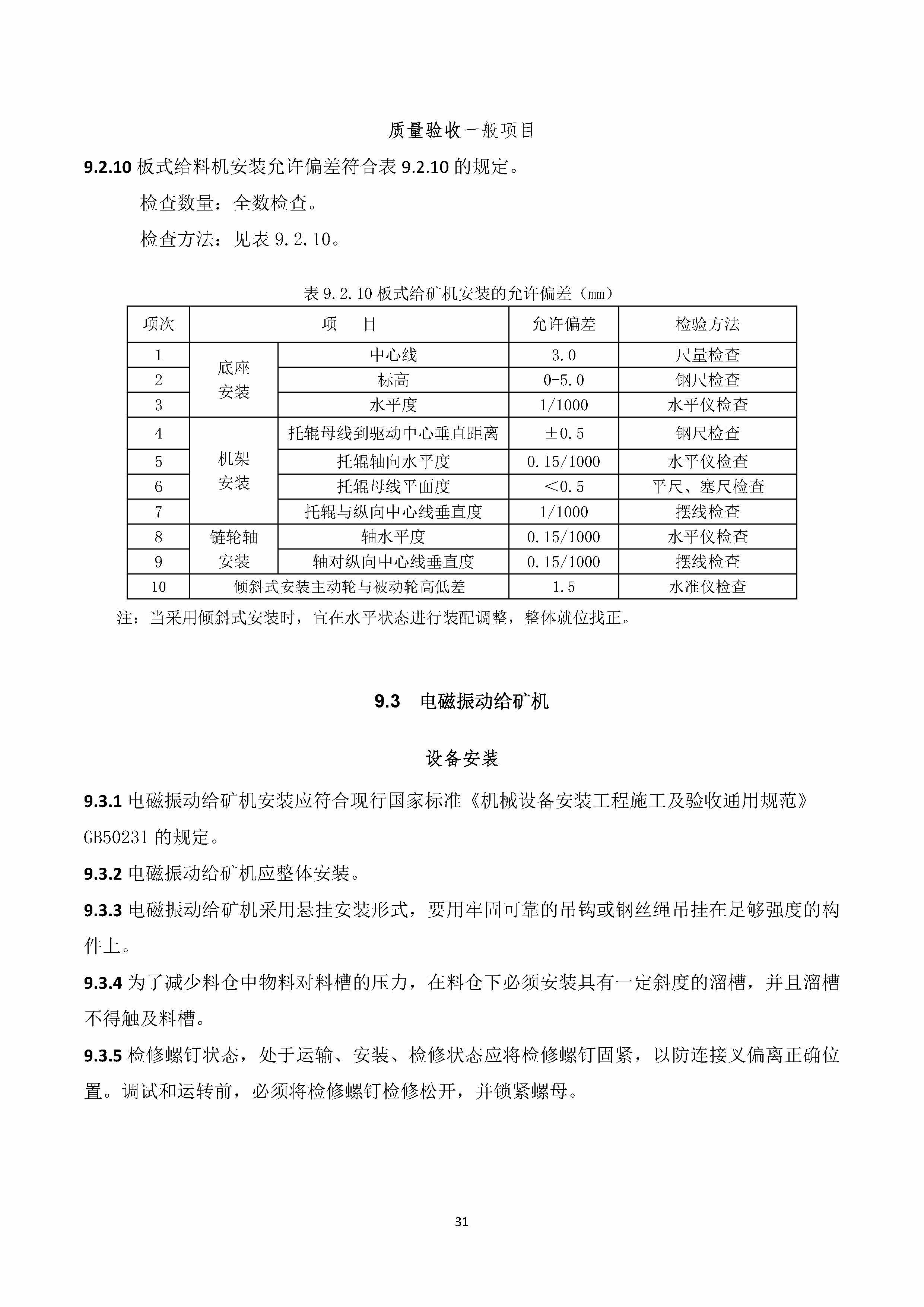 有色冶金礦山相同的機械設備工程安裝及質量驗收標準參照執行。