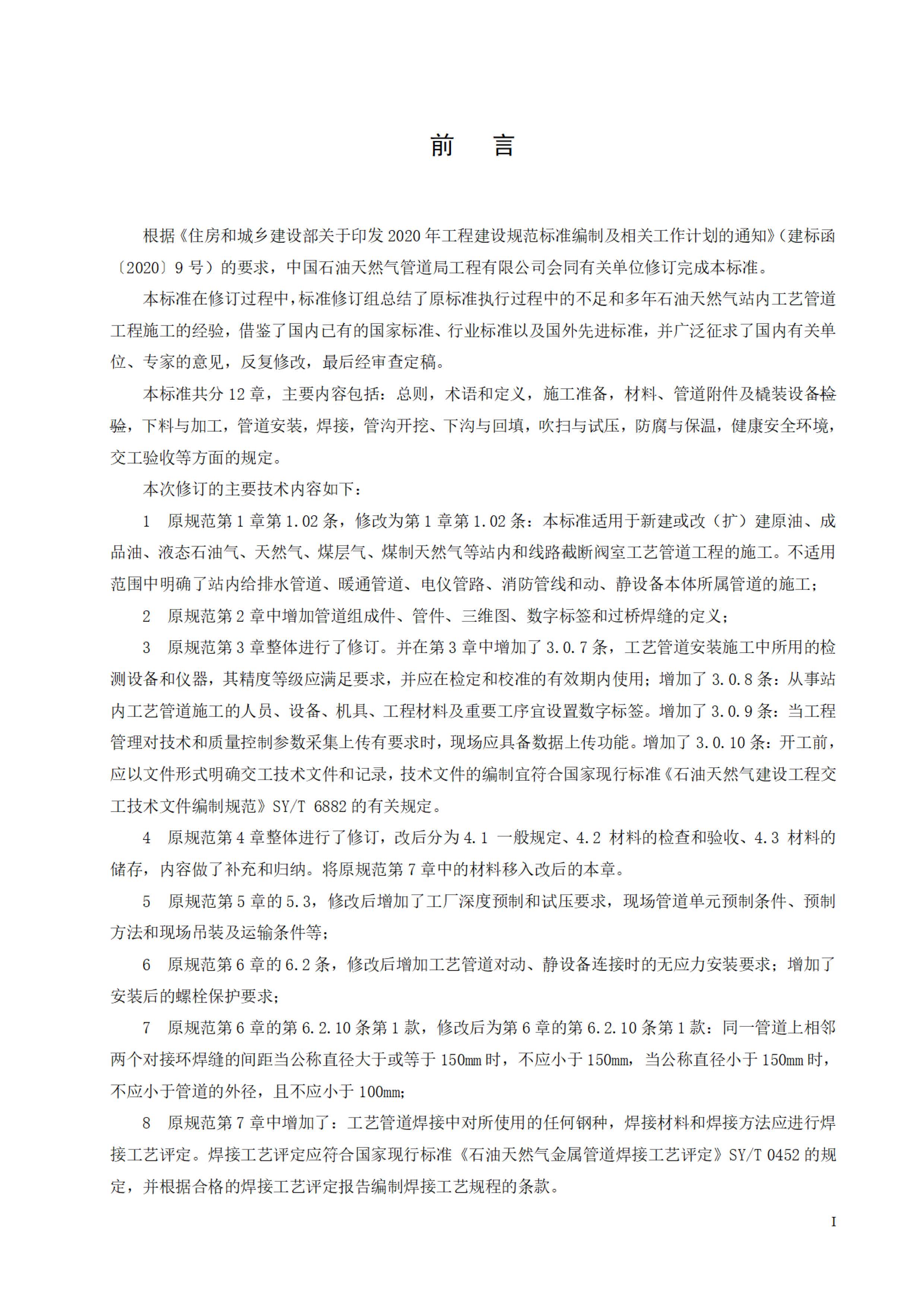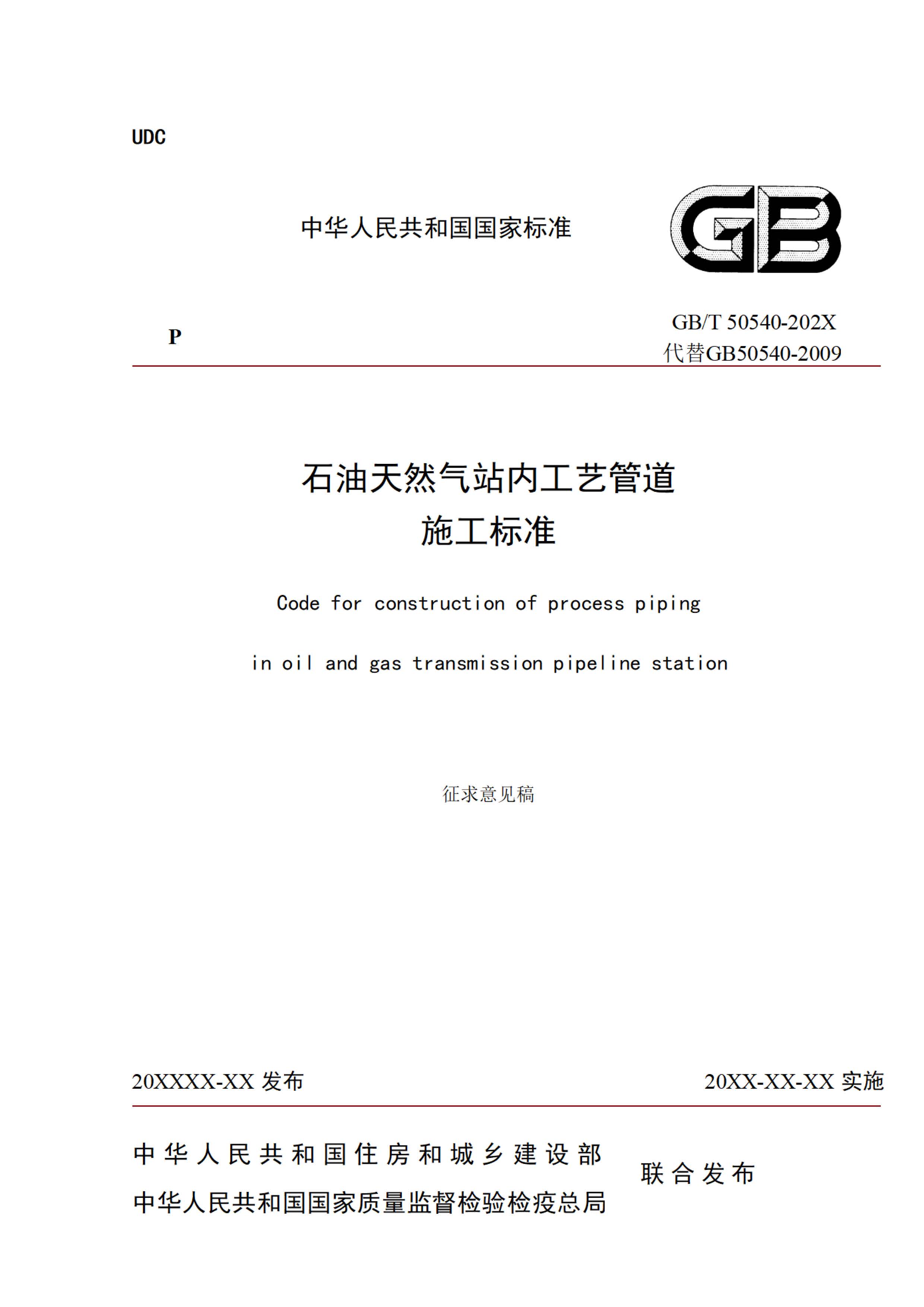 附件:《石油天然氣站內工藝管道施工標準(征求意見稿)》