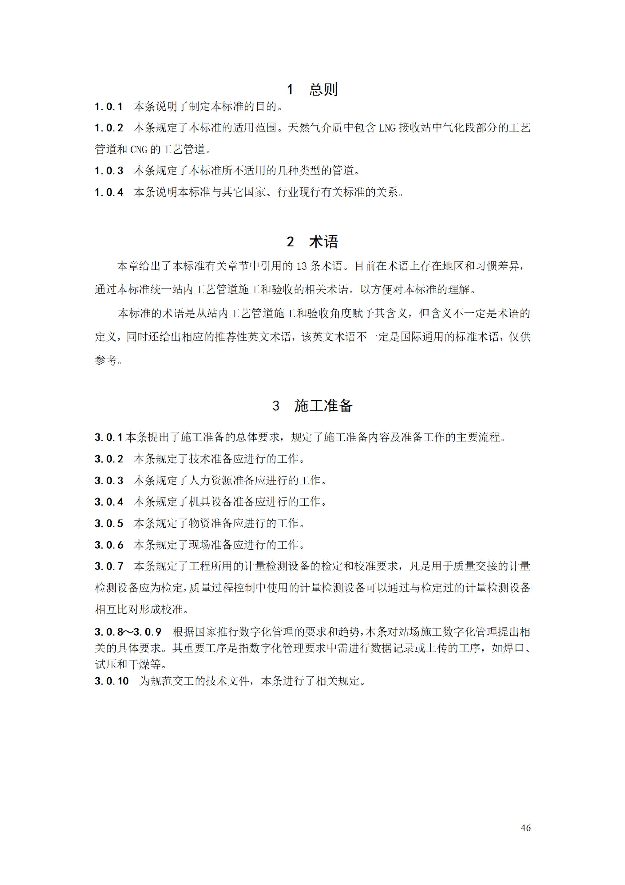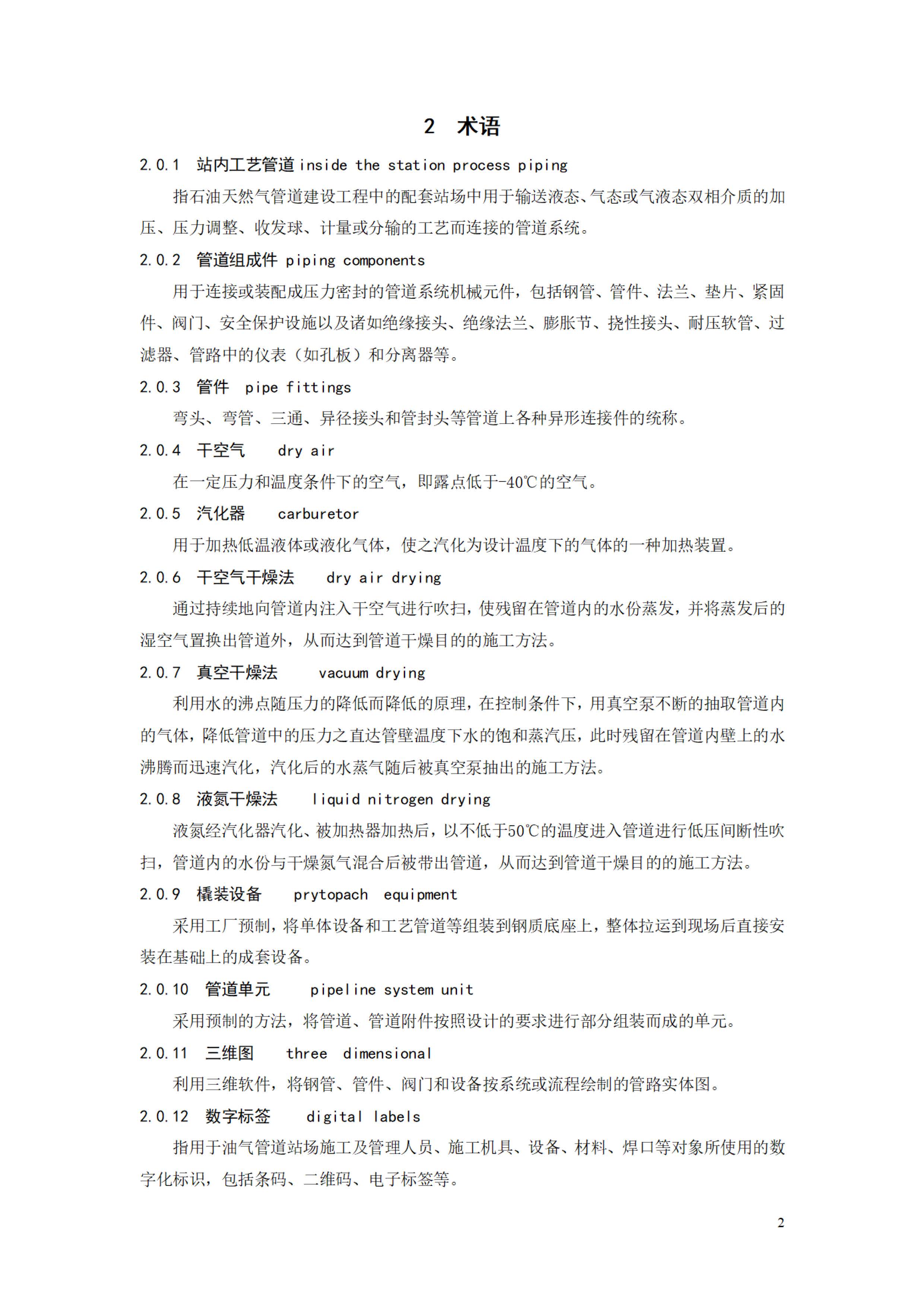 本章給出了本標準有關章節中引用的13條術語。目前在術語上存在地區和習慣差異,通過本標準統一站內工藝管道施工和驗收的相關術語。以方便對本標準的理解。