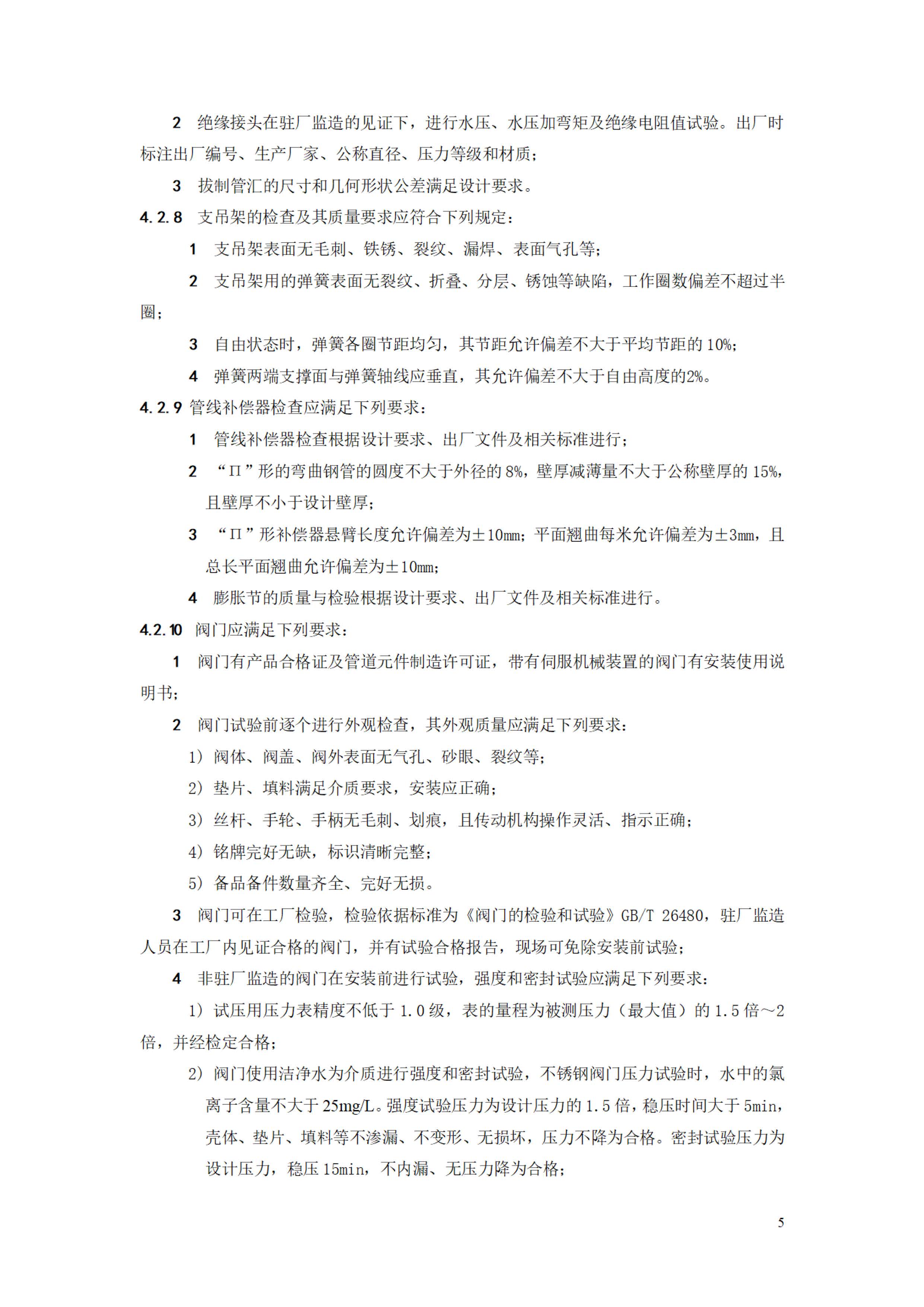 4.2.8~4.2.9規定了支吊架及管道補償器的檢驗的基本要求。
