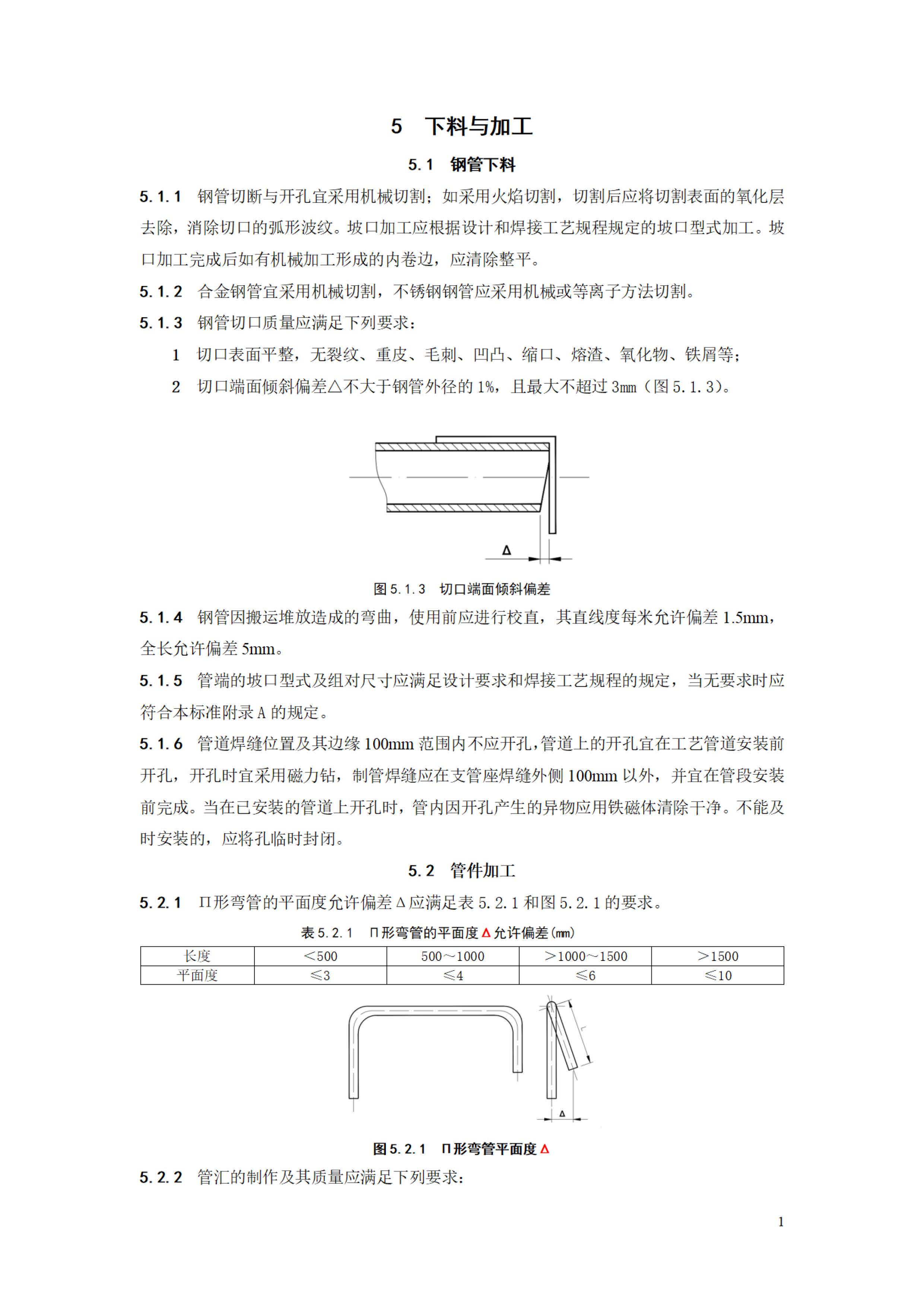 5.3.5~5.3.6此條是根據《工業金屬管道施工及驗收規范》GB 50235有關內容提出。通過標準使用,提出的尺寸偏差是適宜的。