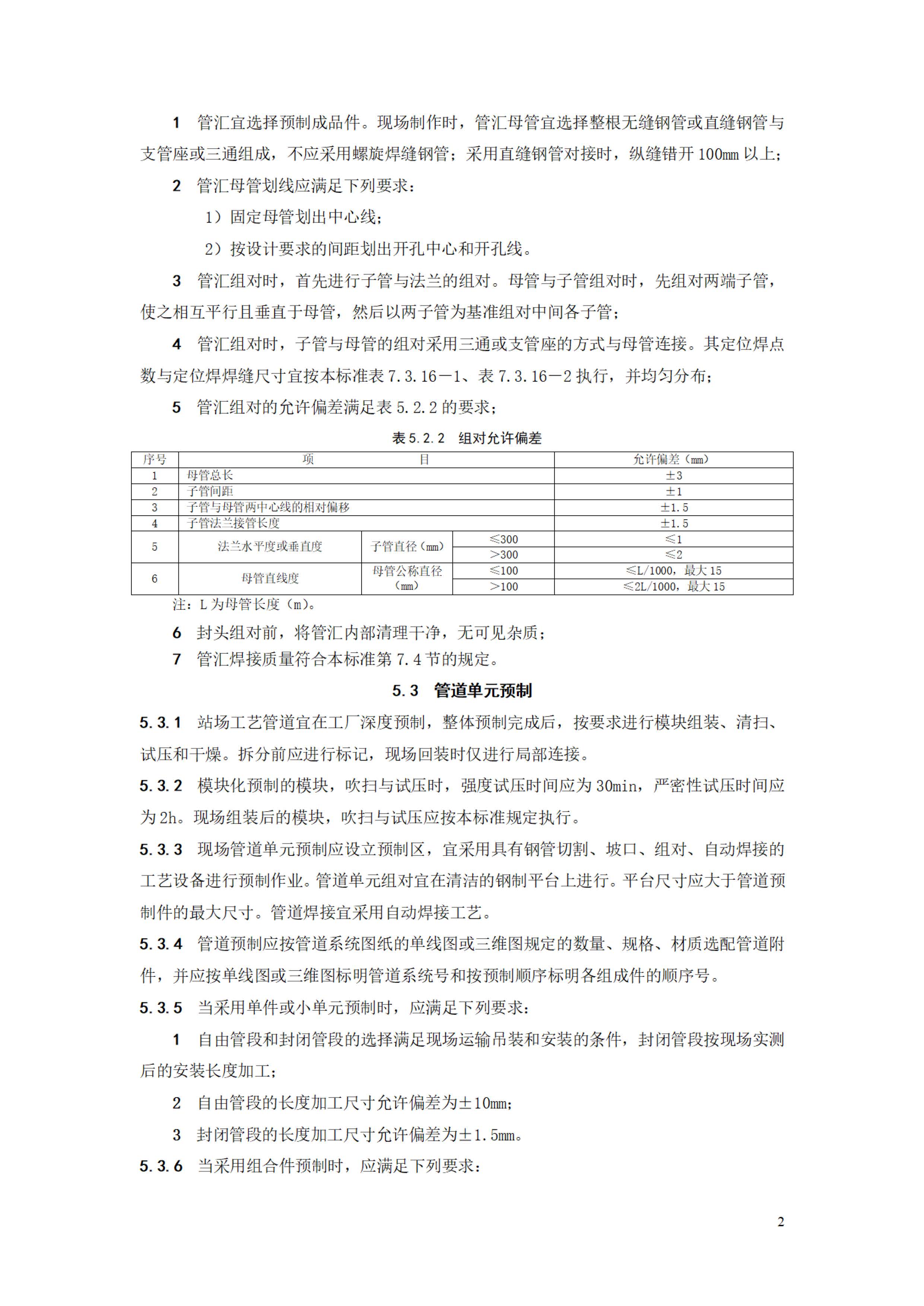 5.3.1提出本條目的是為保證管道單元預制的質量,目前國內預制化水平較高,已有站場全部在工廠預制組裝完成,現場只進行相應的回裝工藝。