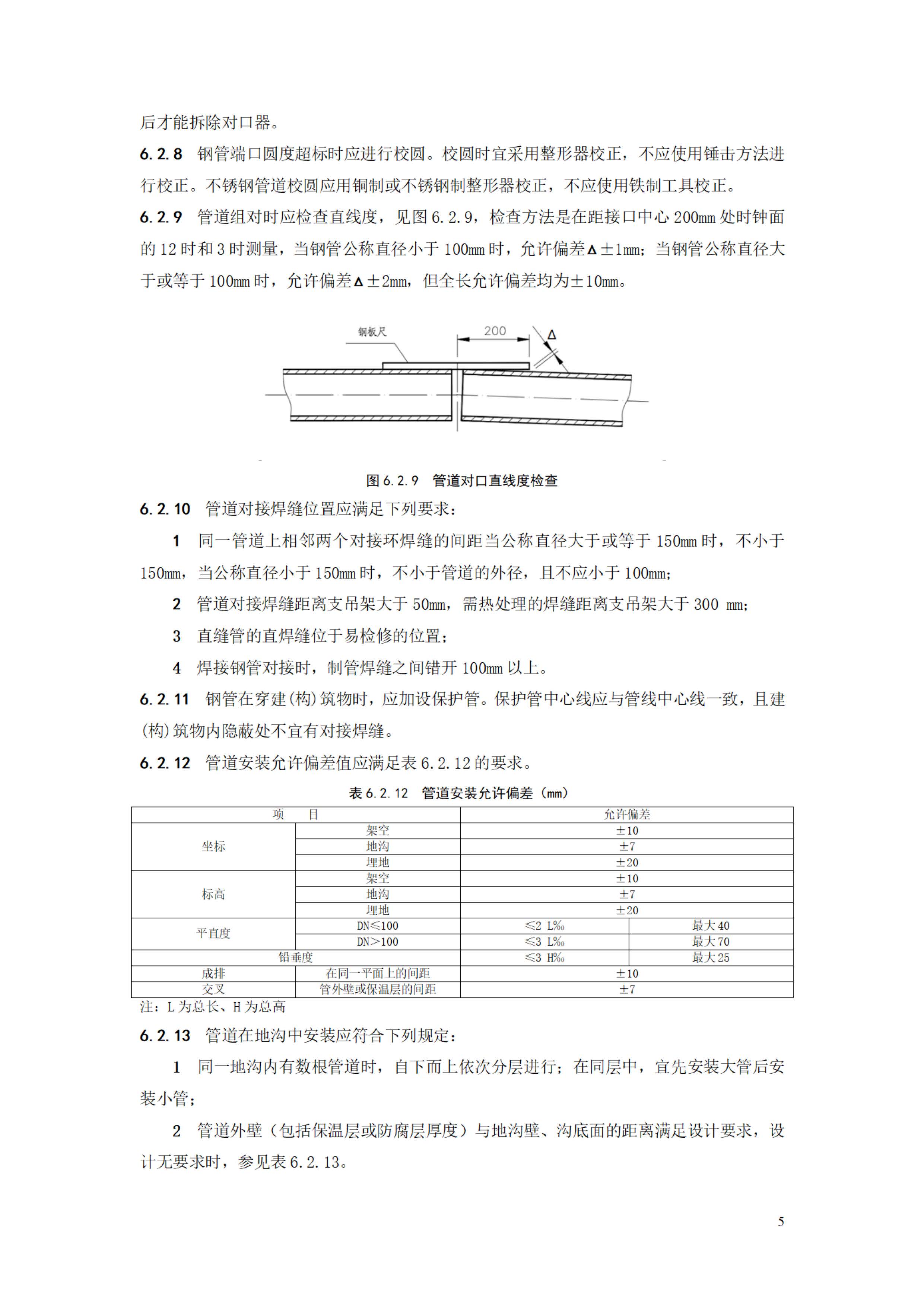6.2.9 本條對管子組對直線度偏差提出要求,來保證管道組對后達到橫平豎直的效果。