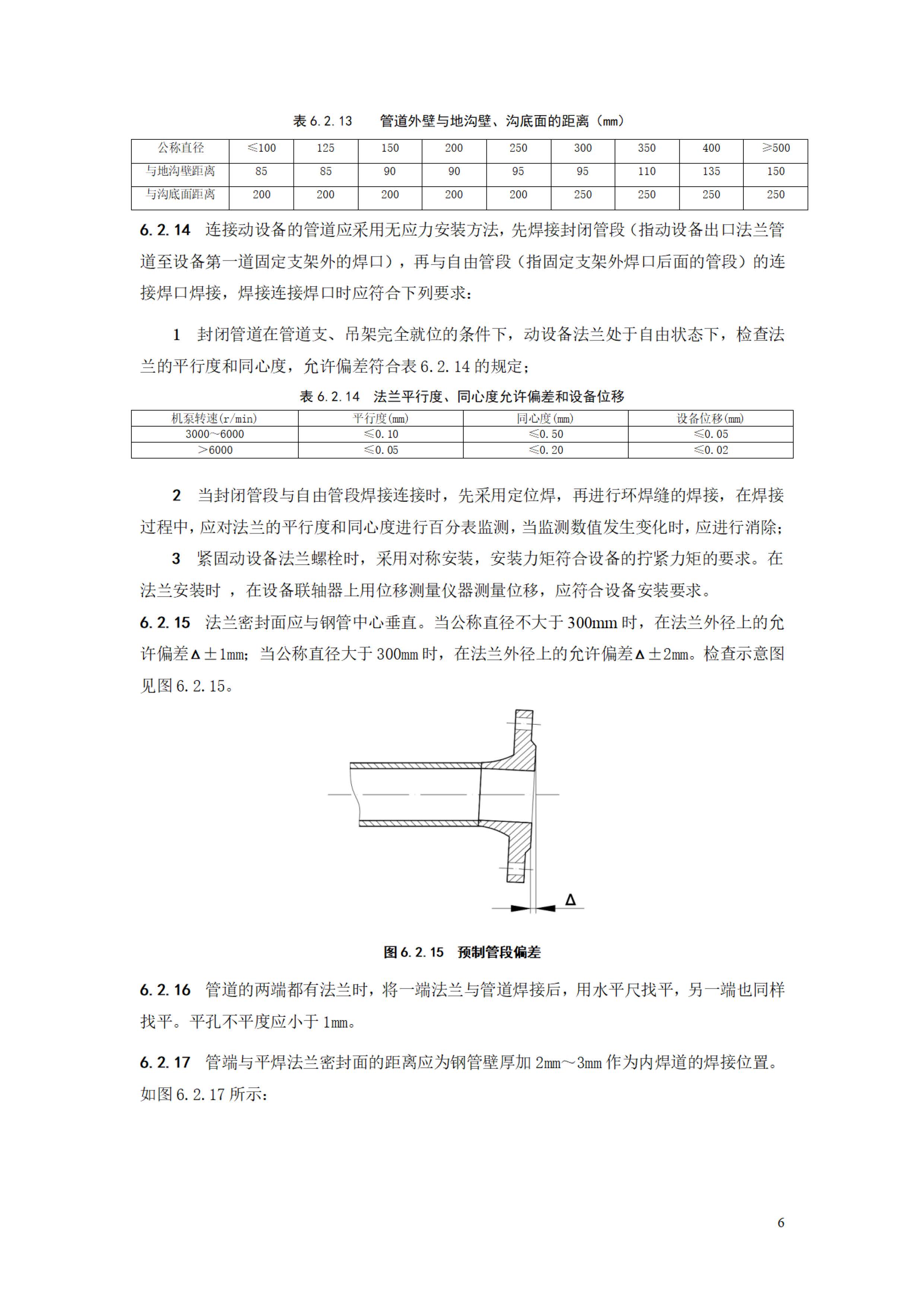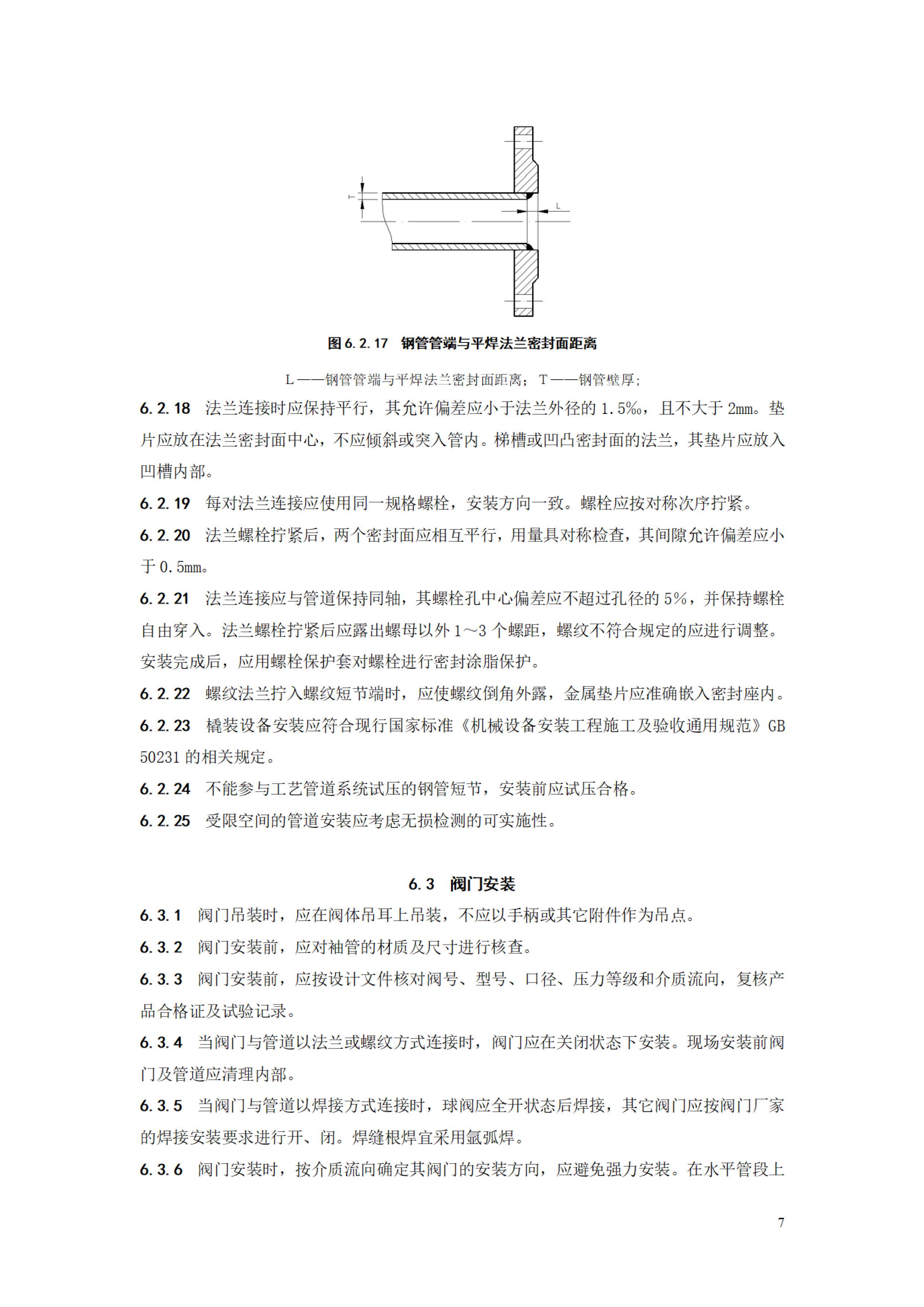 6.2.15防止在螺栓緊固過程中出現附加應力,造成密封不嚴,對法蘭與管道的安裝尺寸提出要求。
