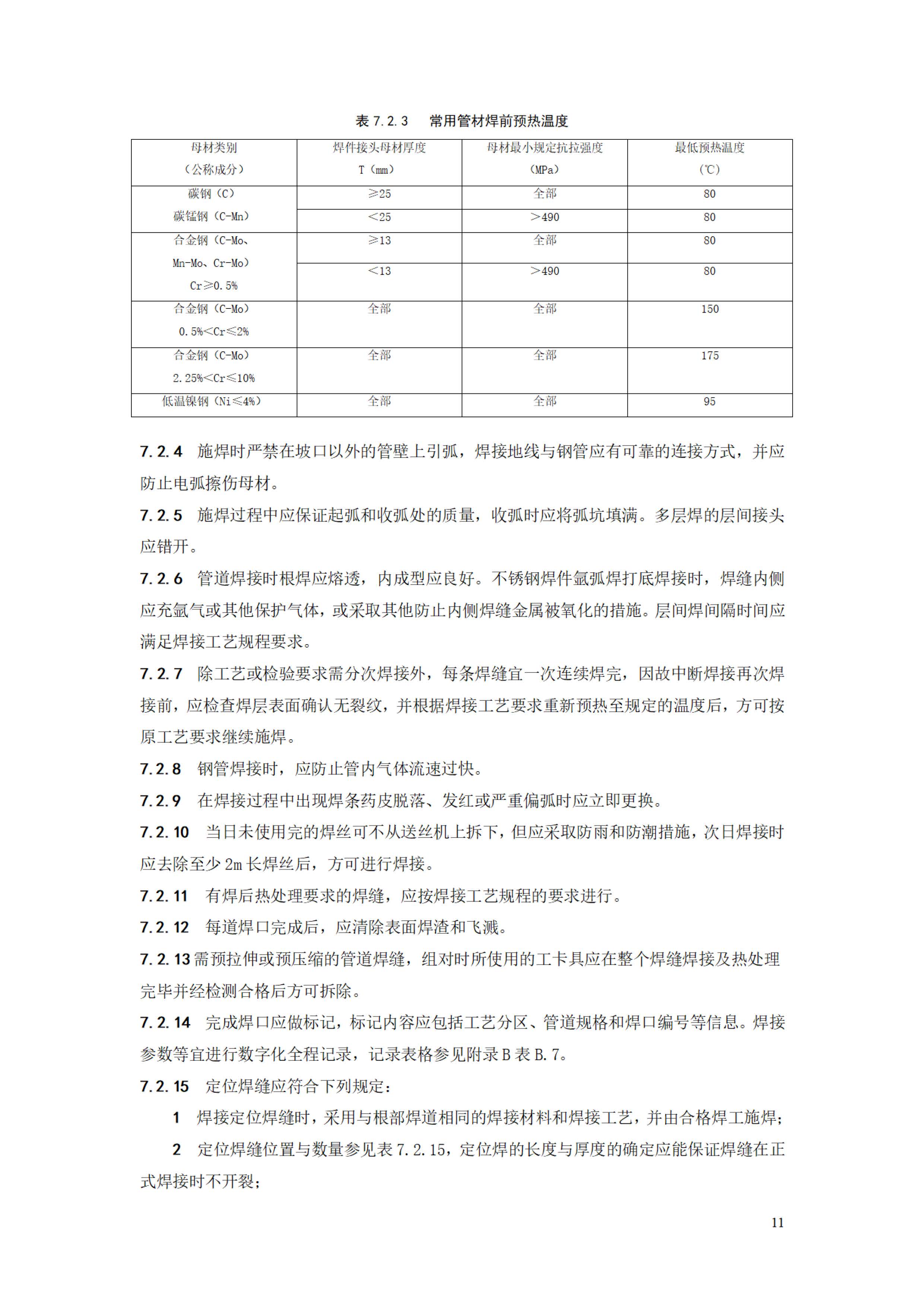 7.2.11 如需要進行焊后熱處理的管材,本條規定應按焊接工藝規程執行。