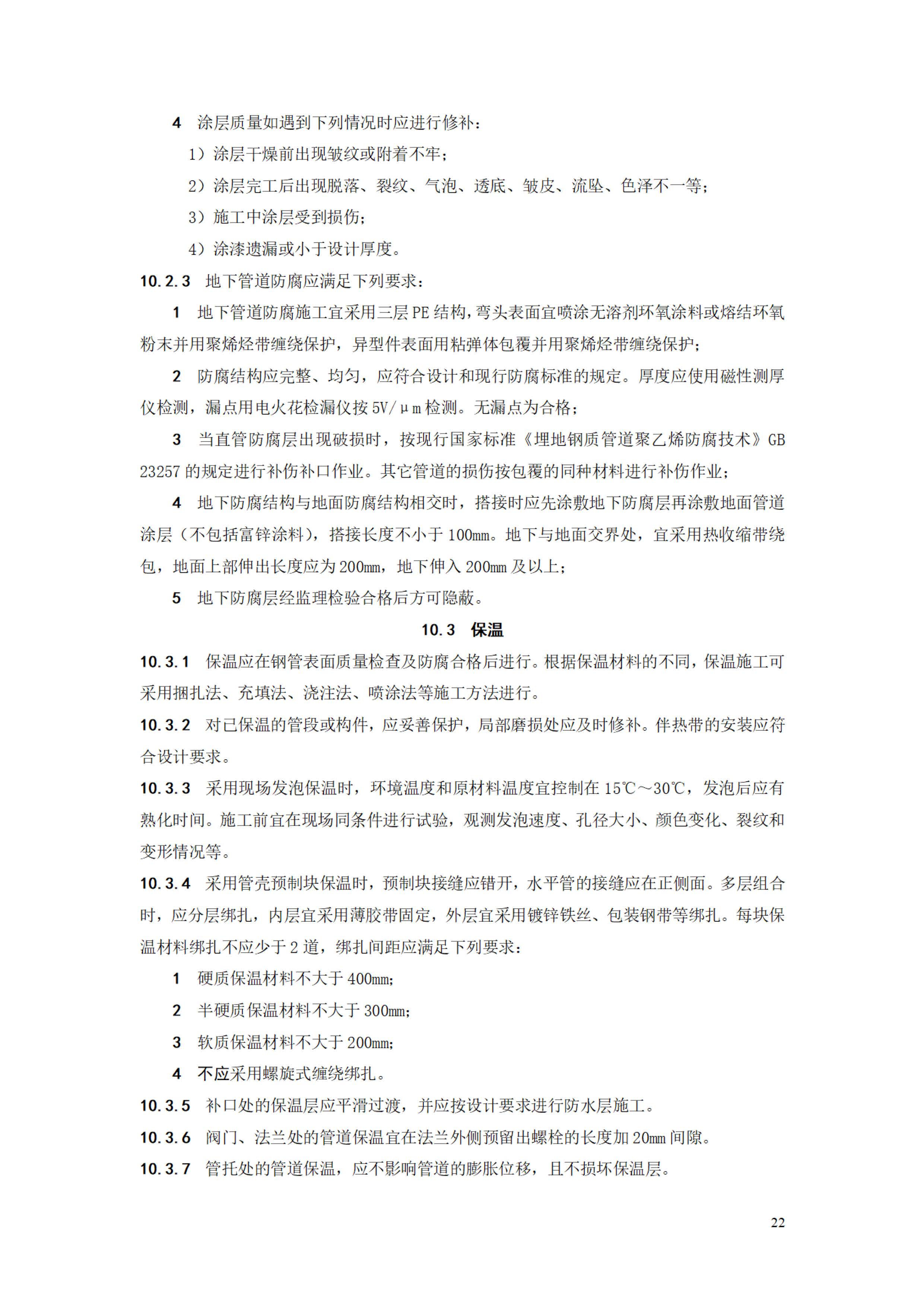 8.3.3 當管溝內管道安裝為多層時,應管道安裝一層后經無損檢測后即時回填并夯實,以利于下層管道安裝。管道試壓可統一進行,一般狀態下,管道經過無損檢測后,質量有了保障,不會出現強度及嚴密性試驗不合格問題。