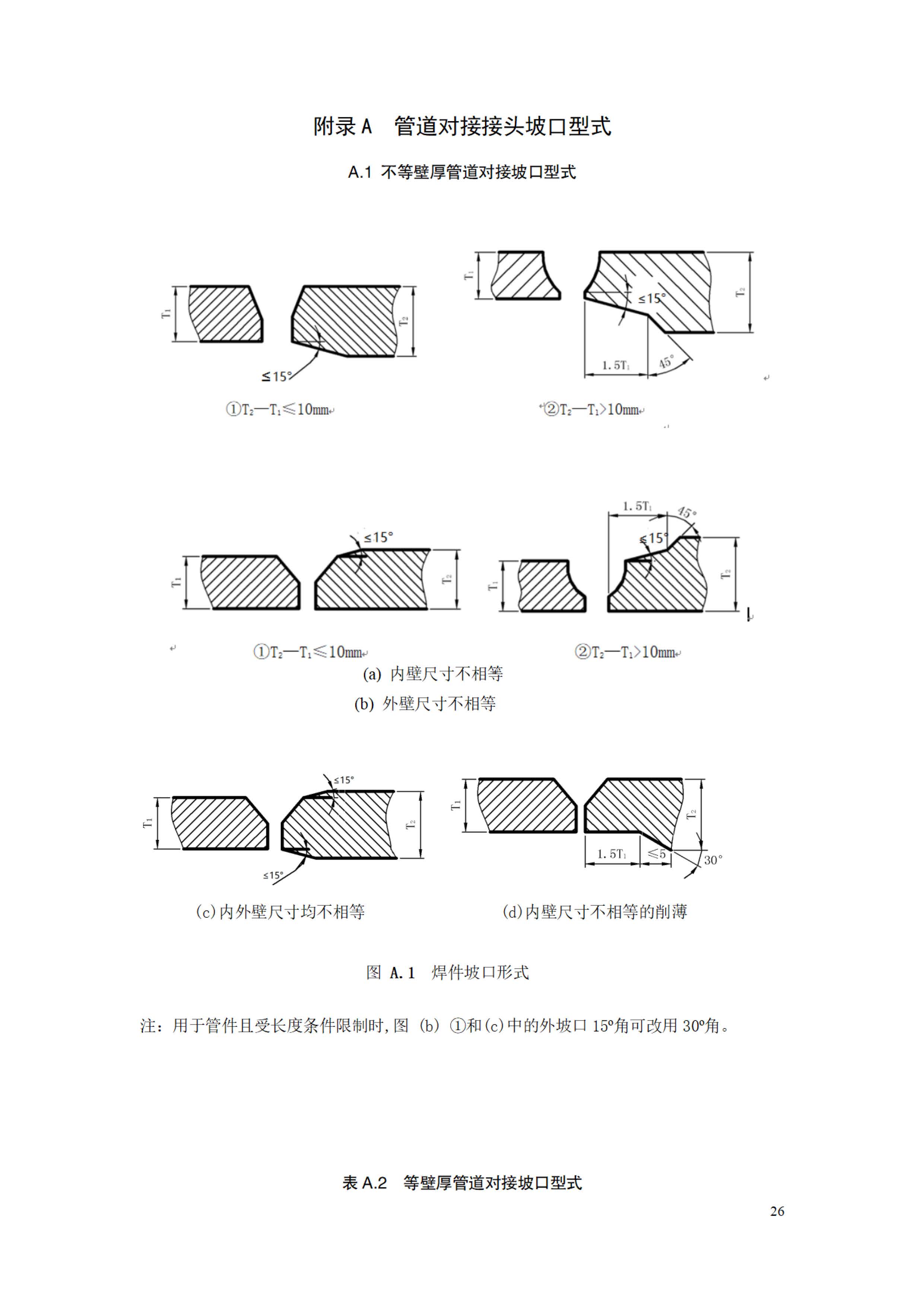 5.1.5不等厚管子、管件組對時,要求內壁齊平。當內徑不同時,按要求進行加工。當外壁錯邊量較大時,應加工成過渡段,以降低焊縫部位的應力集中。