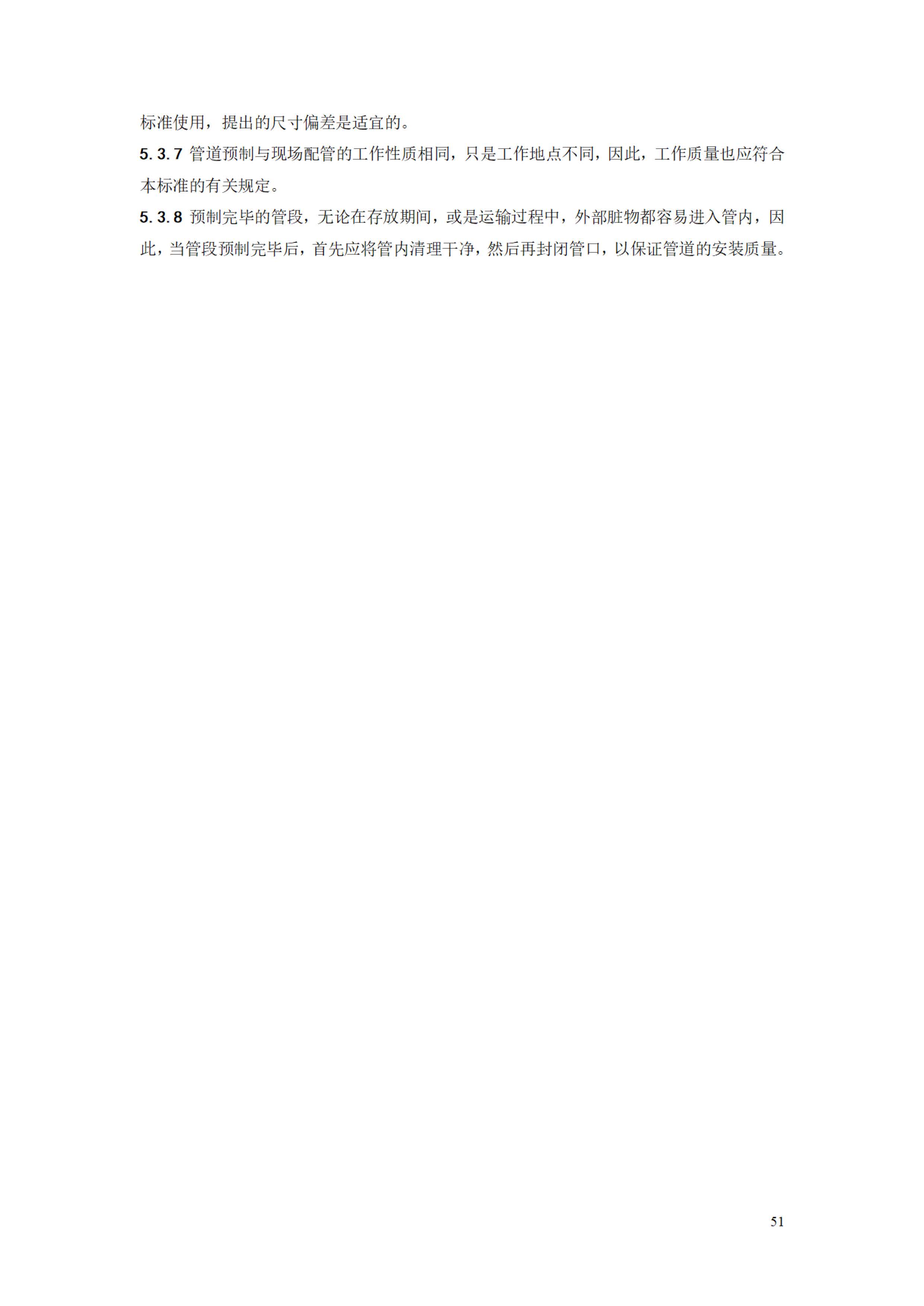 5.3.7管道預制與現場配管的工作性質相同,只是工作地點不同,因此,工作質量也應符合本標準的有關規定。