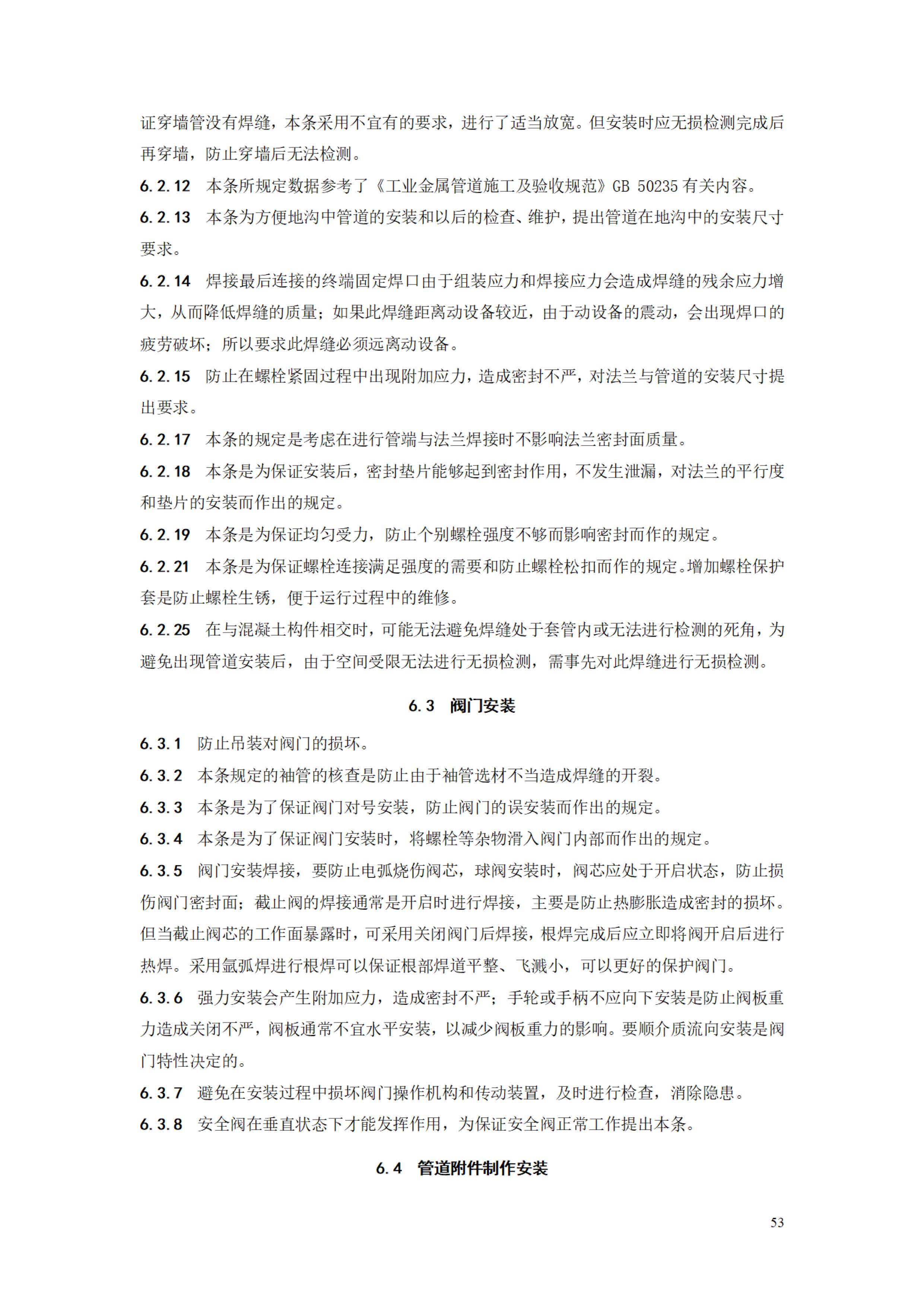6.2.12 本條所規定數據參考了《工業金屬管道施工及驗收規范》GB 50235有關內容。
