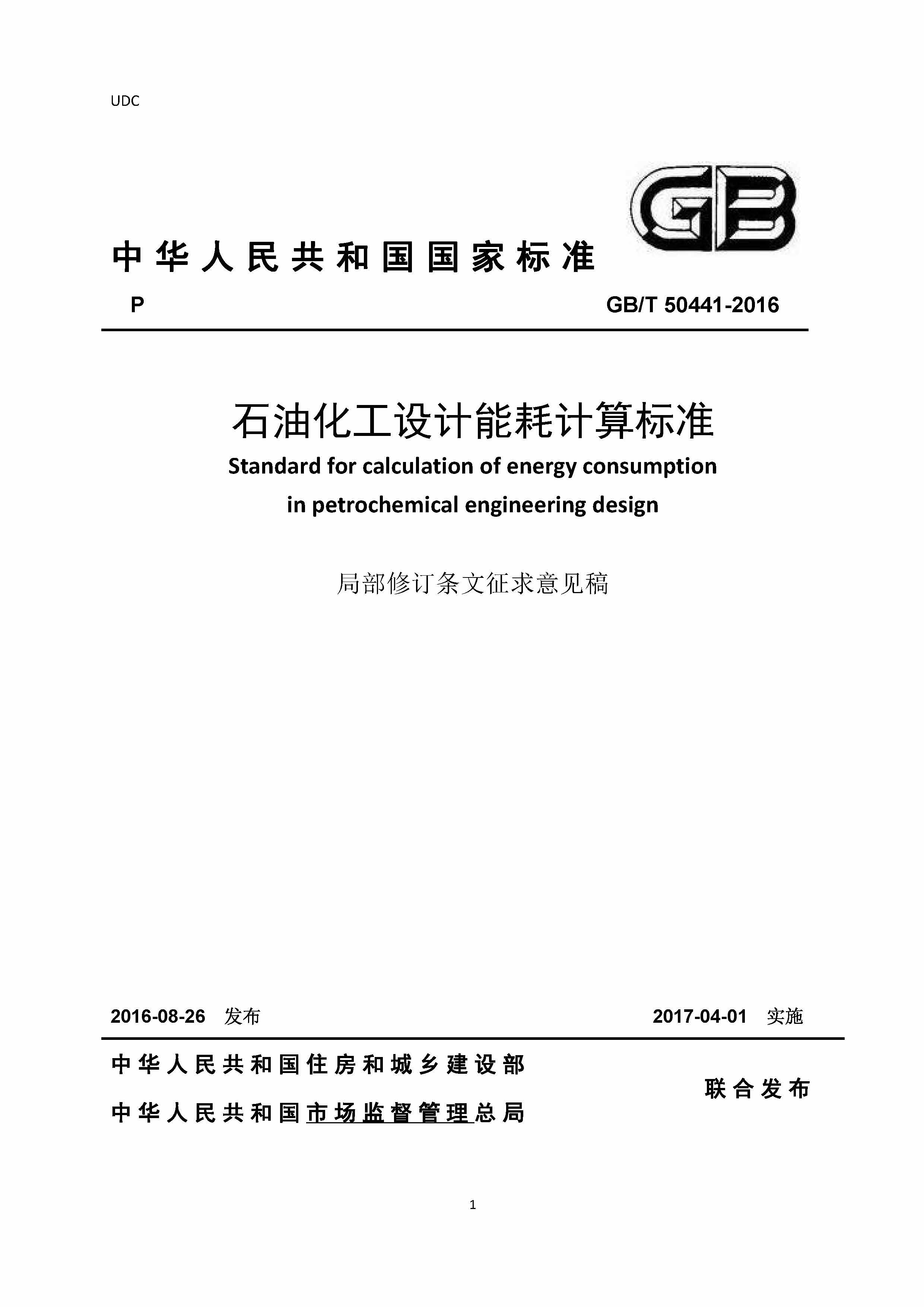 石油化工設計能耗計算標準規范(局部修訂條文征求意見稿)