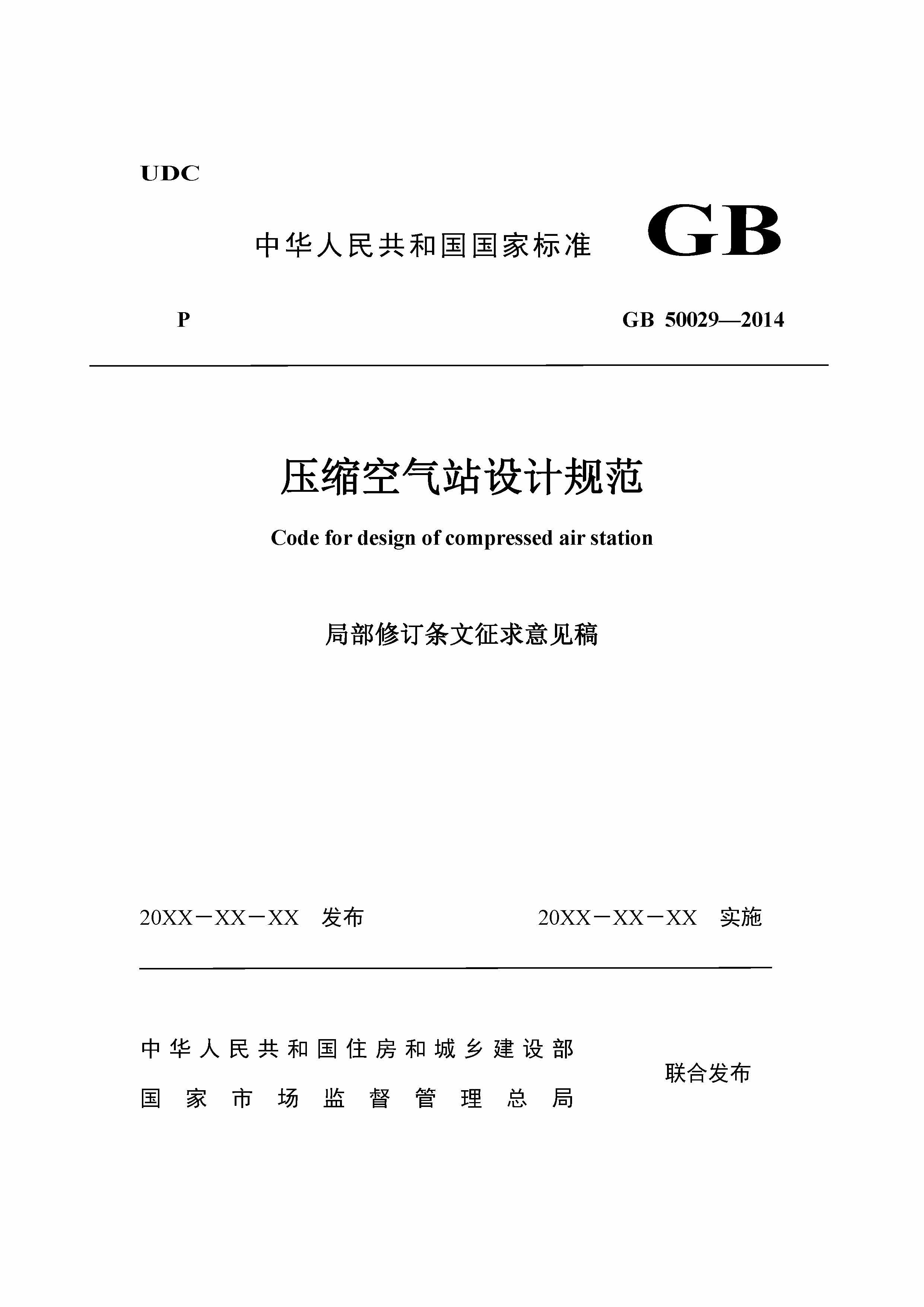 住房和城鄉建設部辦公廳關于國家標準《壓縮空氣站設計規范(局部修訂條文征求意見稿)》公開征求意見的通知