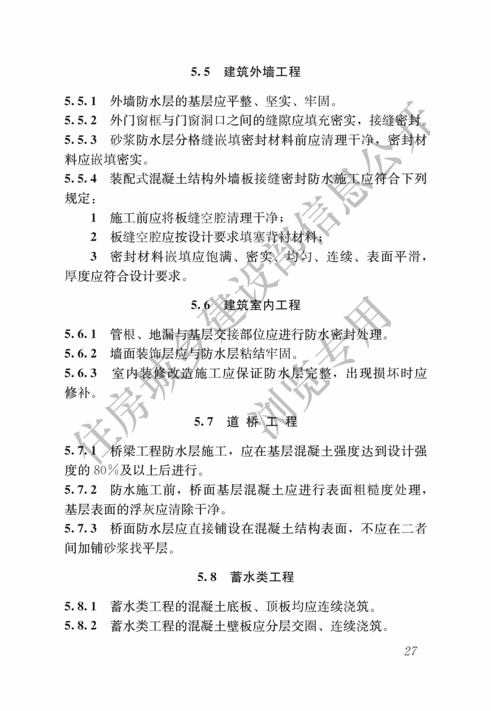 現批準《建筑與市政工程防水通用規范》為國家標準,編號為GB55030-2022,自2023年4月1日起實施。本規范為*性工程建設規范,全部條文必須嚴格執行。現行工程建設標準中有關規定與本規范不一致的,以本規范的規定為準。同時廢止下列工程建設標準相關*性條文: