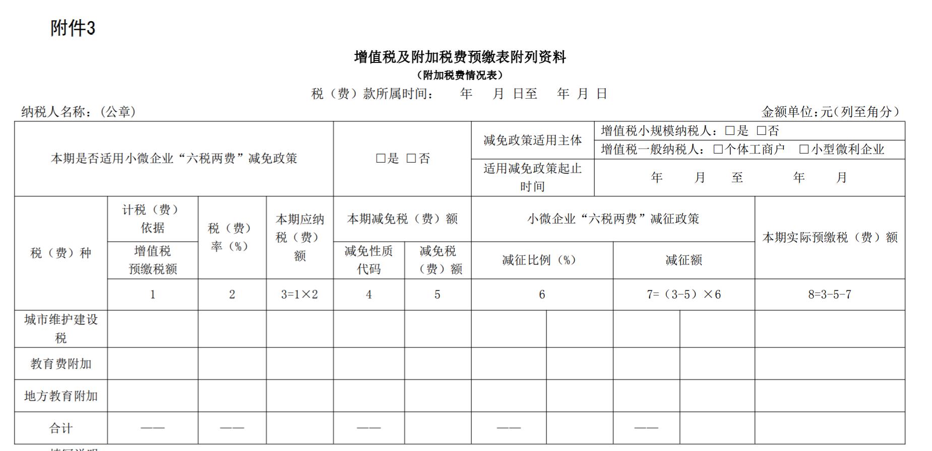 增值稅及附加稅費預繳表附列資料 (附加稅費情況表)