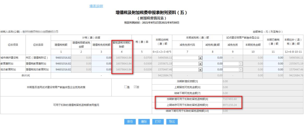 (3)調(diào)整增值稅及附加稅費申報表附列資料(五),第4列“留抵退稅本期扣除額”填寫規(guī)則。