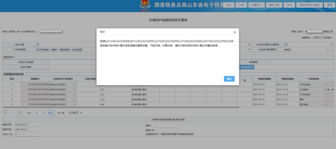 (2)修改“作廢”按鈕提示信息:“稅源xxx已申報或者已在申報計算及減免信息采集表采集,不能作廢。如需作廢,請先作廢申報和申報計算已采集的數(shù)據(jù)。”
