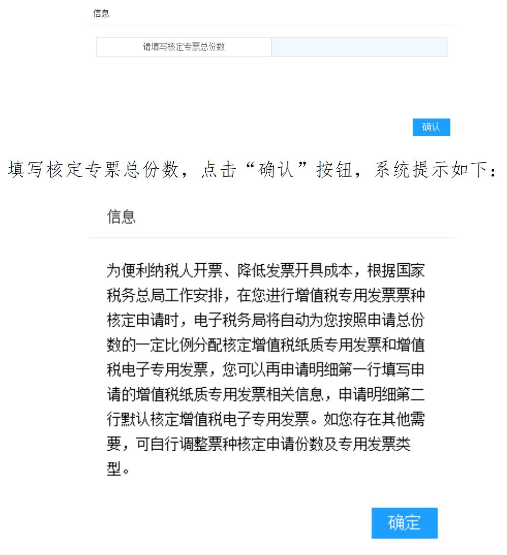 填寫核定專票總份數(shù),點擊“確認”按鈕,系統(tǒng)提示如下:
