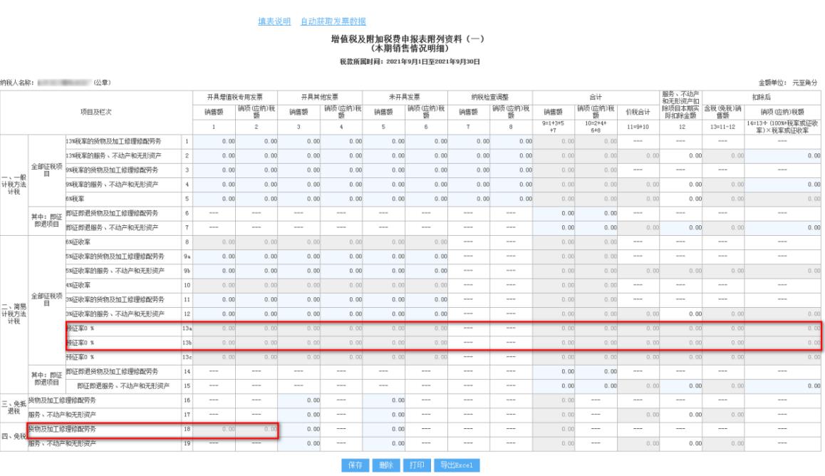 第4列“免稅銷售額對應(yīng)的進項稅額”、第5列“免稅額”調(diào)整為不可填寫。