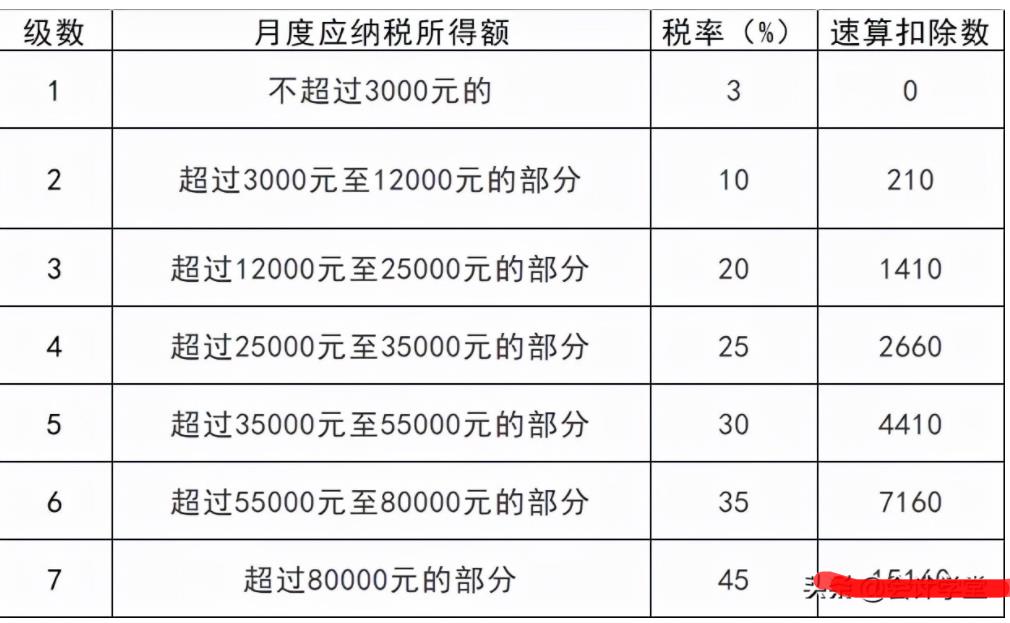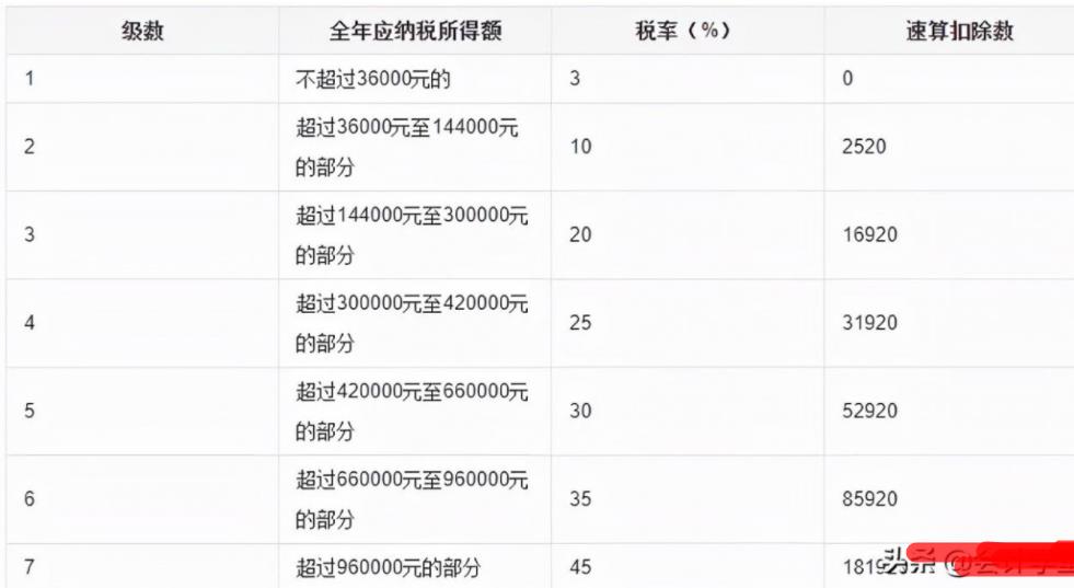 其中適用稅率和速算扣除數:按照綜合所得適用的個人所得稅稅率按月換算