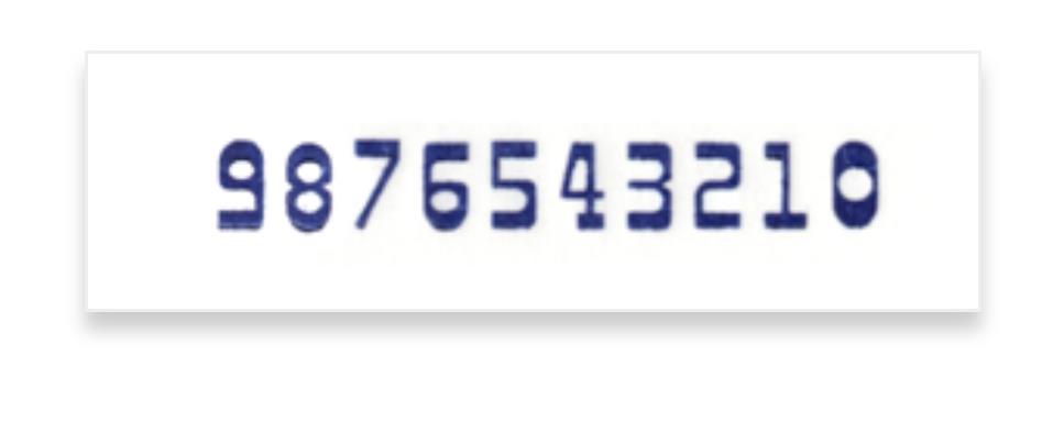 發票各聯次右上方的發票號碼為專用異型號碼,字體為專用異型變化字體(如下圖所示)。