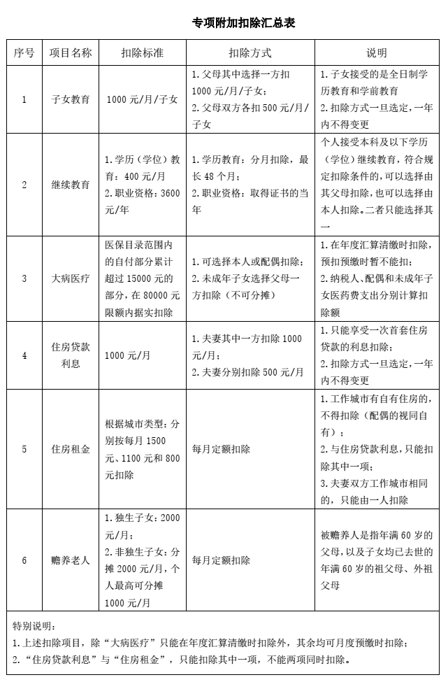 根據《個人所得稅法》的規定,國務院為此專門發布了《國務院關于印發<個人所得稅專項附加扣除暫行辦法>的通知》(國發﹝2018﹞41號,以下簡稱“專項附加扣除辦法”),對個人所得稅法規定的子女教育、繼續教育、大病醫療、住房貸款利息或者住房租金、贍養老人等6項專項附加扣除進行了明確的規定。