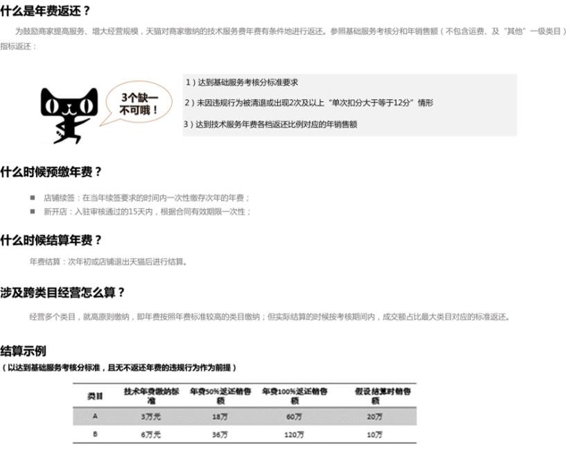 天貓入駐費用標準: