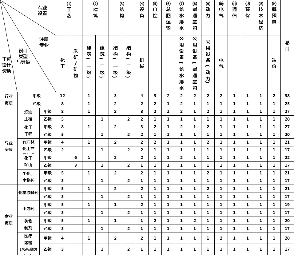 化工石化醫(yī)藥行業(yè)工程設(shè)計(jì)主要專業(yè)技術(shù)人員配備表