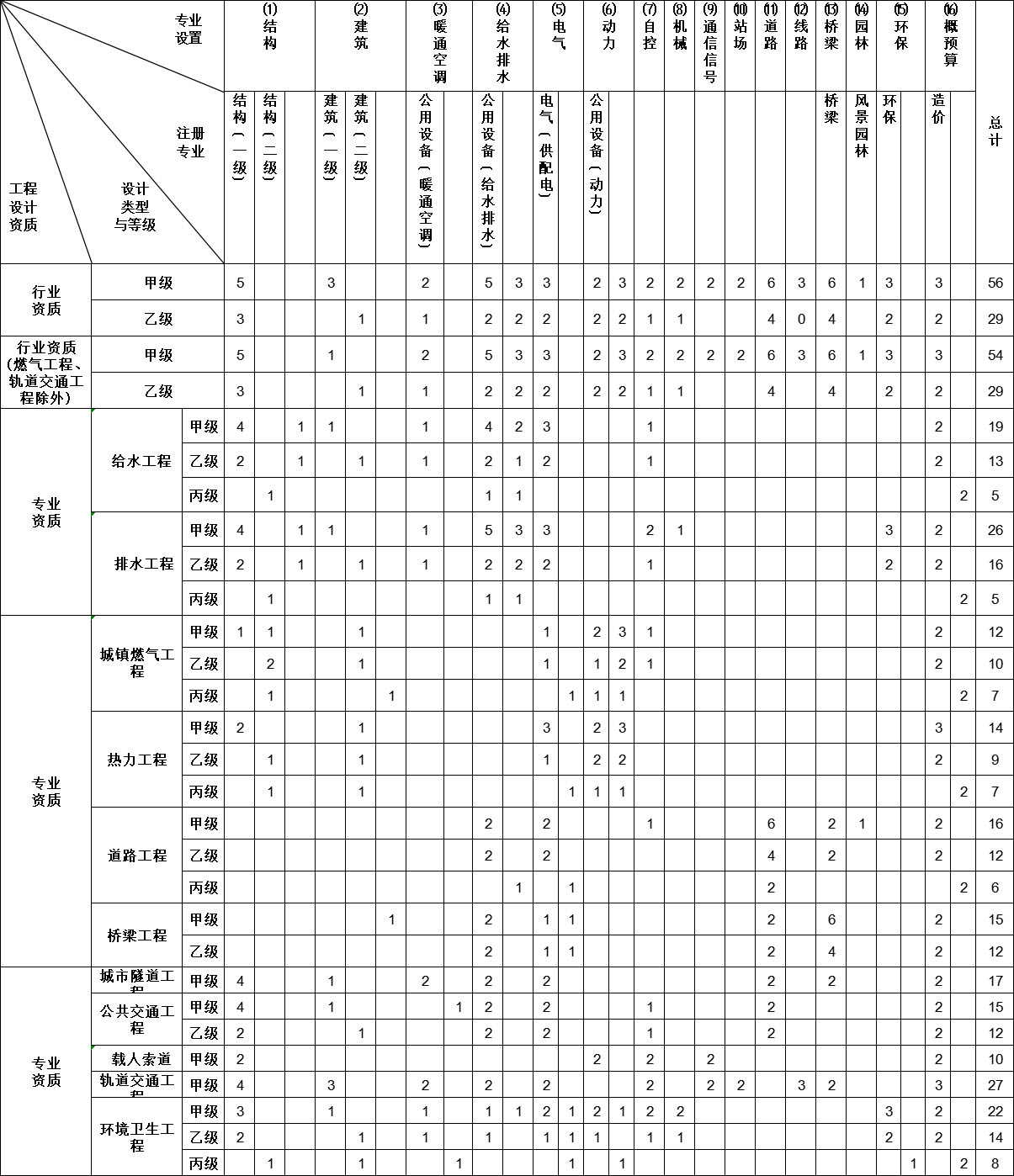 “工程設計綜合資質不分等級;工程設計行業資質、工程設計專業資質設甲級、乙級;工程設計事務所資質不分等級。
